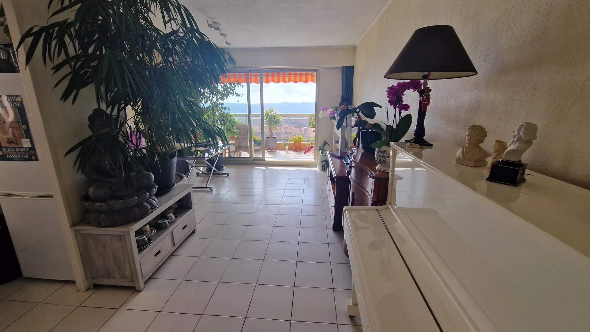 Dans jolie petite résidence de standing avec parc, proche des commodités au calme, beau 2 pièces climatisé avec terrasse et vue panoramique jusqu'à la mer. Cave. Parking municipal à proximité. Copropriété de 86 lots , charges annuelles : 1000 €-