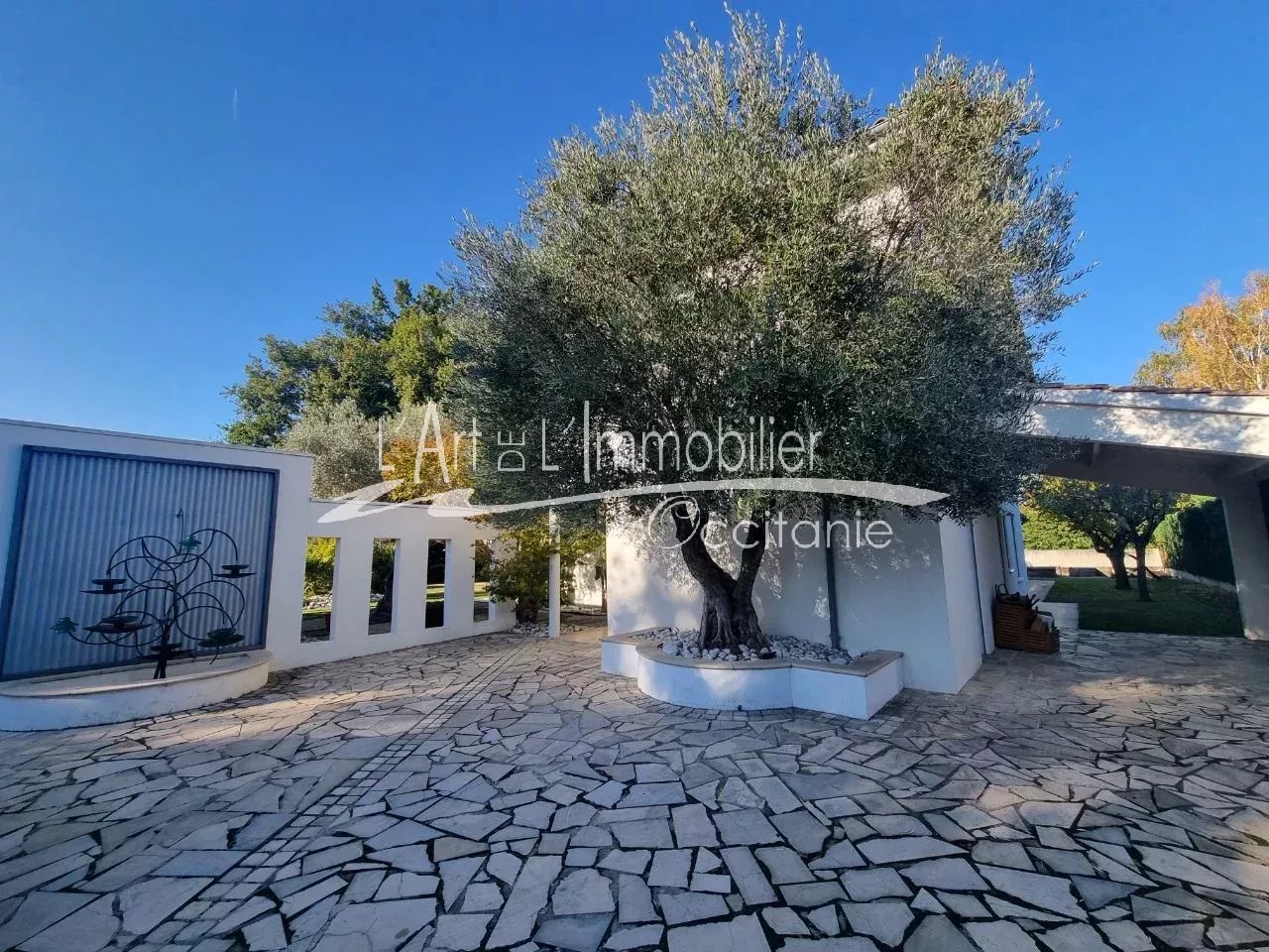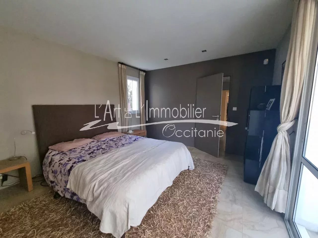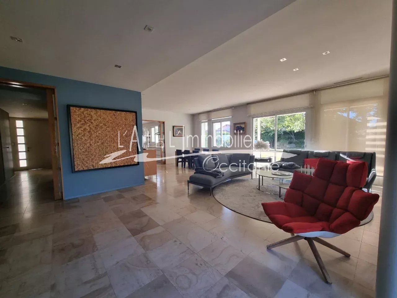 Très belle maison contemporaine développant 250 m² environ de superficie habitable. Prestations haut de gamme. Son entrée, dégagement, placards, cuisine équipée haut de gamme, ouverte sur séjour, avec possibilité de fermer avec de belles portes à galandage. Beau séjour lumineux, réhaussé de sa cheminée à foyer ouvert. L'ensemble des pièces de vie est ouvert sur sa belle terrasse de 50 m² environ, pergola climatique, avec vue sur le parc et sa piscine 11/5.20. Sa partie nuit du rez-de-chaussée se compose de sa belle chambre, sa salle de bains, toilettes/sas, bureau, salle de sport, nombreux rangements. A l'étage, son espace nuit vous propose 3 chambres, bureau, toilettes, salle de bains, salle d'eau, une pièce jardin d'hiver ouverte sur une terrasse sur le toit, vue sur le parc et piscine. Un grand garage de 69 m² env., cellier/salle d'eau. Puits. Arrosage intégré. L'ensemble édifié sur un beau terrain boisé, paysager de 2000 m² env.