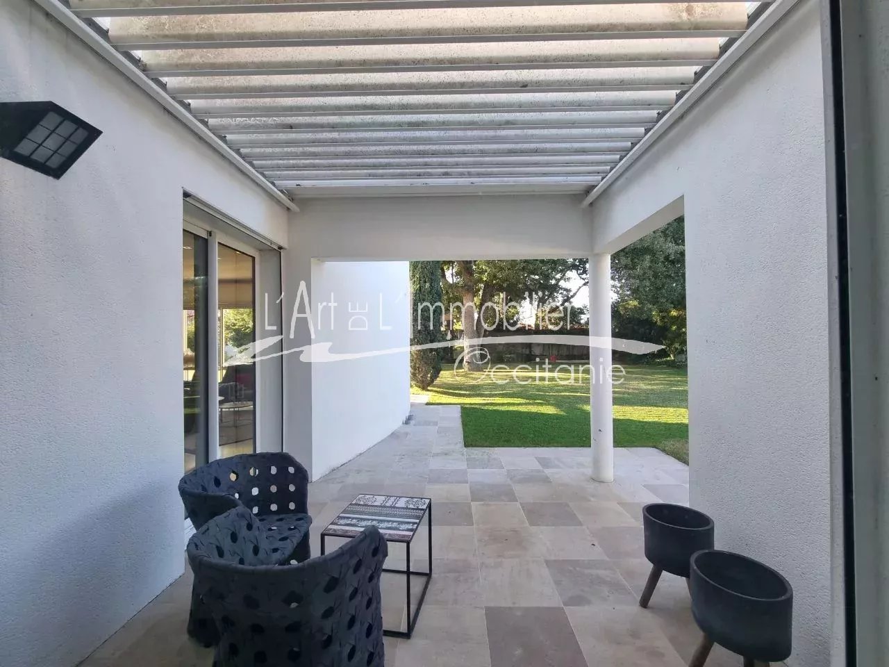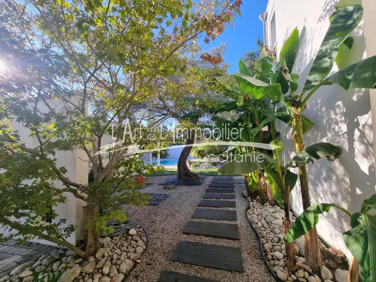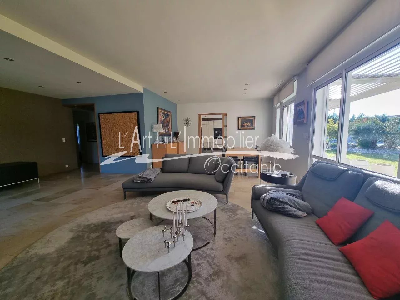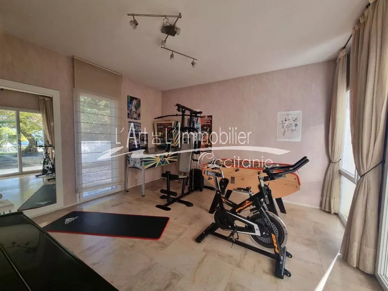 Très belle maison contemporaine développant 250 m² environ de superficie habitable. Prestations haut de gamme. Son entrée, dégagement, placards, cuisine équipée haut de gamme, ouverte sur séjour, avec possibilité de fermer avec de belles portes à galandage. Beau séjour lumineux, réhaussé de sa cheminée à foyer ouvert. L'ensemble des pièces de vie est ouvert sur sa belle terrasse de 50 m² environ, pergola climatique, avec vue sur le parc et sa piscine 11/5.20. Sa partie nuit du rez-de-chaussée se compose de sa belle chambre, sa salle de bains, toilettes/sas, bureau, salle de sport, nombreux rangements. A l'étage, son espace nuit vous propose 3 chambres, bureau, toilettes, salle de bains, salle d'eau, une pièce jardin d'hiver ouverte sur une terrasse sur le toit, vue sur le parc et piscine. Un grand garage de 69 m² env., cellier/salle d'eau. Puits. Arrosage intégré. L'ensemble édifié sur un beau terrain boisé, paysager de 2000 m² env.