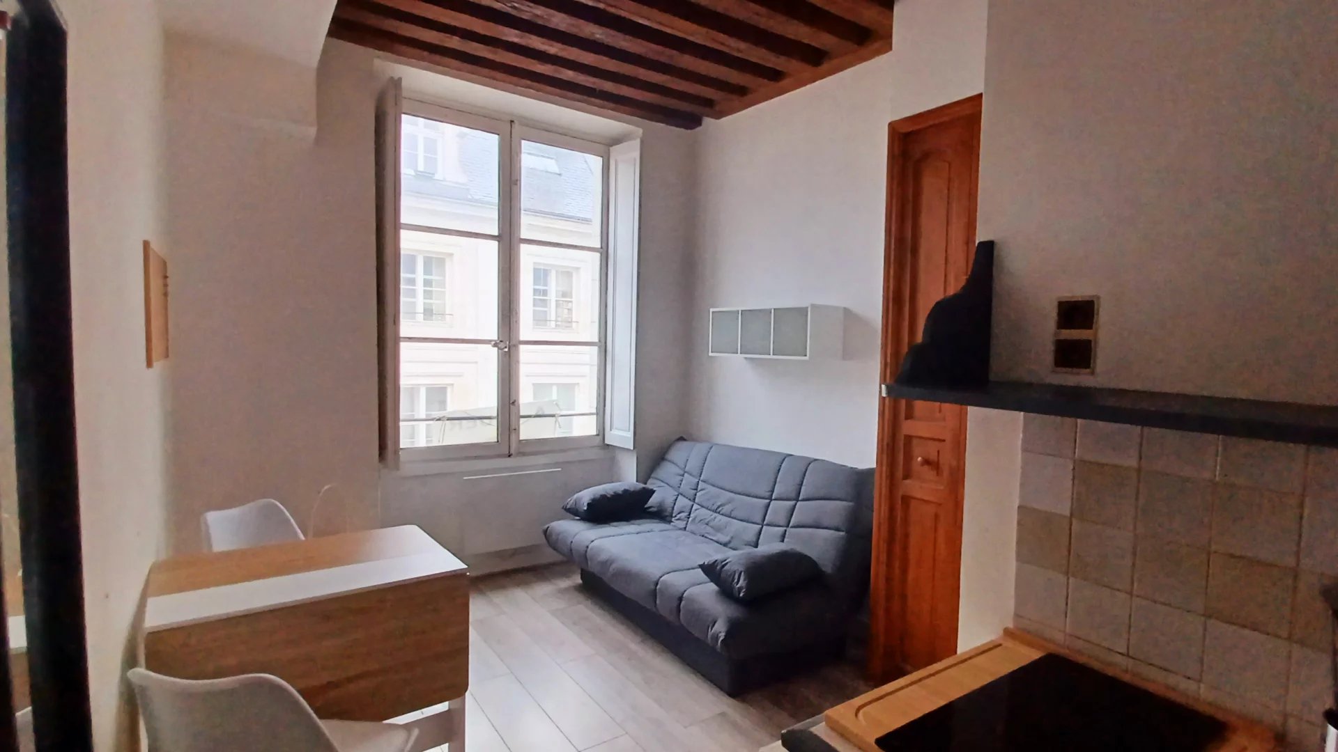Hyper centre, rue Royale, au pied du tram - Studio meublé et équipé comprenant une pièce de vie avec kitchenette équipée (plaque vitro, réfrigérateur, micro-onde) et placard penderie, salle de bains avec wc. Volet intérieur et radiateur à inertie nouvelle génération. Les informations sur les risques auxquels ce bien est exposé sont disponibles sur le site Géorisques : www.georisques.gouv.fr