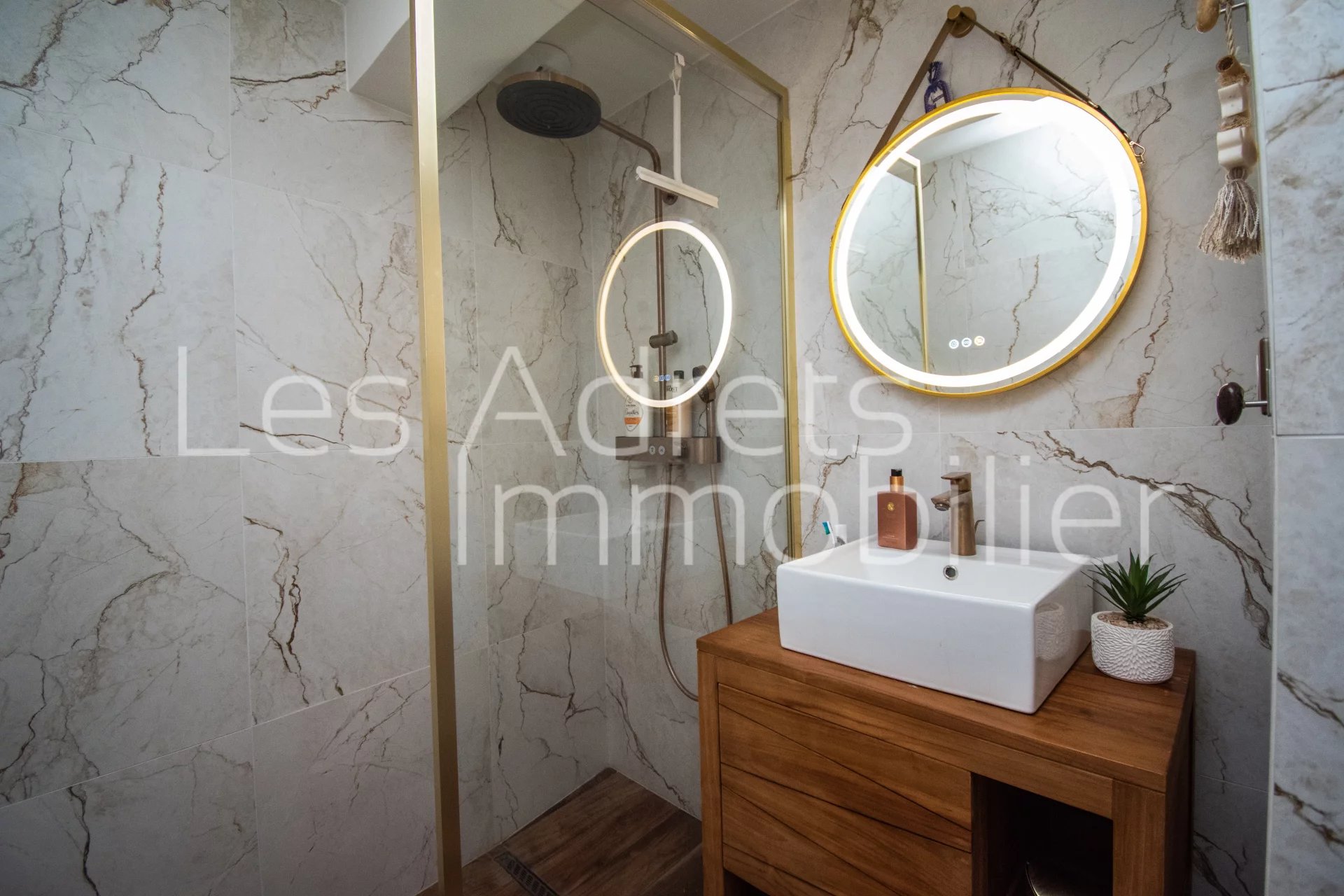À l’étage, l’espace nuit se compose de trois chambres, dont deux en suite avec leur propre salle d’eau. Deux d’entre elles disposent d’un accès à un balcon offrant une vue imprenable sur l’Estérel. Une salle d’eau indépendante et un WC séparé viennent parfaire l’étage.