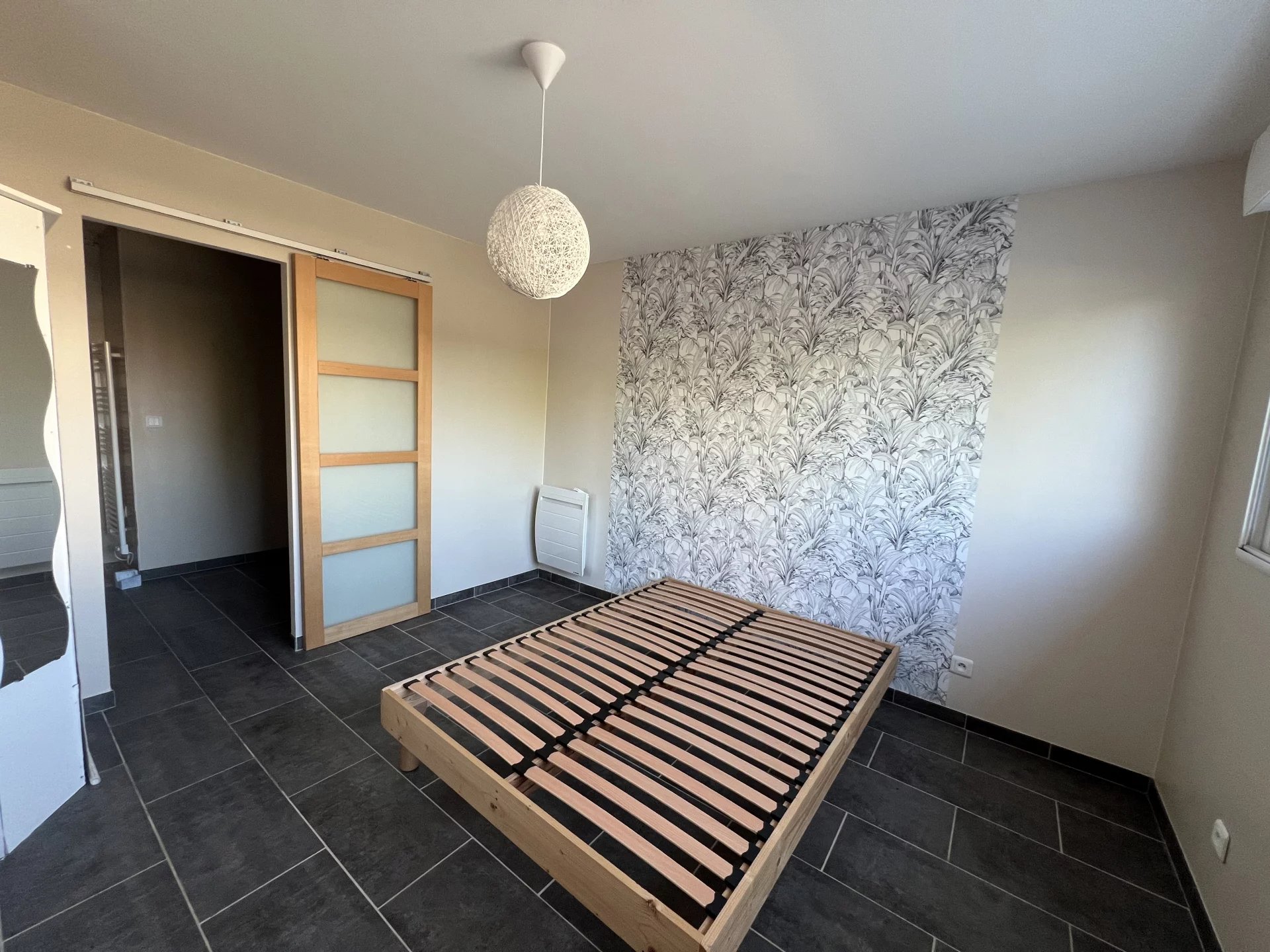 - 1 garage entièrement isolé, carrelé + espace de stationnement extérieur.