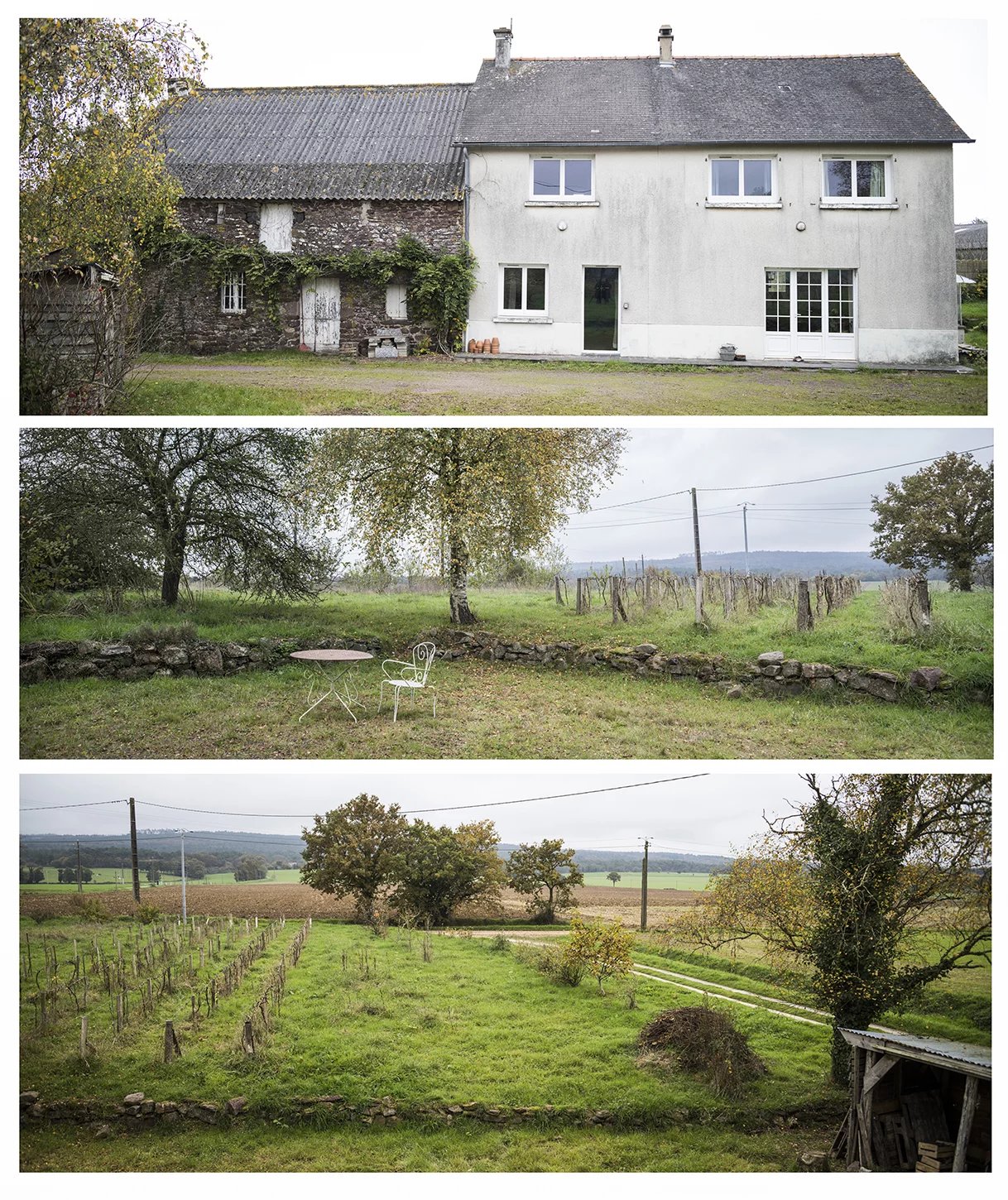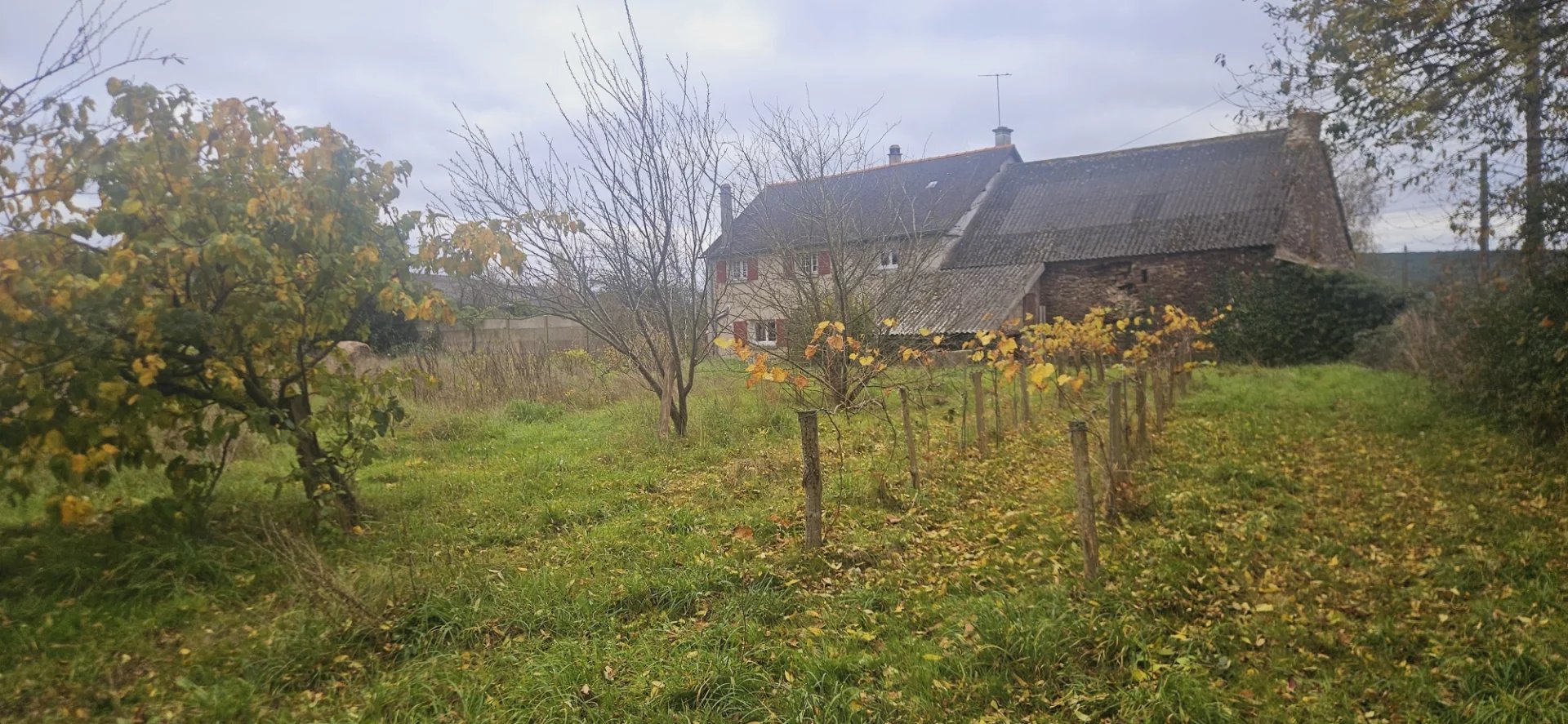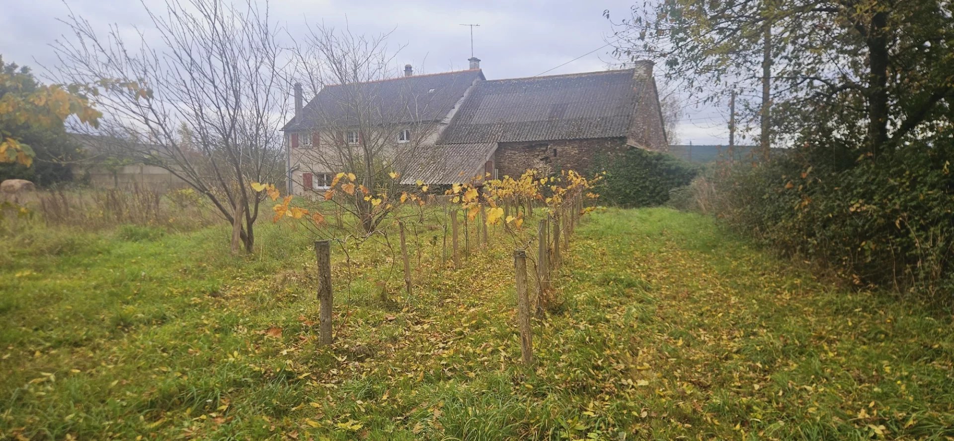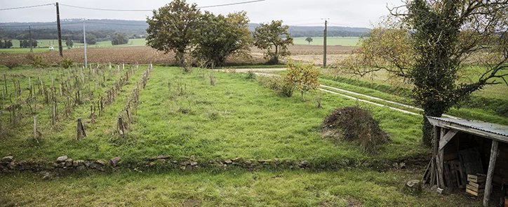 "Le terrain est entièrement certifié en conversion bio depuis 2 ans. Il possède plusieurs rangs de vignes en production, de cépage différents (baco, chenin, etc.) ; un jeune verger de pommiers dont 2 variétés de pommes à cidre, également en production ; un jeune verger de fruitiers à l'arrière de la maison dont des pruniers, des pêchers, des mirabelles... et également des petits fruits tels que cassis et groseilliers.
