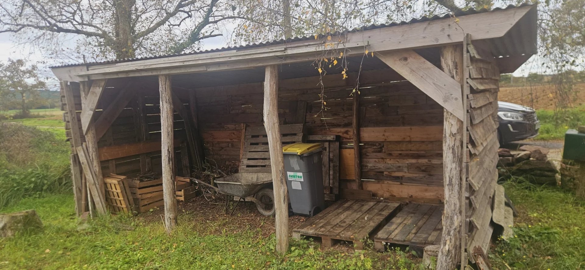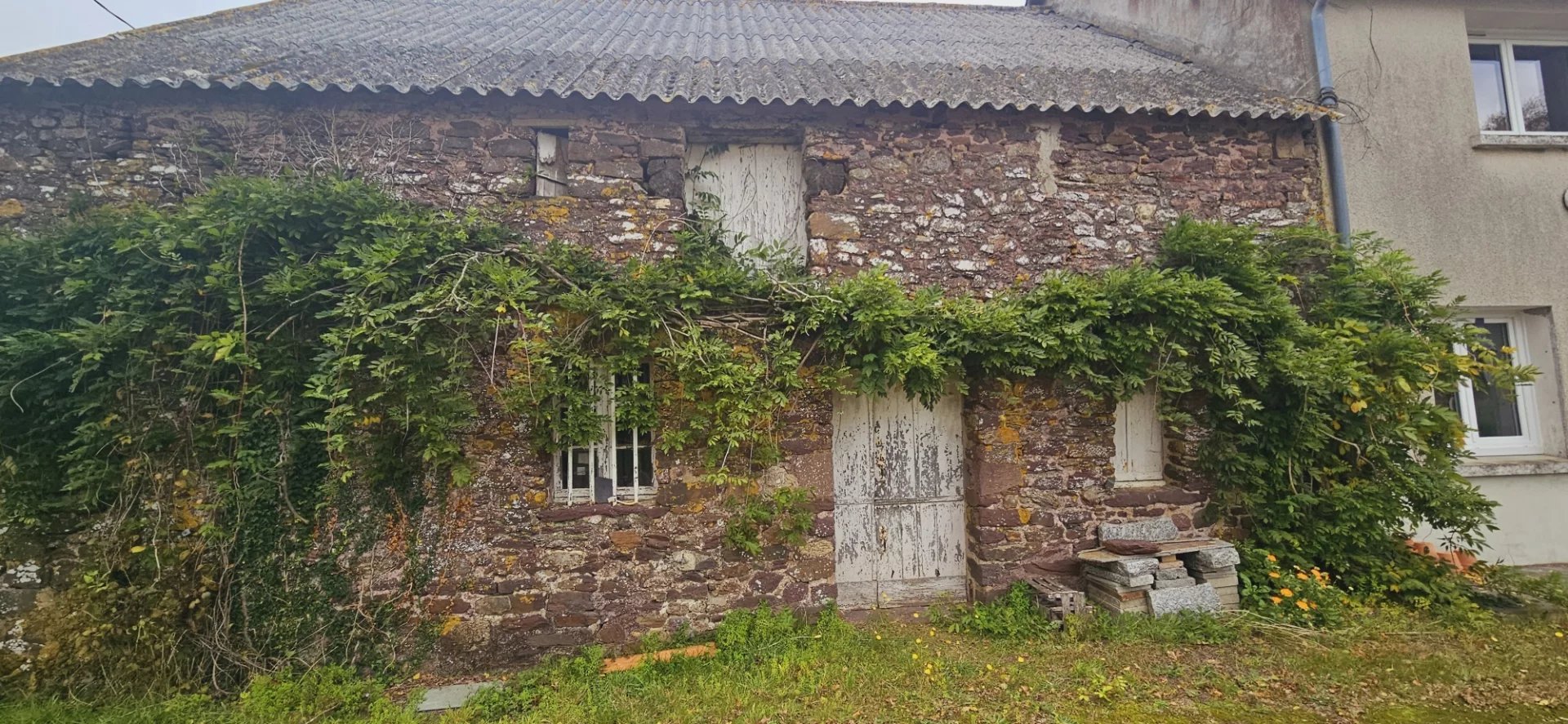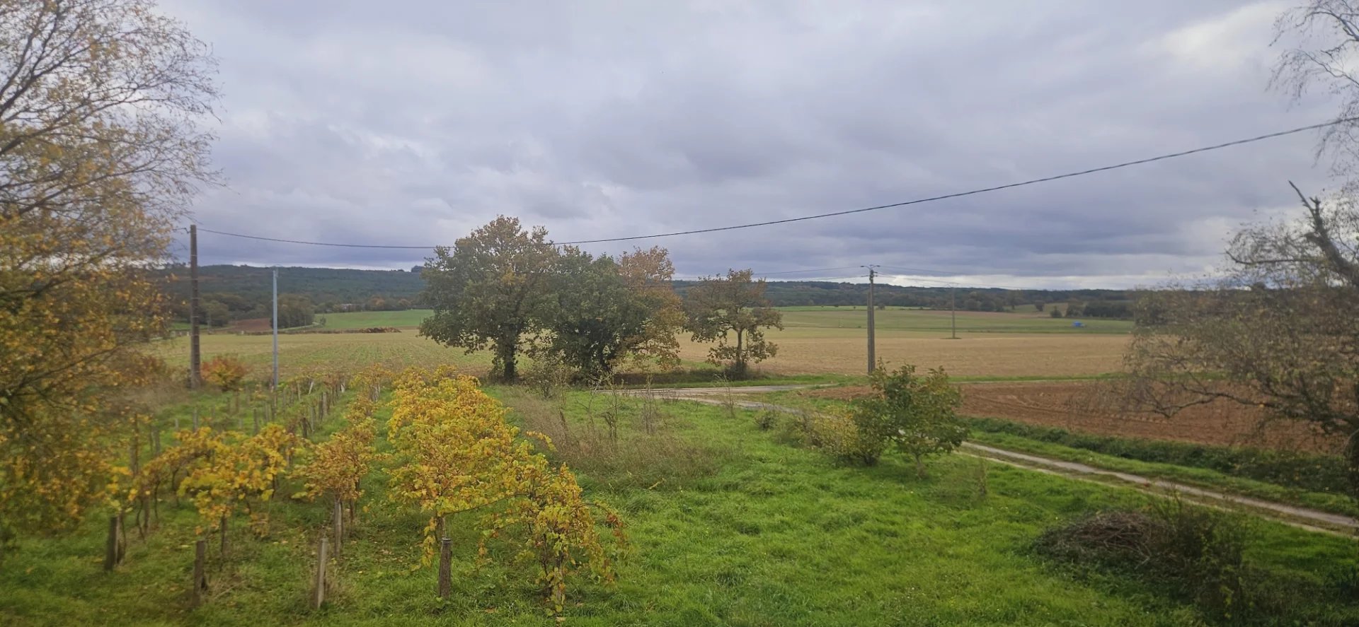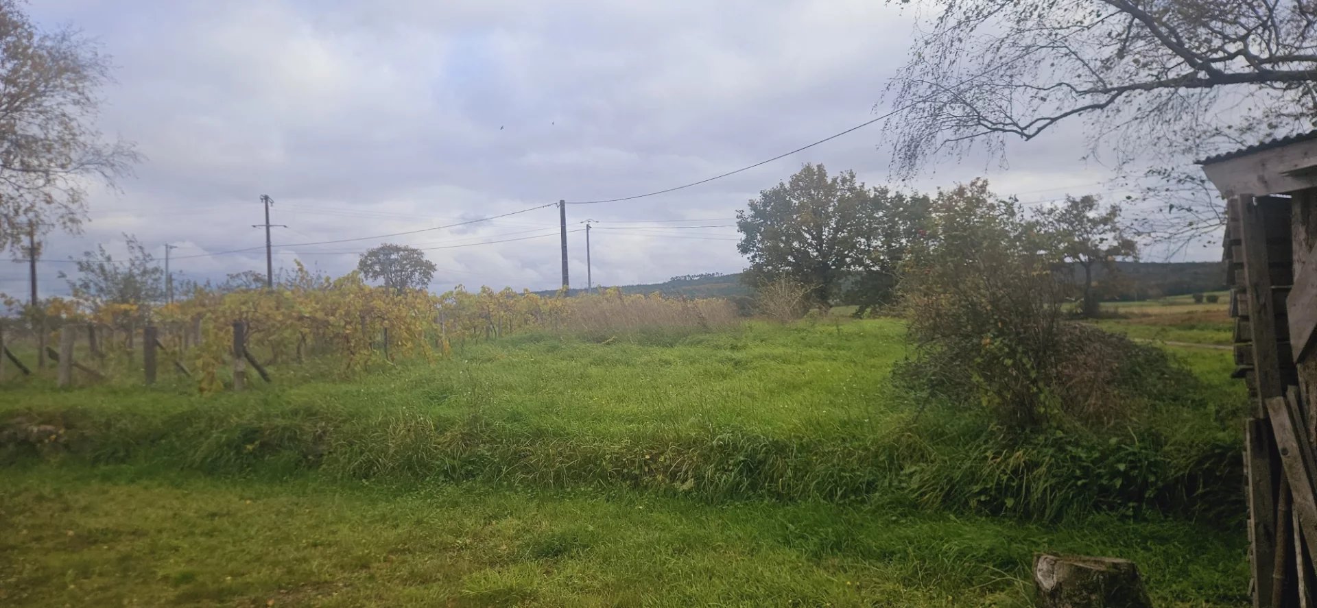 "Le terrain est entièrement certifié en conversion bio depuis 2 ans. Il possède plusieurs rangs de vignes en production, de cépage différents (baco, chenin, etc.) ; un jeune verger de pommiers dont 2 variétés de pommes à cidre, également en production ; un jeune verger de fruitiers à l'arrière de la maison dont des pruniers, des pêchers, des mirabelles... et également des petits fruits tels que cassis et groseilliers.