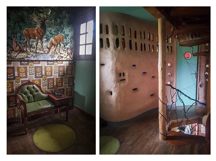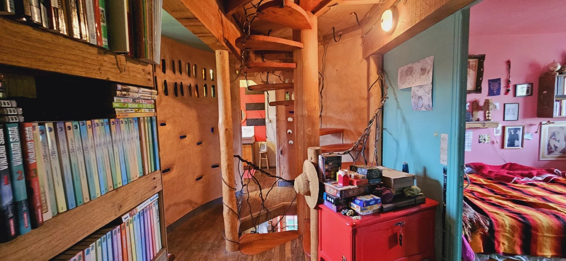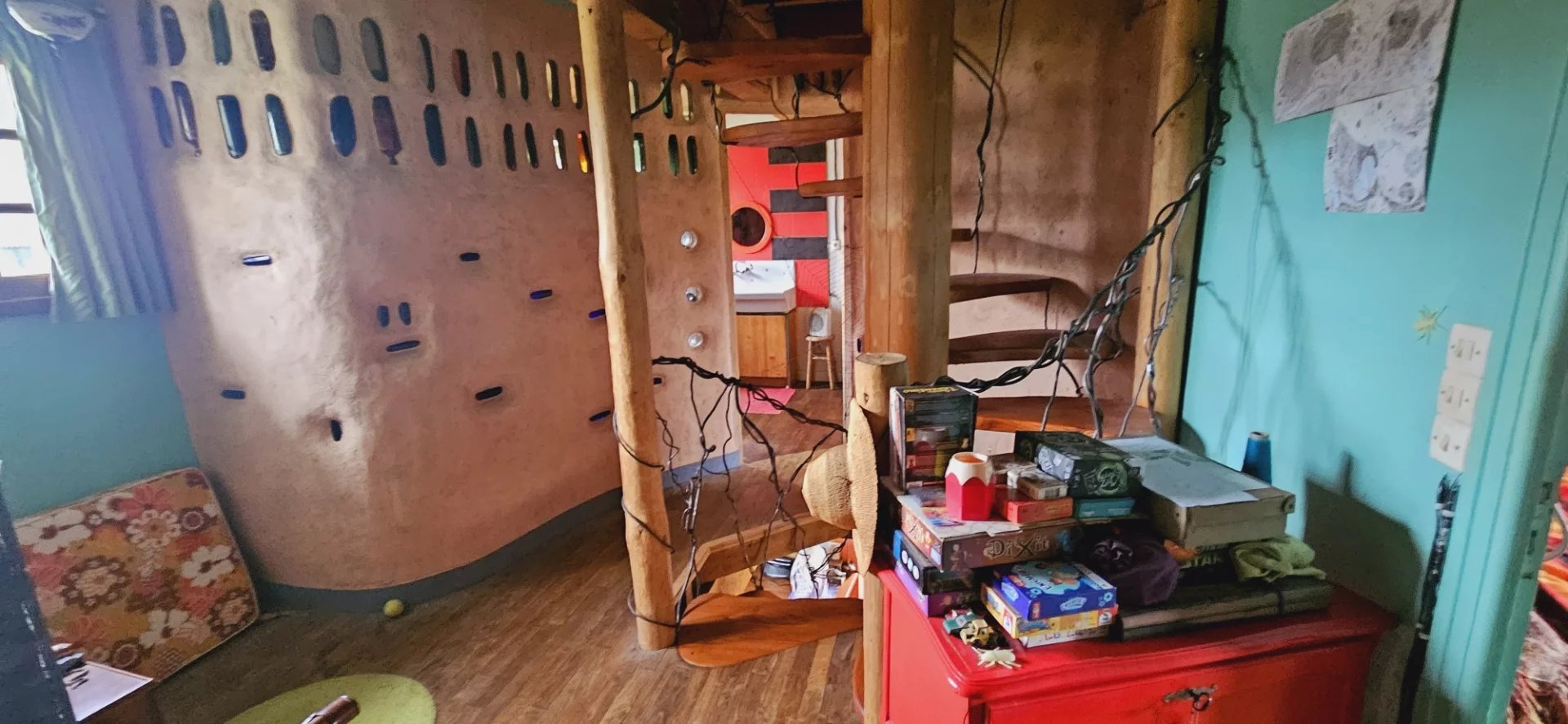 Au 1er étage, 3 chambres, salle de bain. 2 murs en terre / paille.