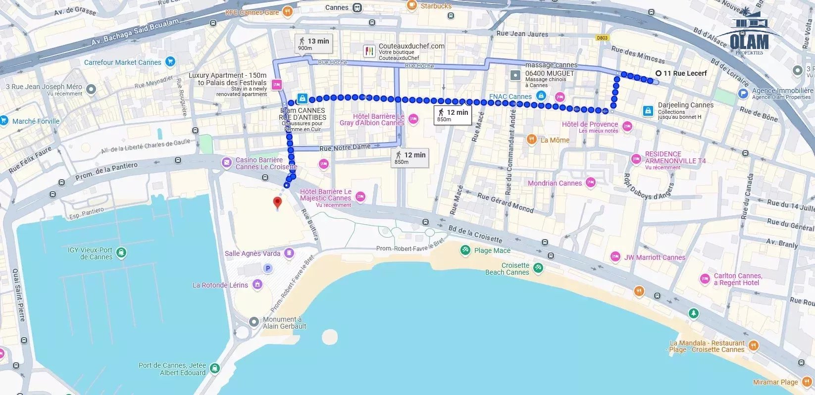 Tous les commerces sont à proximité, la rue d’Antibes est à 1 mn, et les plages à 4 - 5 mns, toujours à pied (la voiture n'est pas nécessaire).