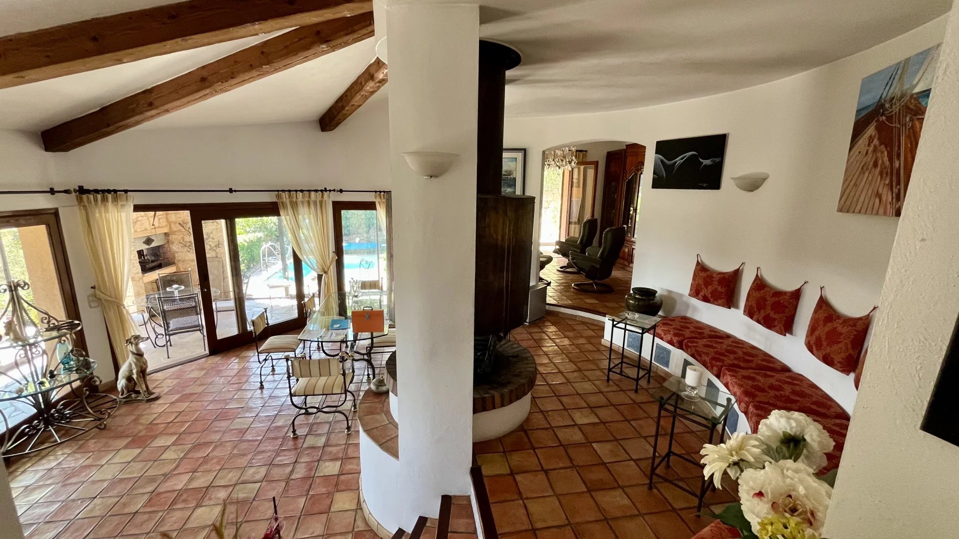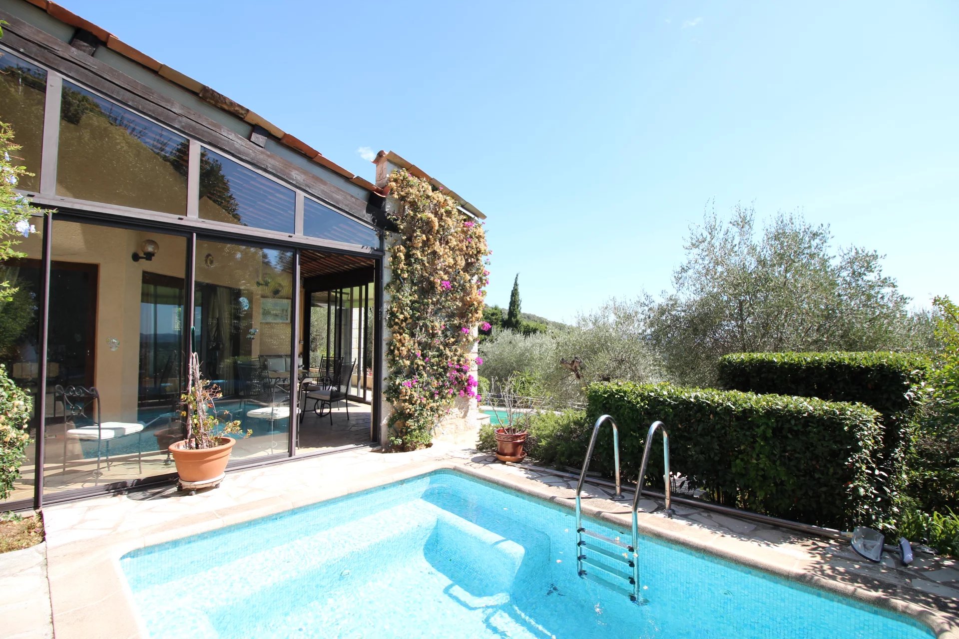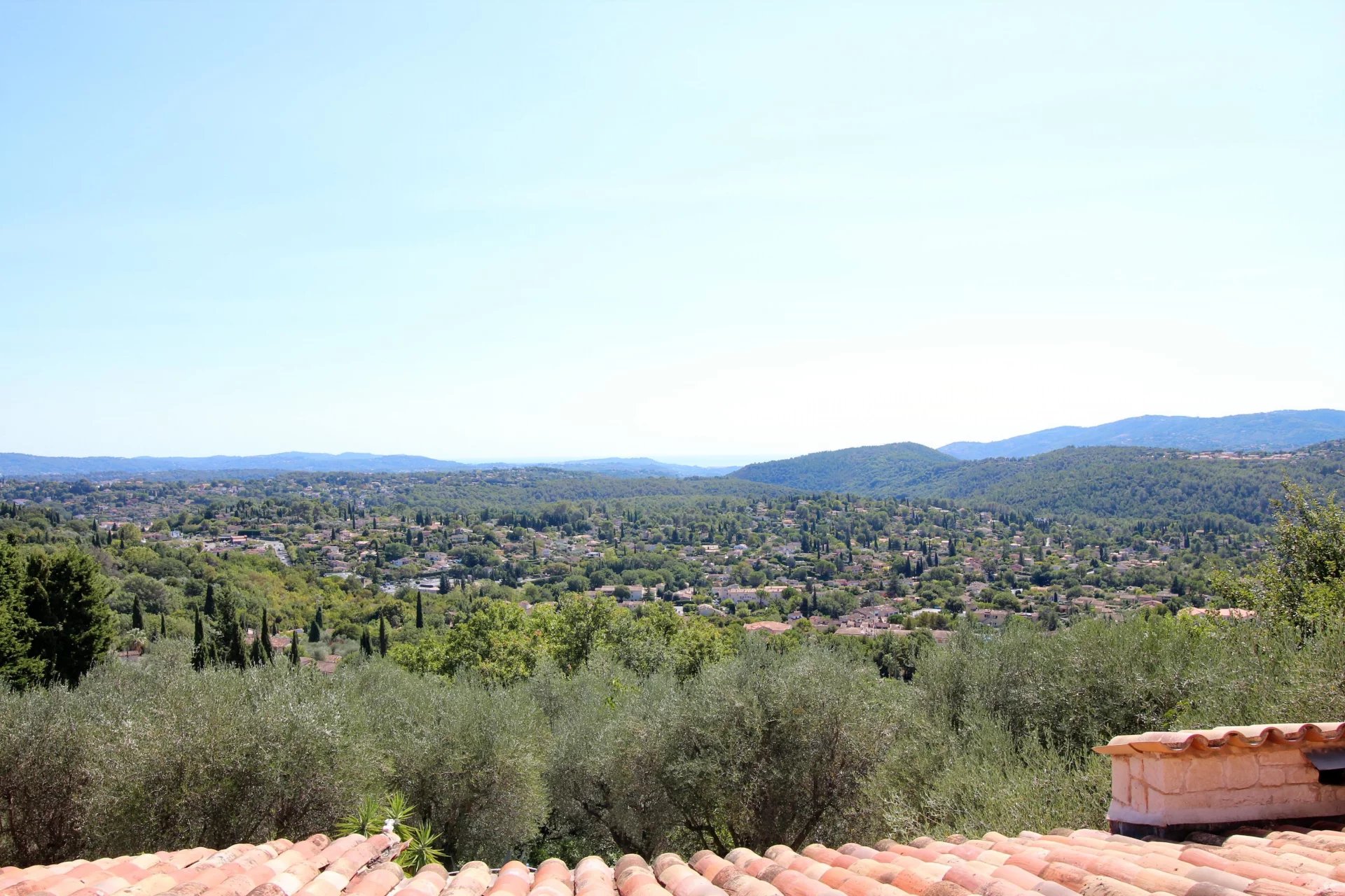 Proche de Peymeinade et des commodités, dans l'arrière pays cannois, superbe villa plein sud d'env 200 m², très lumineuse et au calme, en position dominante avec vue panoramique jusqu'à la mer.