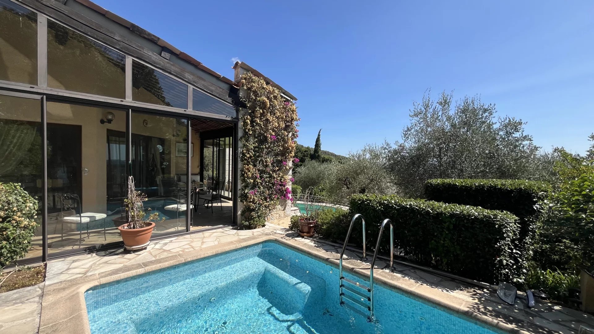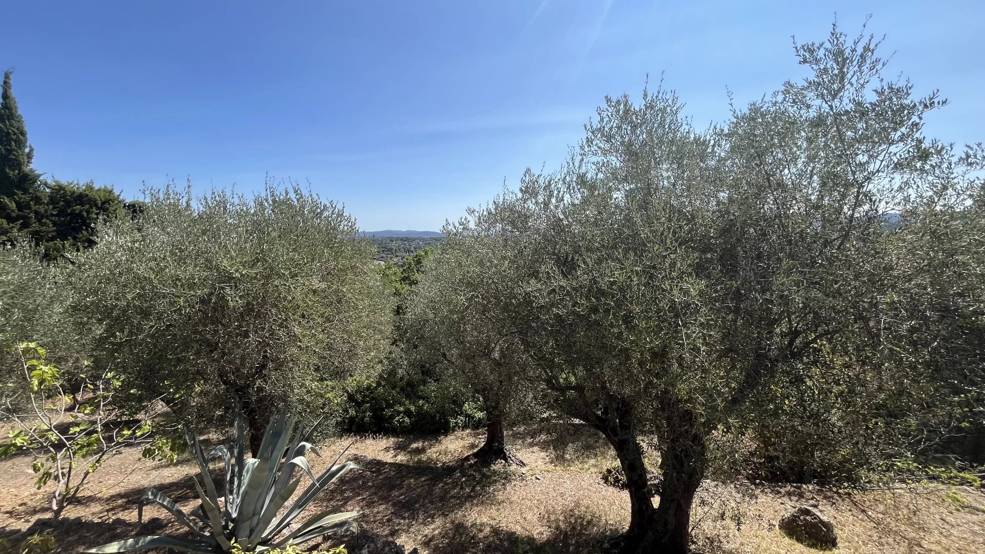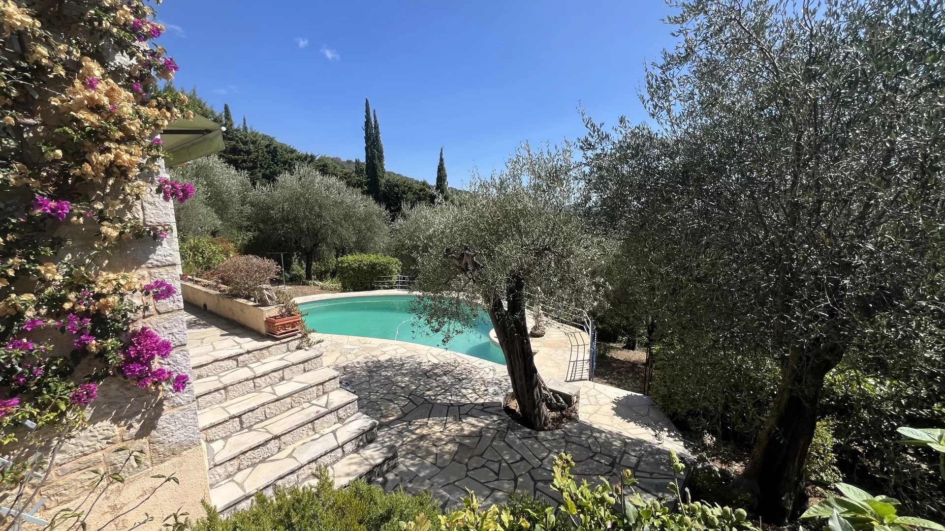 Terrain paysager de 2500m² avec oliviers, 2 piscines dont une chauffée. Cabane jardin.