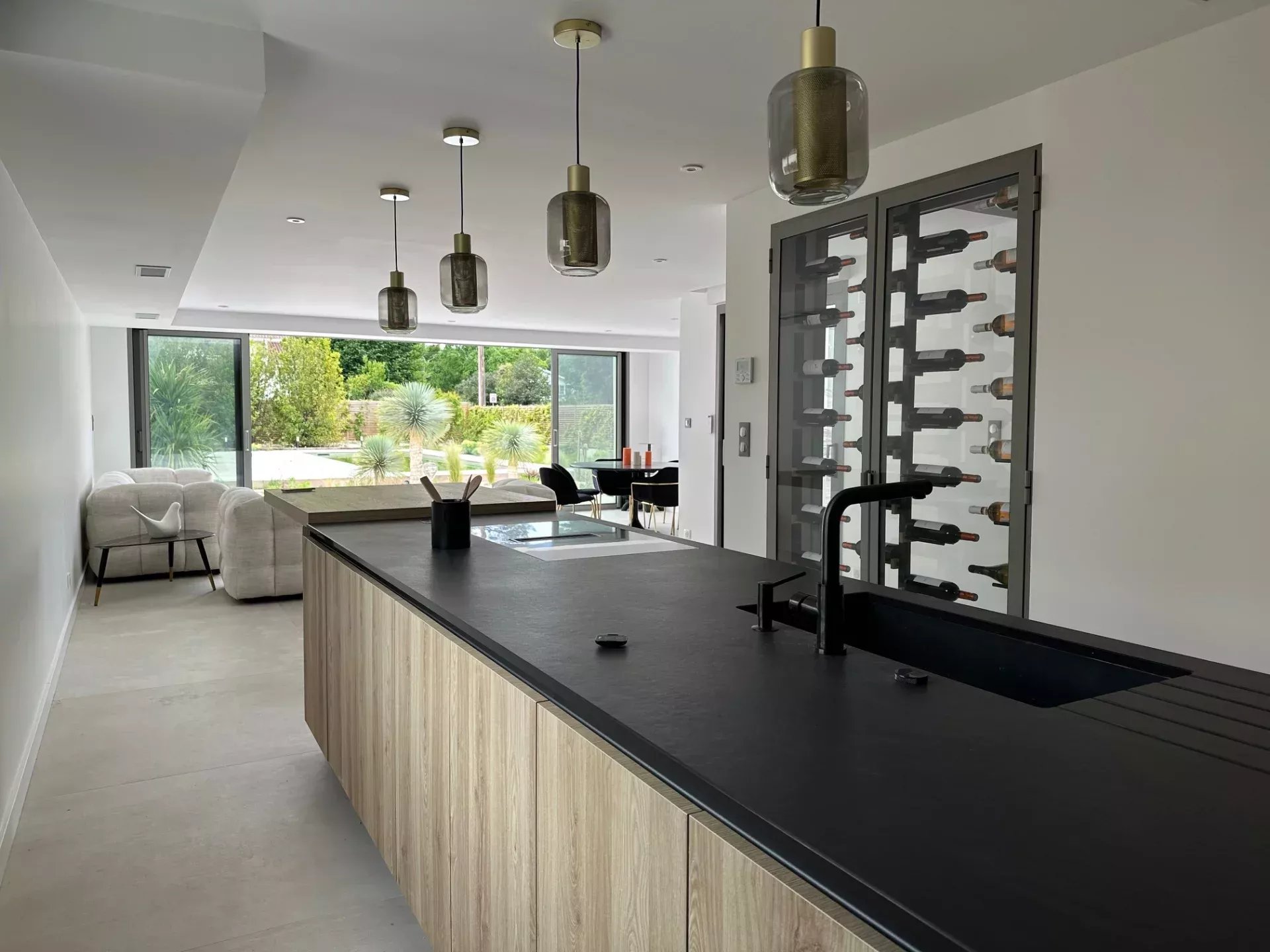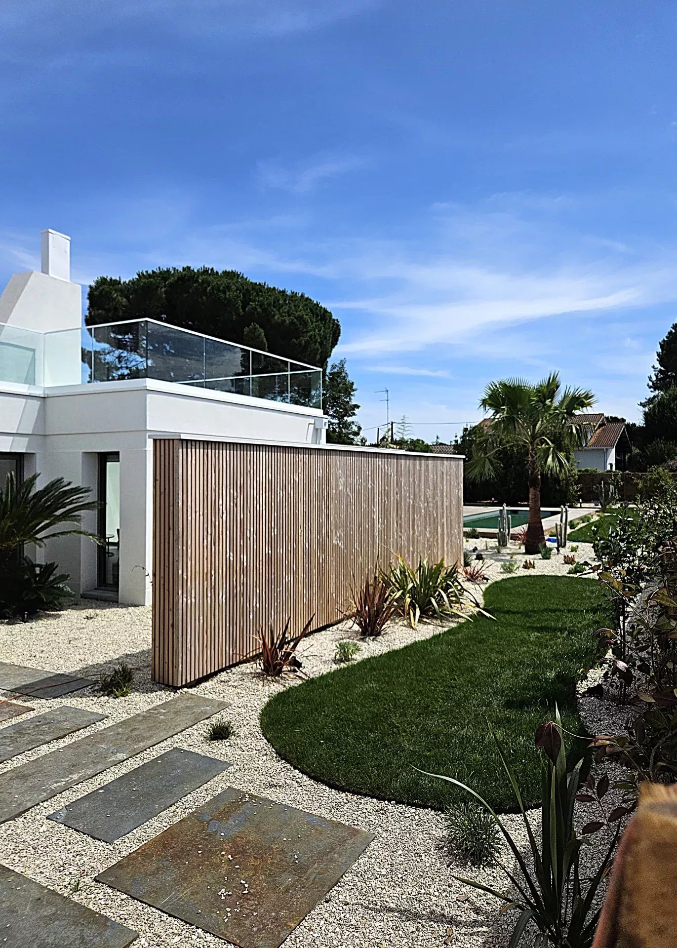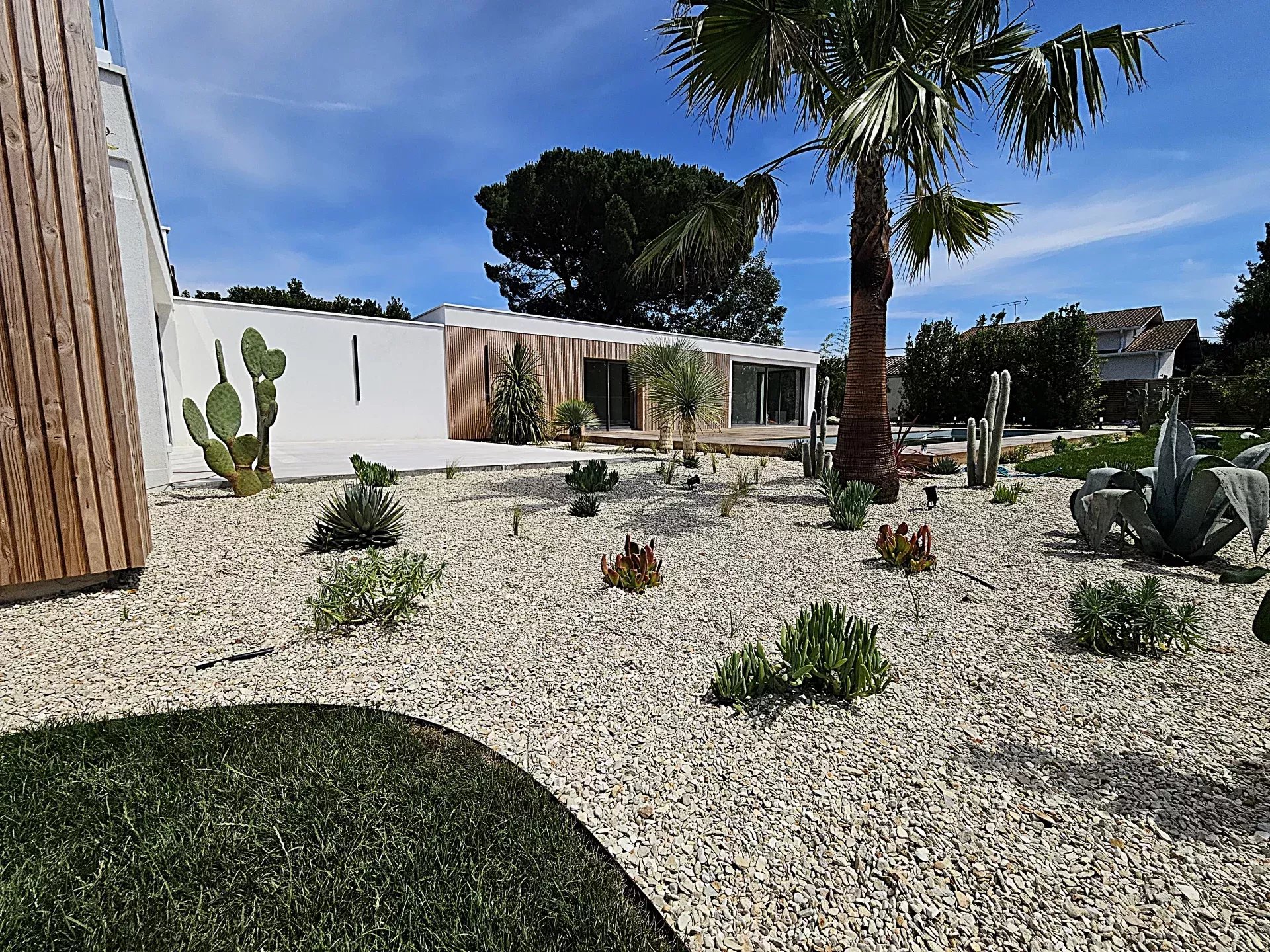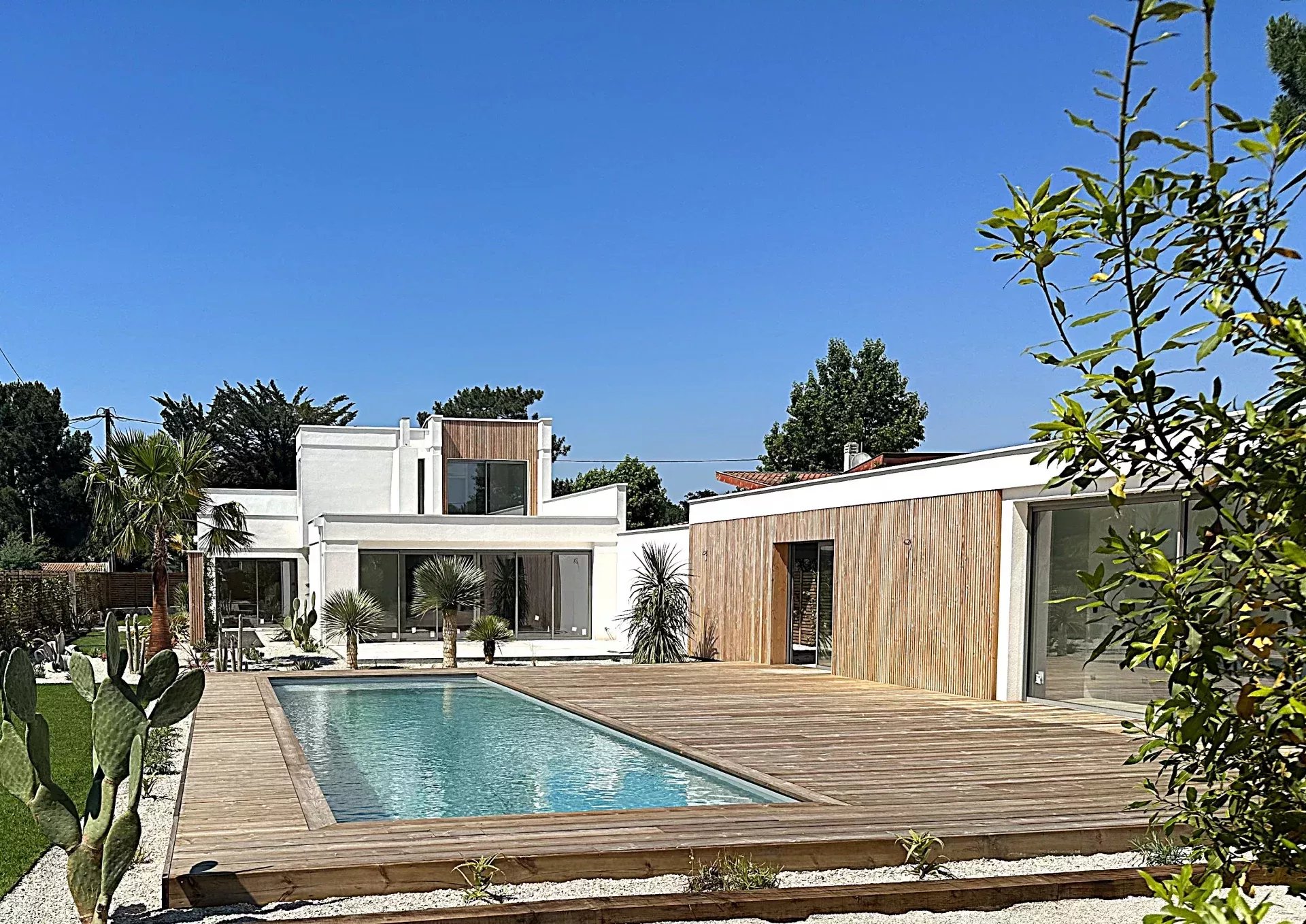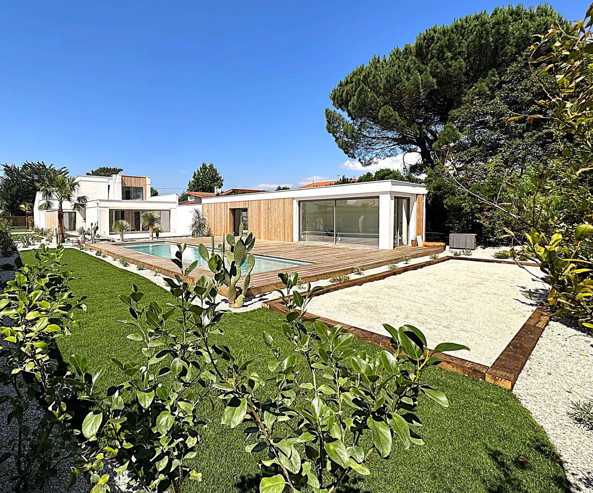 Découvrez une opportunité rare, véritable perle sur le marché immobilier du Bassin d'Arcachon sur la commune de GUJAN-MESTRAS dans le quartier privilégié de la Hume. Cette villa d'exception de 204 m2 implantée sur un magnifique terrain de 1 109 m2 paysagé à l'esprit californien. Le charme de cette propriété vous séduira avec ses lignes contemporaines, ses belles prestations de grandes qualités alliant modernité et raffinement. Son architecture atypique associée à une rénovation totale de 2024 confère à ce bien un standing exceptionnel. Dotée de 7 pièces dont 5 chambres, 4 salles de bain et un solarium font de cette villa un lieu propice aux rencontres familiales et conviviales. Le séjour extrêmement lumineux profite de grandes ouvertures permettant d'accéder à une terrasse ensoleillée de 110 m2 pour des moments de détente et s'ouvre sur une belle piscine chauffée, un pool house de 27m2 composé d'une pièce de vie modulable en chambres une salle d'eau et un wc, un boulodrome et un garage. Le jardin soigné, aux plantations exotiques vous offre bien être, calme et intimité. Il ne vous reste plus qu'à récupérer les clefs...vous êtes déjà chez vous ! Les informations sur les risques auxquels ce bien est exposé sont disponibles sur le site Géorisques : georisques.gouv.fr