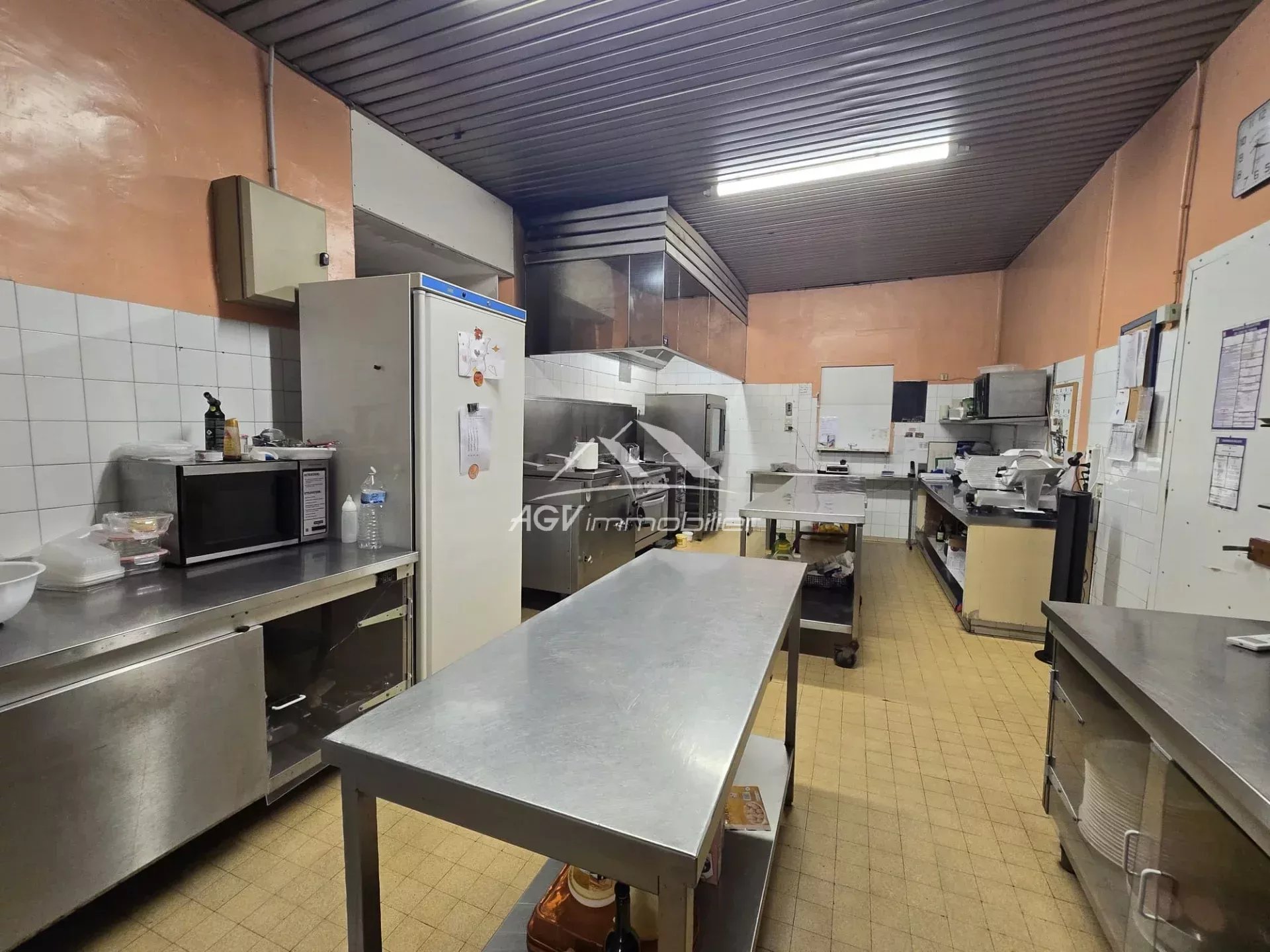 A 10 minutes d'ALES, ensemble immobilier en cœur de ville, offrant de nombreuses possibilités avec de beaux volumes, pour une surface totale d'environ 750 m² : Le rez-de-chaussée est composé actuellement de trois parties distinctes, soit un local (loué 500€ mensuel), un bar et une partie restauration donnant sur une terrasse (vendus sans le fonds) L'étage, un logement de 180 m² composé d'un hall, un salon/salle à manger, 12 chambres, un couloir, une salle de bains et un toilette.