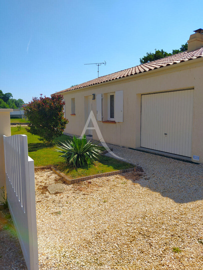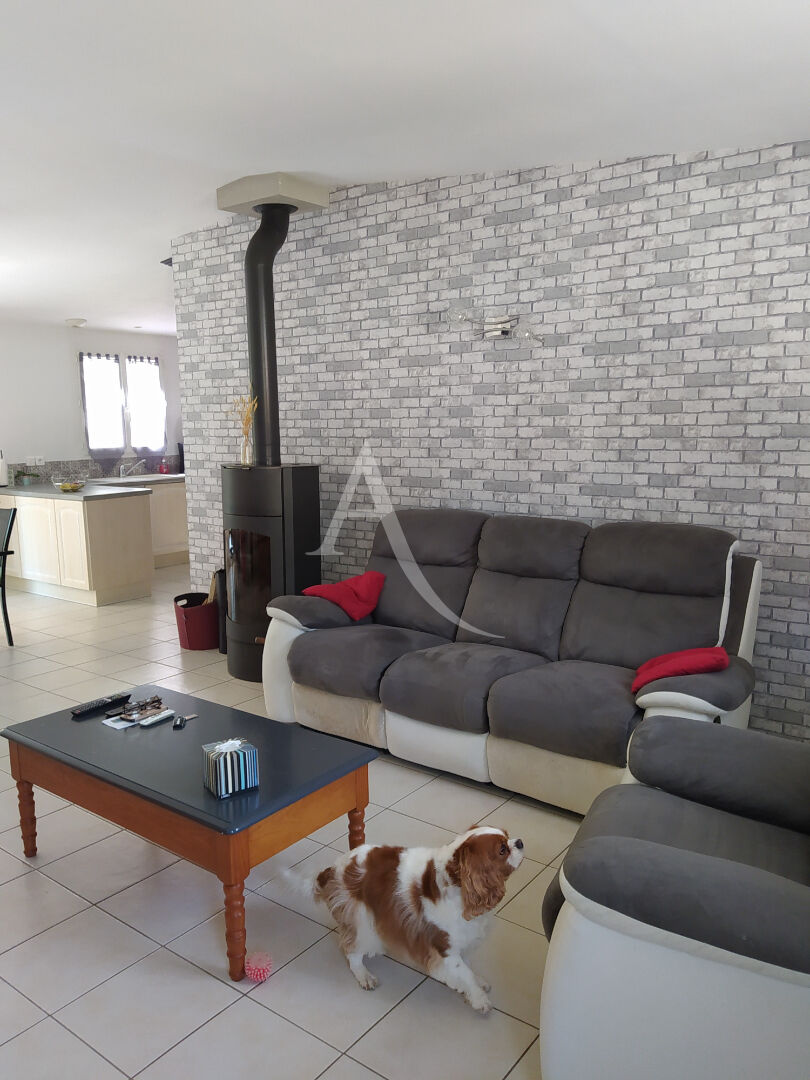 CHALLANS ? Maison de plain-pied avec jardin. A Challans, agréable maison de plain-pied comprenant une belle pièce de vie lumineuse avec poêle à bois, une cuisine aménagée et équipée, un dégagement desservant trois chambres, une salle de bains et des WC séparés. Un garage attenant et communicant complète le bien. A l'extérieur, vous profiterez d'un terrain clos avec abri de jardin. Maison fonctionnelle et confortable, idéale pour une famille !