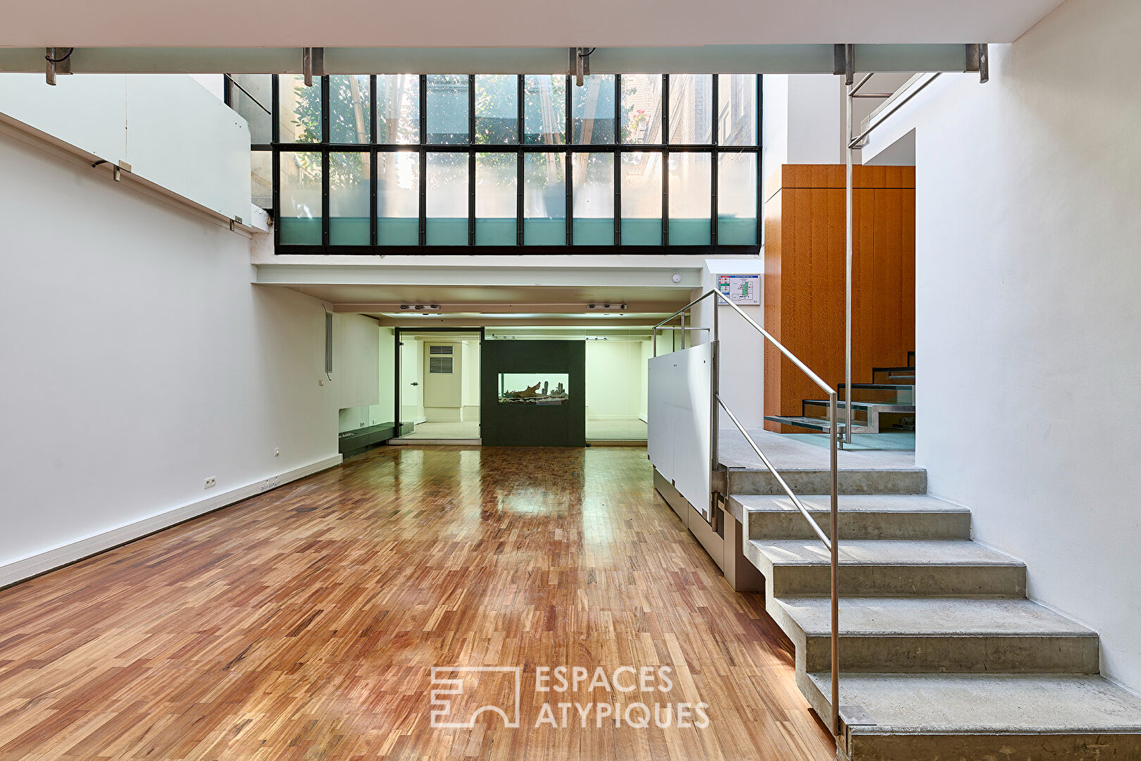 Loft arty avec des volumes exceptionnels de 322,21m2 Carrez dans une ancienne manufacture de papiers peints au coeur du Marché Saint-Martin. Une vaste entrée et son monte charge d'époque donne le ton de cet aménagement singulier : de l'espace dans un esprit industriel. Une passerelle mène à deux premières chambres disposant d'un dressing précédent un salon surplombant la pièce de vie. Un escalier de verre et de béton mène à un espace de réception de 150m2 éclairé par une belle verrière sous 7m30 de hauteur sous plafond. Cet espace accueille le séjour, un salon avec projection vidéo et l'accès à l'espace détente avec piscine/jacuzzi et nage à contre courant. Une cuisine aménagée, un office et une salle à manger viennent parfaire l'ensemble Le niveau est complété par deux chambres supplémentaires et une salle de douche. Lieu de vie, de travail et de réception à la fois, ce loft aux prestations de qualités bénéficie d'un statut commercial. Bien soumis au statut de la copropriété. Métros : Strasbourg-Saint-Denis, Jacques Bonsergent ou République. Contact : Flavie 06 18 08 66 31 RSAC : 753 302 892 Paris Copropriété de 19 lots (Pas de procédure en cours). Charges annuelles : 2800 euros. Flavie Guignard (EI) Agent Commercial - Numéro RSAC : 753302892 - Paris.