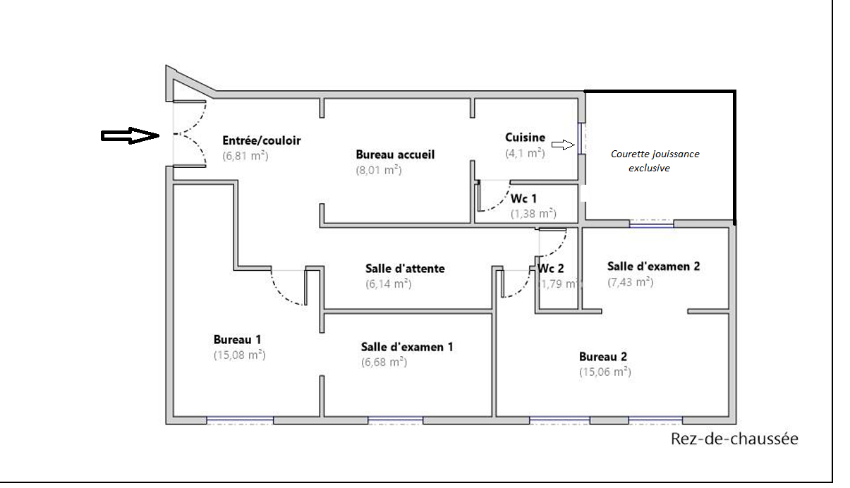 EXCLUSIVITE. AVENUE VICTOR HUGO. Dans un immeuble en pierres de taille construit en 1860, un Local Professionnel en rez-de-chaussée sur cour d'une surface de 72,48 m2 carrez offrant un accueil/espace secrétariat, une salle d'attente, 2 grands bureaux. Possibilité de créer un 3ème bureau, une kitchenette avec accès direct à une courette à jouissance exclusive, 2 WC. 1 CAVE. Accès PMR. Hauteur sous plafond 3 m. Charges annuelles de copropriété 2.400 euros. Copropriété de 20 lots principaux. Métro Victor Hugo. Contact direct 0652740518 Muriel Garnreiter (E.I) muriel@rez-de-chaussee.com RSAC 2018AC00169. (3.91 % honoraires TTC à la charge de l'acquéreur.) Copropriété de 49 lots - dont 20 lots habitation.(). (RDC) Muriel GARNREITER (EI) Agent Commercial - Numéro RSAC : - .
