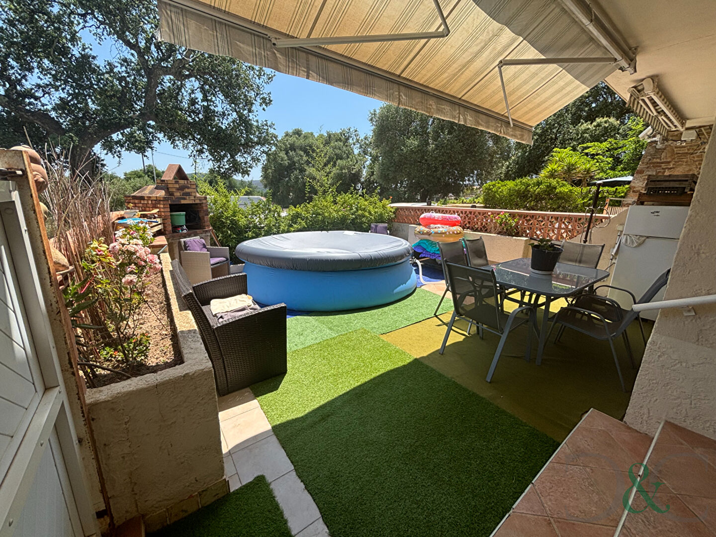 A vendre. Bormes les Mimosas , Pin de Bormes. Appartement en réez de jardin , situé dans une petite copropriété à proximité immédiate des commerces. Cet appartement de 65 m² se compose d'un salon séjour ouvrant sur une grande terrasse de 36 m² idéale pour organiser vos repas en extérieur. La cuisine indépendante est entièrement équipée. Deux chambres et une salle de bains complètent le bien. Deux parkings extérieurs Vendu par Cellier et Coates Bormes Tel +33 49 40 01 02 (5.26 % honoraires TTC à la charge de l'acquéreur.) Copropriété de 7 lots (Pas de procédure en cours). Charges annuelles : 4 euros.