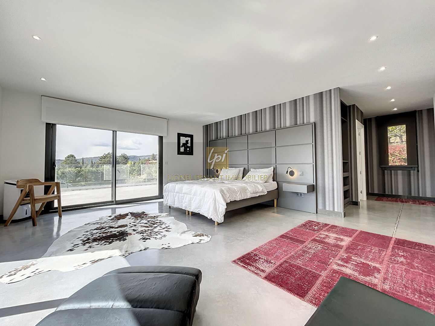 MONT VENTOUX - HAUTEURS DU VILLAGE VILLA CONTEMPORAINE T6 300M² , GARAGE, PISCINE A DEBORDEMENT, AVEC VUE IMPRENABLE SUR UN TERRAIN DE 2000M². Au sommet d'un des village les plus prisé de France, venez découvrir la vue époustouflante que vous offre cette maison résolument contemporaine, construite en 2020, aux nombreux superlatifs! La totalité de ses pièces de vie sont tournées vers la vue village et vallée et ont un accès privatif à l'une des nombreuses terrasses de la propriété. La bâtisse se compose de 3 modules attenants permettant d'envisager de nombreuses exploitations ou modifications (gîtes, appartements indépendants...) Module 1: Espace jour. Dès le hall d'entrée franchi, laissez-vous subjuguer par le fantastique espace de vie de 125m², composé d'un séjour cathédrale et d'une superbe cuisine américaine entièrement aménagée et équipée. Module 2: Espace nuit Le premier espace nuit se compose 2 suites parentales de 27m² avec, pour chacune, une salle d'eau privative avec wc et un dressing aménagé. Le tout ouvrant sur une terrasse privative. Module 3: Espace nuit parental Ce deuxième espace partage un hall d'entrée commune avec le Module 2. Il se compose d'une suite de 27m² et d'un appartement indépendant de 50m² avec kitchenette, salle de bains, dressing et chambre/séjour de 28m². L'ensemble ouvre directement sur la terrasse et la piscine. Côté pratique, 2 entrées indépendantes, cellier, x2 garage de 30m², nombreux stationnements. Côté confort, x2 vitrage aluminium à galandage, volets roulants électriques, stores-ban électriques à détection de vent, climatisation réversible gainable, 3 salles d'eau, 1 salle de bains, 5 wc. A l'extérieur les 280m² de terrasses se répartissent tout autour de la maison, offrant des espaces extérieurs cosy et ensoleillés, tout en profitant de la vue. La piscine, couloir de nage à débordement 16x3m en pierre de Bali s'équipe d'un volet roulant électrique pour plus de sécurité. Elle se dote d'une filtration au sel automatisée. Une architecture offrant une belle luminosité, une vue imprenable, en restant de plain pied. Des prestations de qualité, un environnement gros du commun, dans un village très prisé. CETTE MAISON N'ATTEND PLUS QUE VOUS ET VOS VALISES. Carpentras, Pernes les Fontaines, Caromb, Malaucène, Avignon, Gordes, Lubéron, Beaumes de Venise.