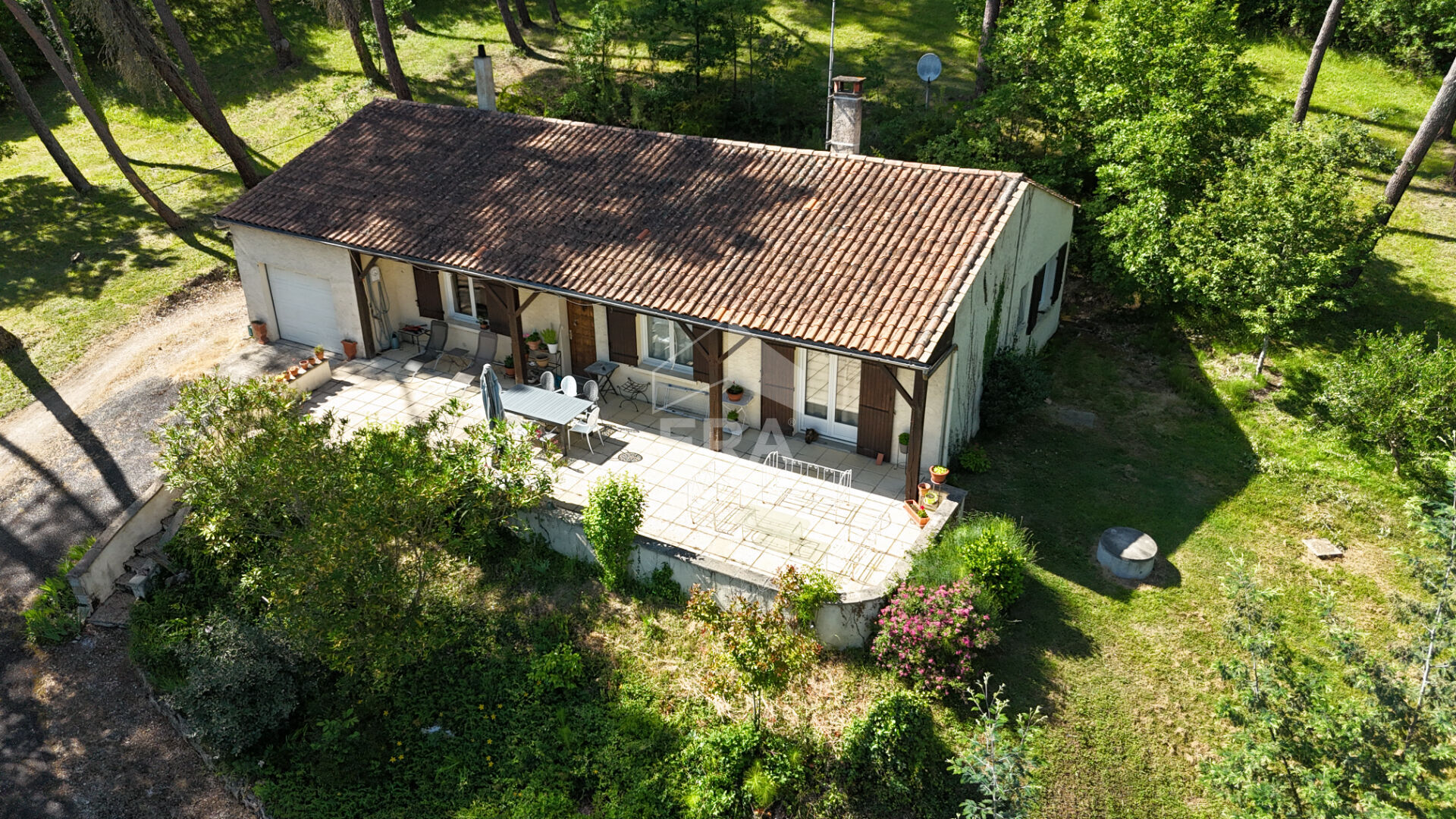 Agréable maison de 96 m2 au goût du jour, et son garage communicant de 34 m2 dans lequel nous pourrions aisément créer une quatrième chambre. Elle se compose de 5 pièces dont une grande cuisine entièrement équipée et lumineuse, un salon chaleureux, 3 belles chambres avec placards, une salle d'eau récente et des toilettes. Une grande terrasse de 60 m2 à rénover. Il s'agit de la maison idéale pour une famille. Côté extérieur, vous y trouverez un abri bois de 19 m2 et un grand jardin boisé de 6200 m2 vous offrant un calme absolu dans une impasse. Cette demeure paisible n'attend plus que vous.. Ne tardez plus !