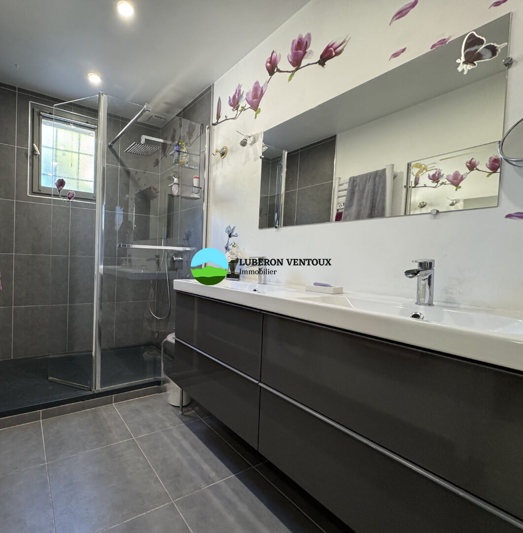 Luberon Ventoux Immobilier vous propose à la vente : Maison de plain-pied avec dépendance, piscine chauffée et grand terrain arboré à Velleron Située à Velleron, dans un environnement paisible alliant le charme de la campagne et la proximité du centre-ville, cette belle propriété de plain-pied offre un cadre de vie idéal pour une famille ou pour ceux qui recherchent le calme sans renoncer aux commodités. Édifiée sur une parcelle de plus de 1 900 m², entièrement clôturée et soigneusement paysagée, la maison principale développe de beaux volumes et propose 5 chambres, dont une partie indépendante pouvant servir de studio, bureau professionnel ou logement d'amis. Espace de vie : Dès l'entrée, vous découvrez une pièce à vivre lumineuse, ouverte sur l'extérieur donnant sur le jardin. Une véranda chauffée complète cet espace et sert aujourd'hui de cuisine d'été, idéale pour profiter des repas en toute saison avec une vue imprenable sur le jardin. Extérieurs : Le terrain, de plus de 1 900 m², est un véritable havre de paix. Joliment arboré, il bénéficie de nombreux espaces de détente. Au centre du jardin, la piscine chauffée vous invite à la baignade dès les beaux jours. Un double garage et plusieurs espaces de stationnement complètent cet ensemble, avec un portail électrique pour plus de confort et de sécurité. Prestations et confort : Maison de plain-pied, fonctionnelle et facile à vivre Système de chauffage gainable réversible récent (chaud/froid) Piscine chauffée Double garage Eau du canal + eau de ville Portail électrique Jardin arboré et entretenu Dépendance aménagée Vérandas, dont une chauffée servant de cuisine d'été Emplacement : La propriété se situe dans un secteur recherché de Velleron, au calme tout en restant à quelques minutes du centre-ville, des écoles, commerces et services. Vous profitez ainsi d'un jolie cadre de vie : la tranquillité de la campagne, à deux pas de tout. Une maison coup de coeur, alliant espace, modernité et sérénité. Idéale pour une grande famille, un projet de vie intergénérationnel ou une activité indépendante. Pour plus d'informations ou pour organiser une visite, contactez nous dès aujourd'hui au 04.90.70.70.70 REF 50534 (5.00 % honoraires TTC à la charge de l'acquéreur.)