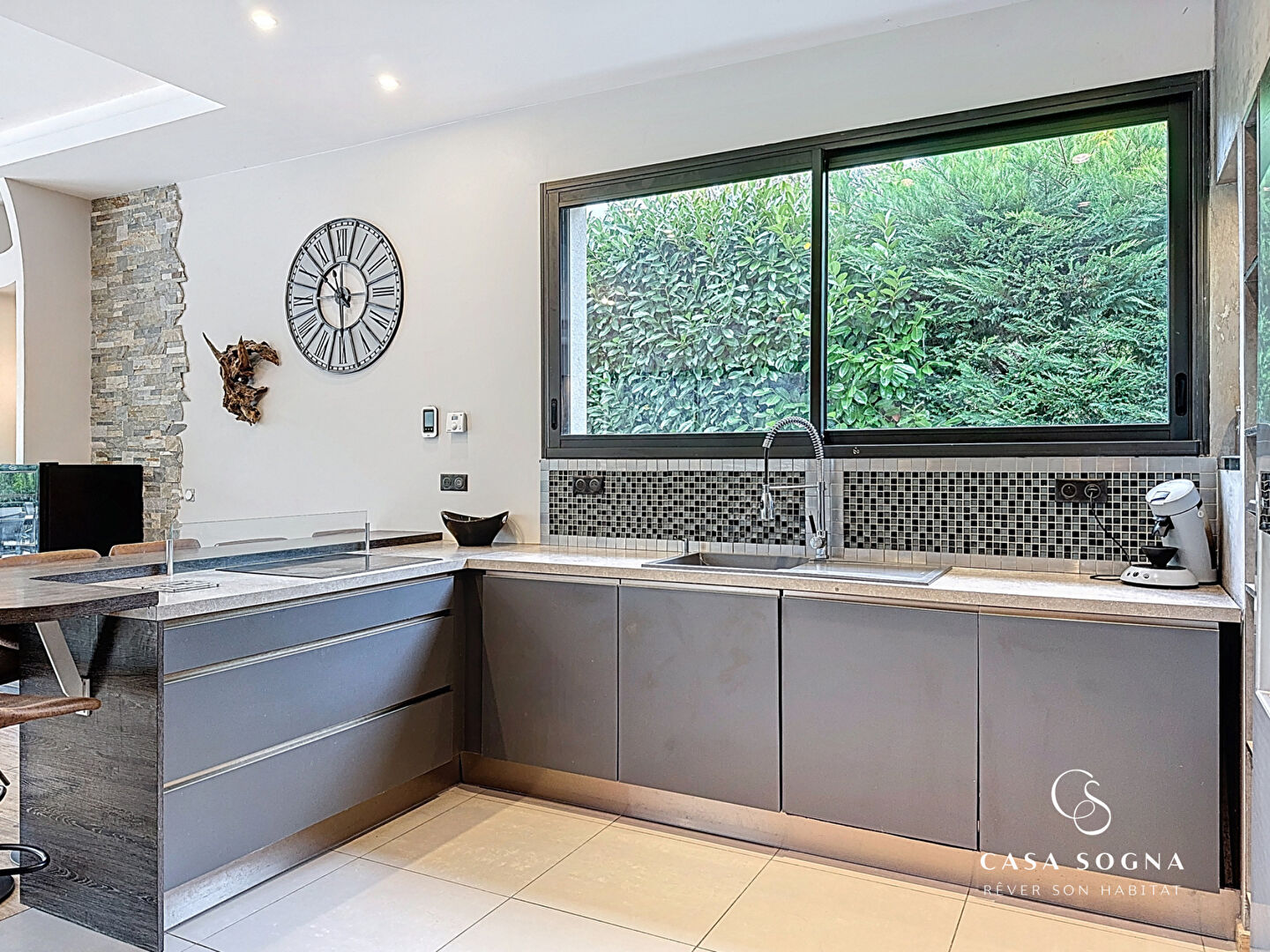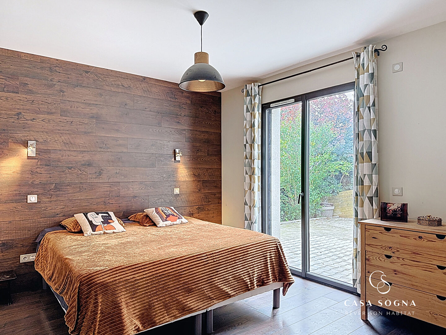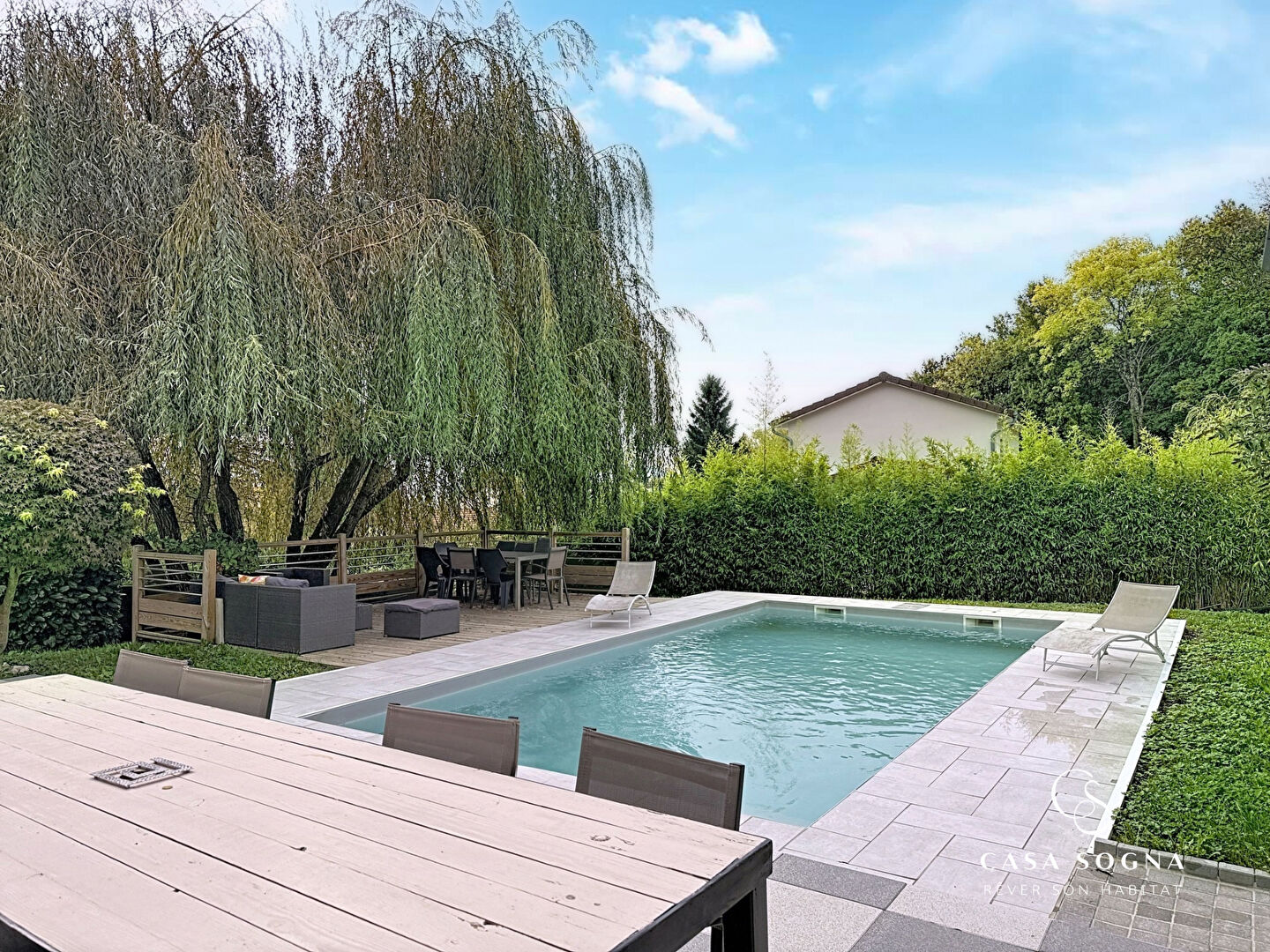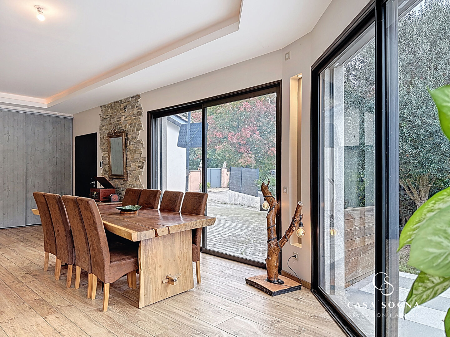 CASA SOGNA vous présente : dans le charmant village de Priay, à seulement dix minutes d'Ambérieu-en-Bugey et des principaux accès autoroutiers, cette villa contemporaine de plain-pied dans un cadre de vie rare, alliant calme, modernité et confort absolu, située dans un environnement paisible bordée par la rivière. Cette maison récente, à la fois lumineuse, économe et familiale, séduira les amateurs de beaux espaces, de prestations haut de gamme et de sérénité, dans un secteur calme et recherché. Avec ses 186.51 m² habitables sur une parcelle de 1081 m², dès l'entrée, la luminosité et les volumes généreux séduisent. La vaste pièce de vie d'environ 70 m² exposée Est/Sud, baignée de lumière grâce à ses larges ouvertures donnant sur les extérieurs, intègre une cuisine ouverte entièrement équipée, un espace salle à manger et un salon chaleureux offrant une belle hauteur sous plafond. La partie nuit comprend deux chambres confortables partageant une grande salle d'eau avec douche à l'italienne. Un bureau, un cellier/buanderie, ainsi qu'une grande chambre d'amis disposant de sa salle d'eau privative avec toilettes. La suite parentale, d'une superficie totale d'environ 33 m², comprend une chambre spacieuse avec accès aux extérieurs, un dressing et une grande salle d'eau élégante avec douche à l'italienne et baignoire. Les prestations sont à la hauteur : chauffage au sol, climatisations réversibles dans le séjour et la chambre d'amis, grande porte de garage motorisée, huisseries aluminium, domotique et surtout une excellente performance énergétique (DPE : classe B), gage d'un confort thermique optimal et d'une faible consommation d'énergie tout au long de l'année. A l'extérieur, tout a été pensé pour la détente et la convivialité : une vaste terrasse ensoleillée, une cuisine d'été entièrement équipée, et une piscine 8x4 mètres. Une seconde terrasse, discrètement nichée sous les arbres, offre un coin ombragé plein de charme, idéal pour profiter des beaux jours à l'abri du soleil. La cour permet de stationner plusieurs véhicules en toute facilité. Visite virtuelle sur demande! DPE: B/ GES: A Prix moyens des énergies indexés sur les années 2021, 2022, 2023 (abonnements compris): entre 1100 euros et 1550 euros. Les informations relatives aux risques auxquels ce bien est exposé sont disponibles sur le site www.georisques.gouv.fr. Prix: 515 000 euros Honoraires Agence inclus à la charge du vendeur. Pour toute information complémentaire ou pour organiser une visite, contactez Sonia Dridi au 06 82 10 06 84 Agent immobilier immatriculé RCS 935 359 489 www.casa-sogna.immo 48 rue Gustave-Noblemaire, 01500 Ambérieu-en-Bugey