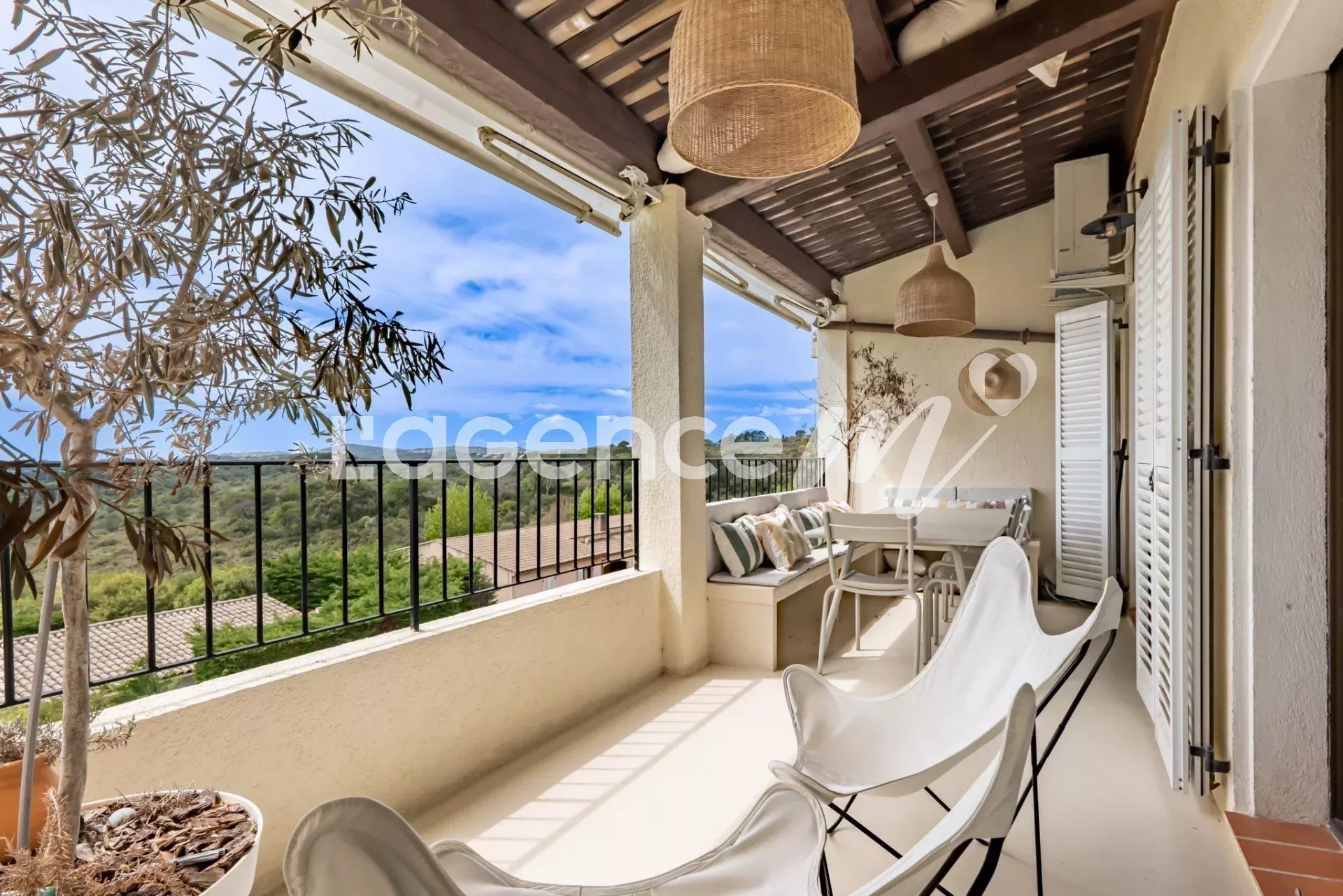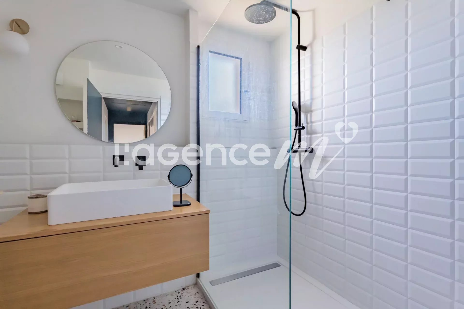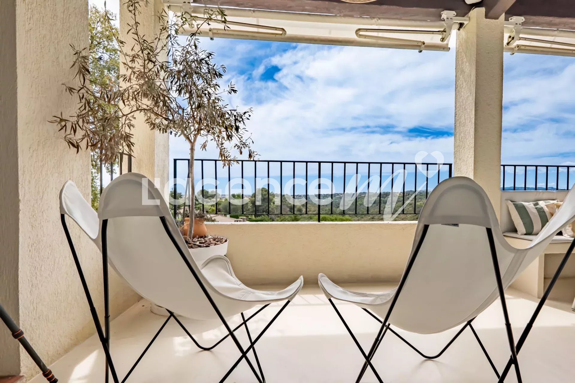 VILLENEUVE LOUBET - DOMAINE DES HAUTS DE VAUGRENIER: Au sein du fabuleux domaine de 130 hectares des Hauts de Vaugrenier qui comporte 3 lacs, une piscine olympique, 8 tennis, gardiens 24h/24h, une place, des commerces (pharmacie, supérette, boucherie etc...), et une école maternelle publique ; Venez découvrir "Valeria", ce superbe appartement 3 pièces avec vue mer, ce bien moderne et élégant offre des prestations haut de gamme : climatisation gainable, parquet en chêne massif, terrasse en béton ciré et nombreux rangements sur mesure. Il se compose d'un hall d'entrée, d'un vaste séjour s'ouvrant sur une belle terrasse conviviale, d'une cuisine équipée indépendante agrémentée d'une verrière à galandage et d'une buanderie, d'un dégagement avec doubles placards sur mesure, d'une salle de douche avec WC, d'une chambre et d'une grande suite parentale avec accès direct à la terrasse. "Valeria" dispose de nombreux atouts rares : faibles charges, proximité immédiate des commerces du domaine à pied et une vue panoramique digne d'un tableau. Un grand garage complète ce bien exceptionnel. Situé à seulement 10 minutes des plages en voiture, ce domaine privé unique en son genre vous enchantera par ses paysages verdoyants et son atmosphère paisible. Parfaitement situé, il se trouve à 2 minutes de l'autoroute et à 5 minutes de la gare, facilitant ainsi vos déplacements. Classe énergie B - Charges mensuelles 250€ - Taxe foncière 1215€ - Pas de procédure en cours à notre connaissance. Les informations sur les risques auxquels ce bien est exposé sont disponibles sur le site Géorisques http://georisques.gouv.fr