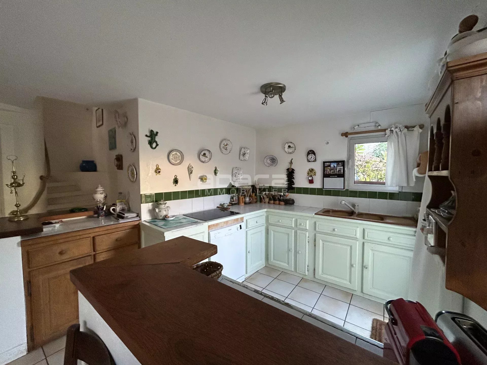 A DEUX PAS DE L'EGLISE Maison de village avec jardin clos de murs et sans vis-à-vis. Deux accès indépendant par un chemin piéton bien agréable et bien utile. Elle se compose d'une jolie pièce de vie avec cheminée et cuisine Us. A l'étage 3 chambres salle d'eau. En annexe une chambre indépendante avec salle d'eau. Un écrin de verdure et pour compléter le bien, indispensable un garage !