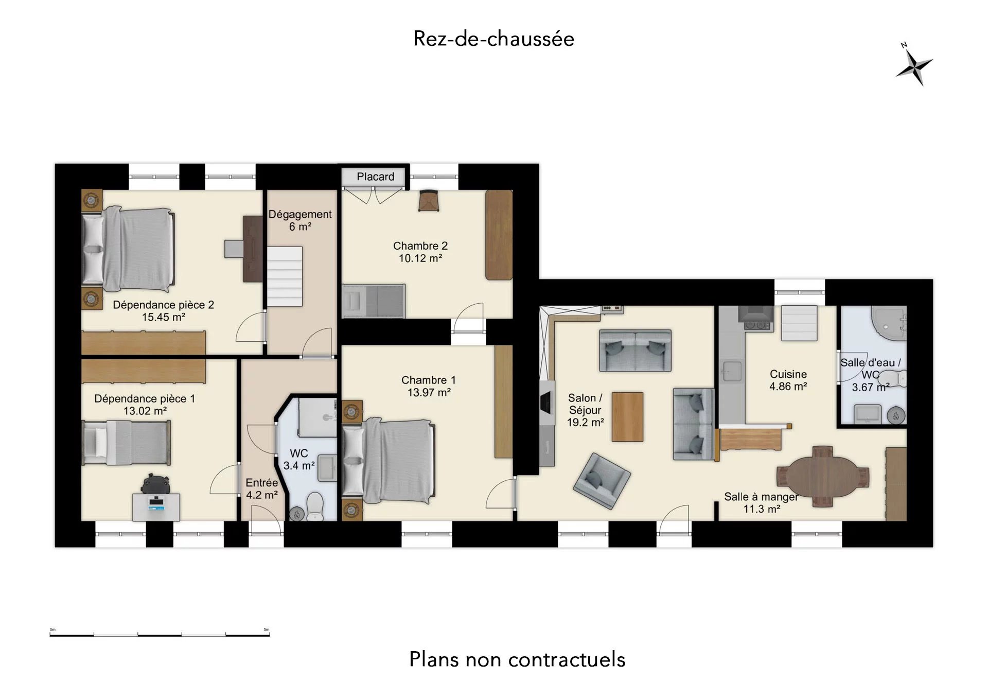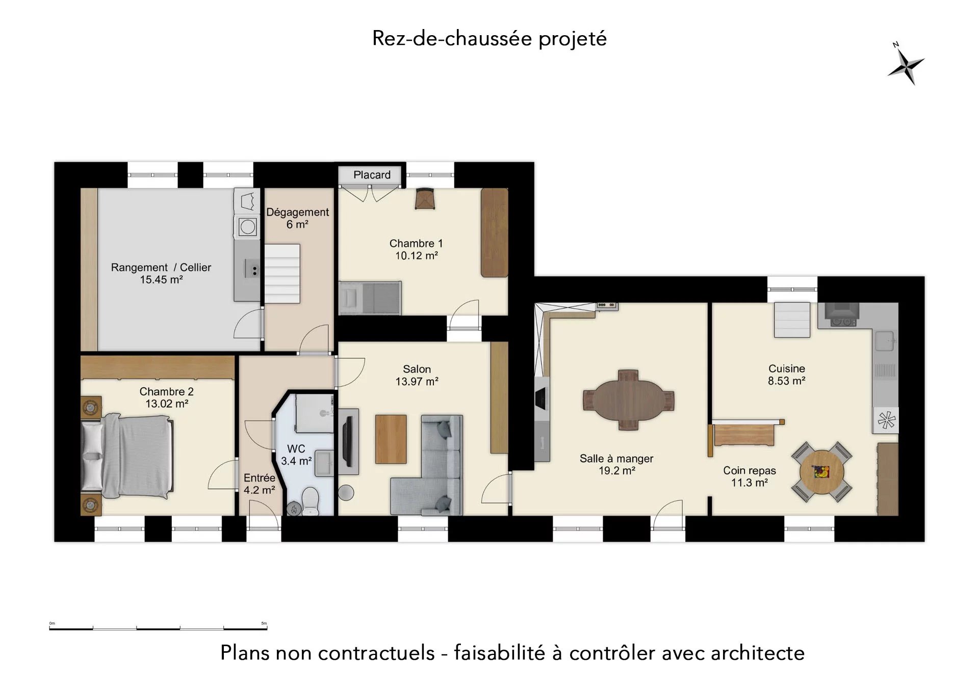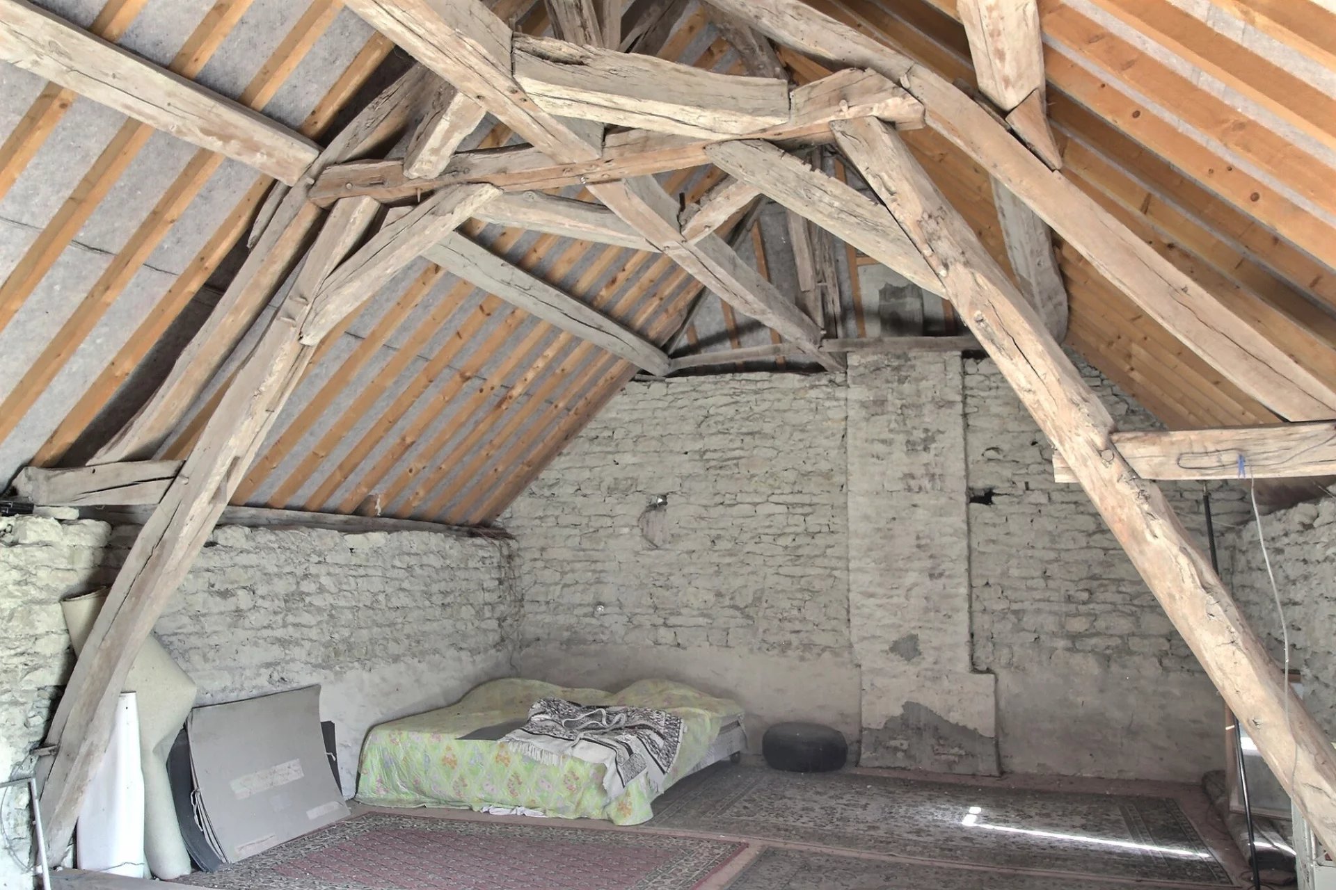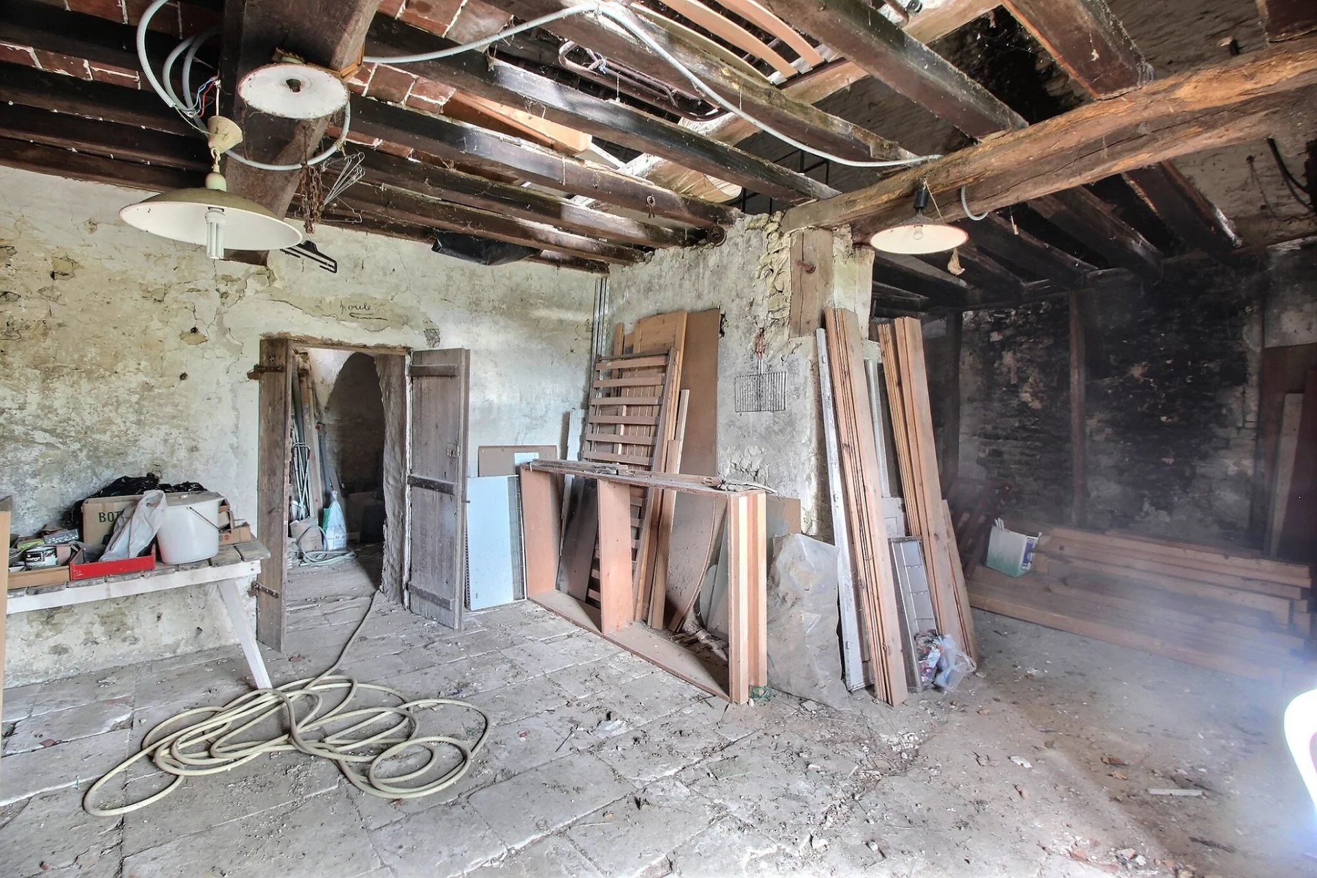 Une partie de la maison a déjà bénéficié de premiers travaux (toiture, menuiseries extérieures et début d’isolation notamment), mais l’ensemble nécessite une rénovation complète qui conviendrait parfaitement à un projet personnalisé. Ce projet de réhabilitation de la maison principale pourrait conduire à la création d’un bel espace de vie au rez-de-chaussée et de quatre chambres réparties sur les deux niveaux, dont une grande suite parentale à l’étage avec salle de bains et WC.