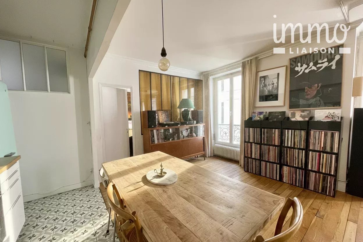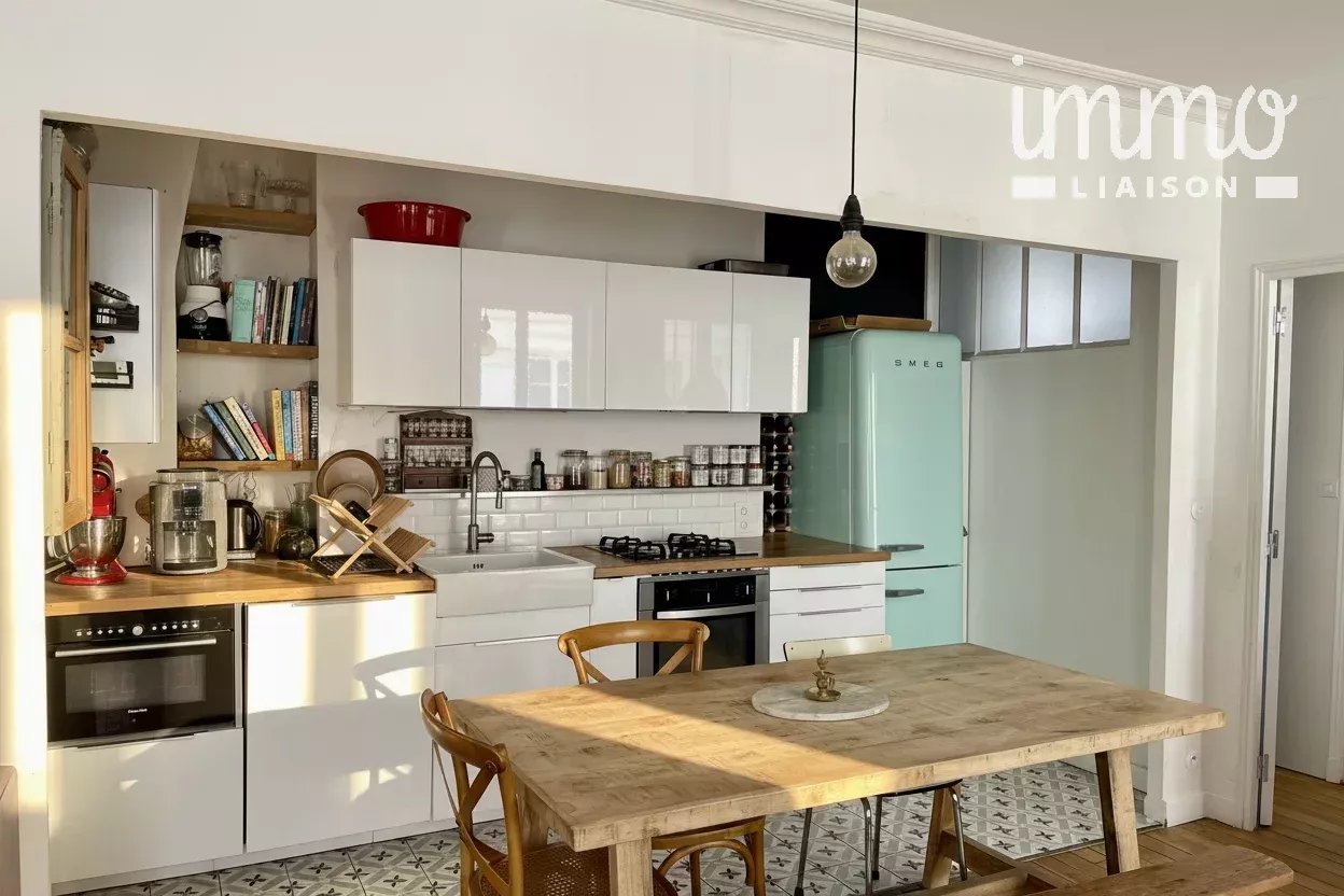 Cet appartement c’est l’accord parfait entre le charme de l'ancien et le style industriel: parquet, moulures, cheminée, radiateurs apparents, authentique verrière avec montant en fer forgé, bel espace de vie sans perte de place, cuisine ouverte, vidéoprojecteur.