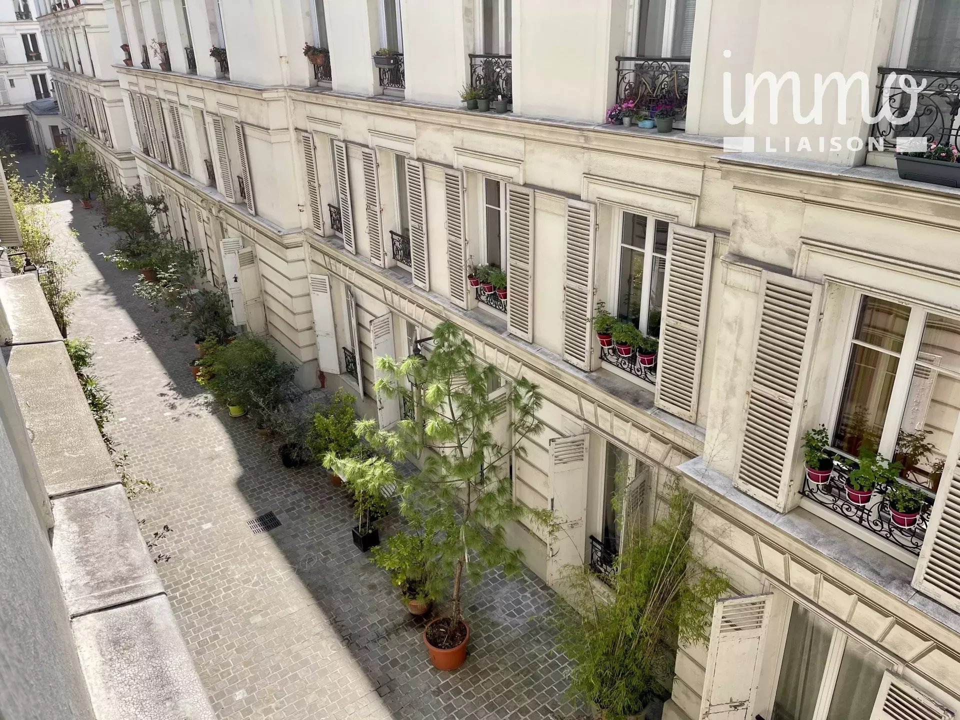 A 5mn des métros Pyrénées et Belleville, au calme d’une belle cour pavée et fleurie, au 2 ème étage sans ascenseur d'un bel immeuble de 1880, charmant appartement 2 pièces de 54 m² ( 53,86 carrez) comprenant : entrée, séjour de 32 m² avec cuisine ouverte aménagée et équipée, chambre, bureau, salle d’eau avec toilettes. Une cave complète ce bien.