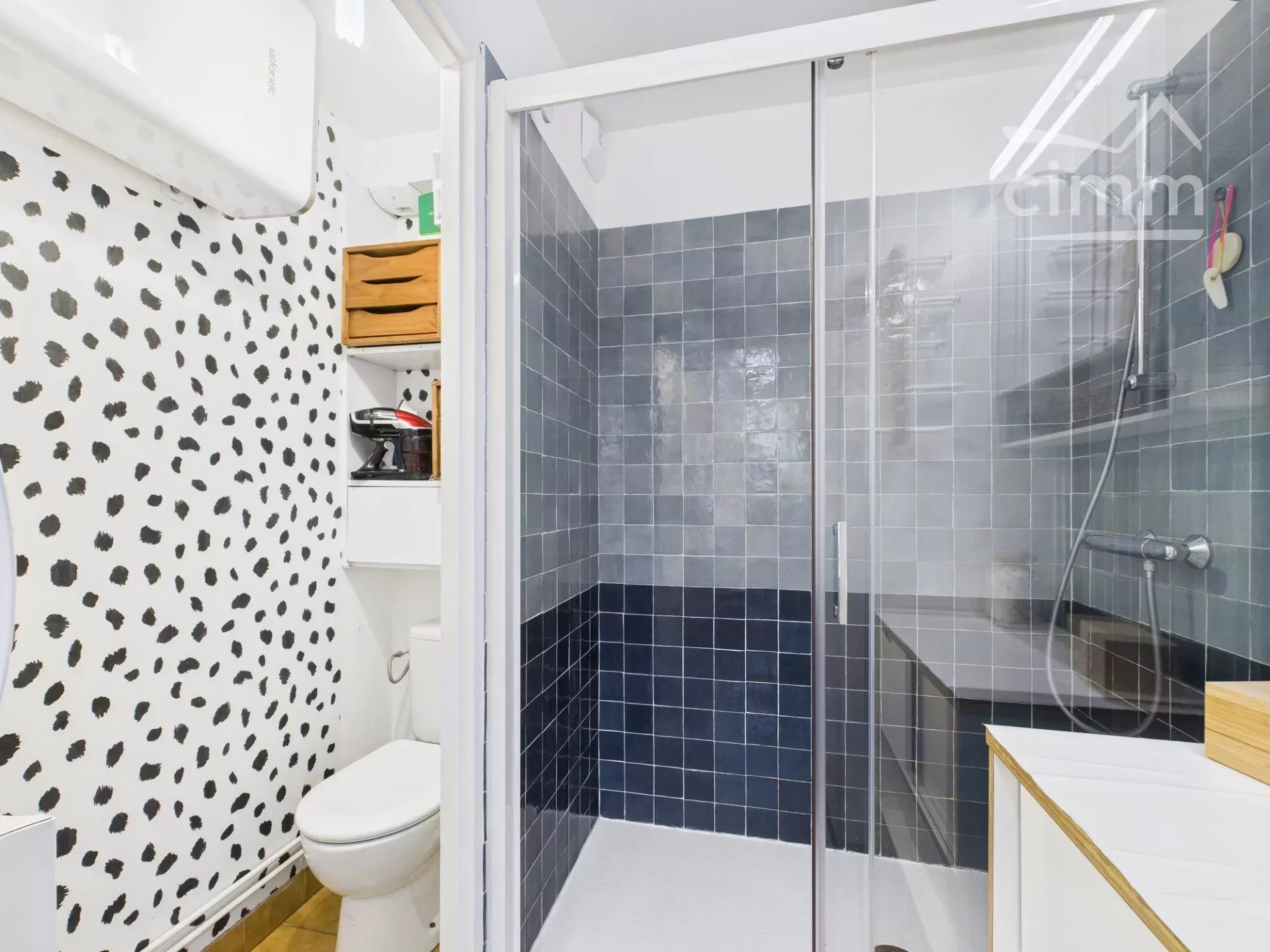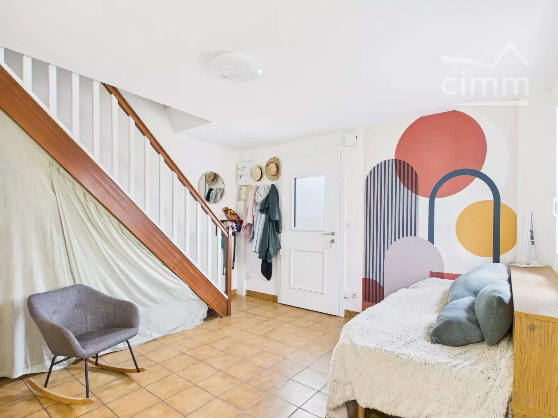 Il dispose en rez-de-chaussée d'une pièce de vie ouverte sur cuisine équipée et aménagée et d'une salle de douche avec WC. A l'étage une chambre avec placard et balcon.