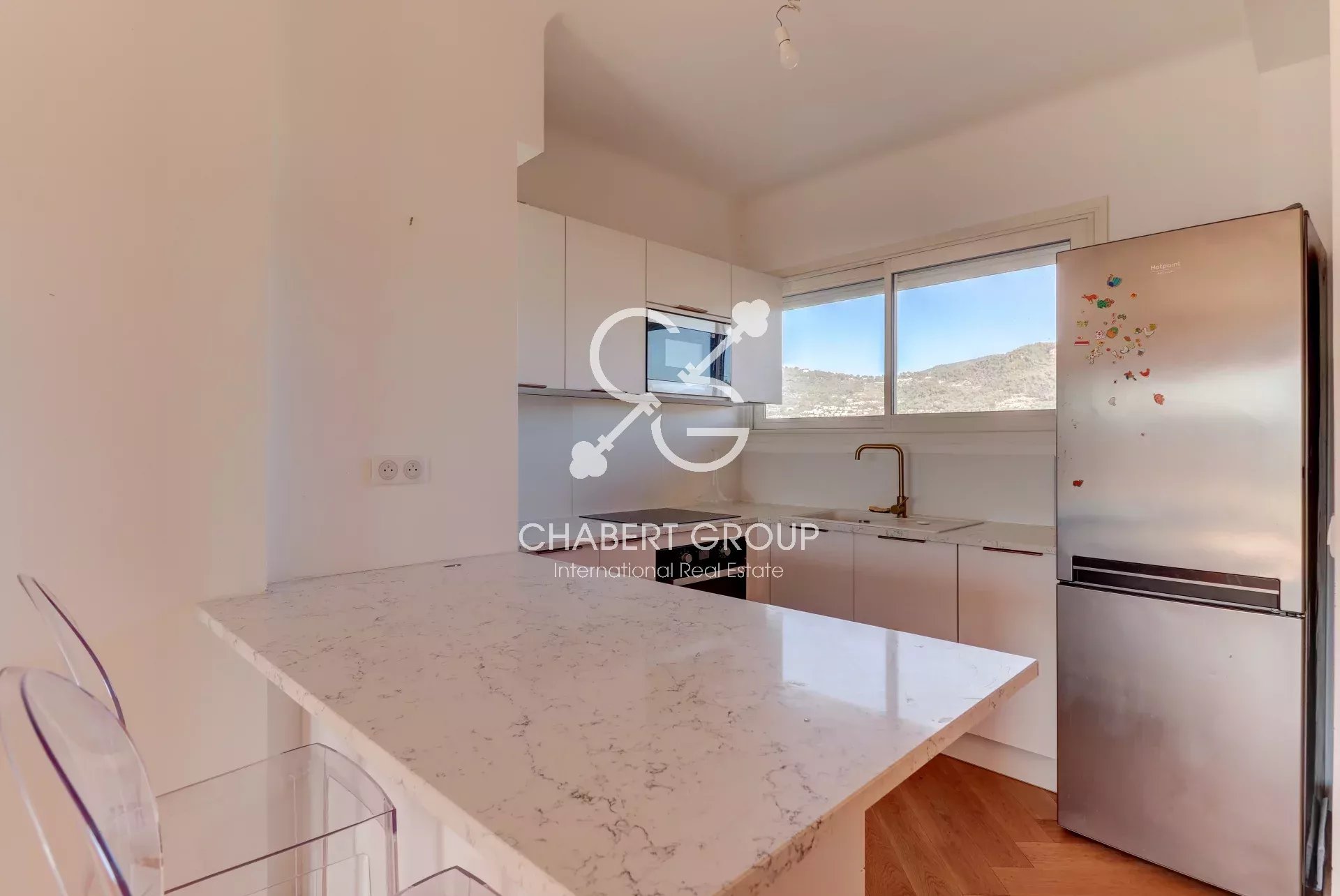 Dans une résidence fermée et entretenue, découvrez ce superbe appartement 3 pièces de 61 m² entièrement rénové en 2023, situé en étage élevé avec ascenseur et profitant d'une grande terrasse de 17 m² et d'une vue panoramique sur la Méditerranée.