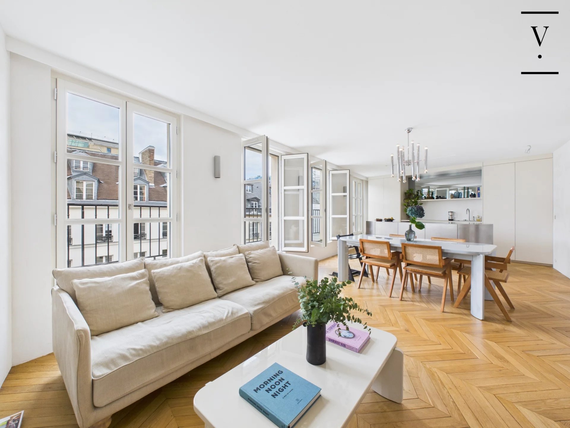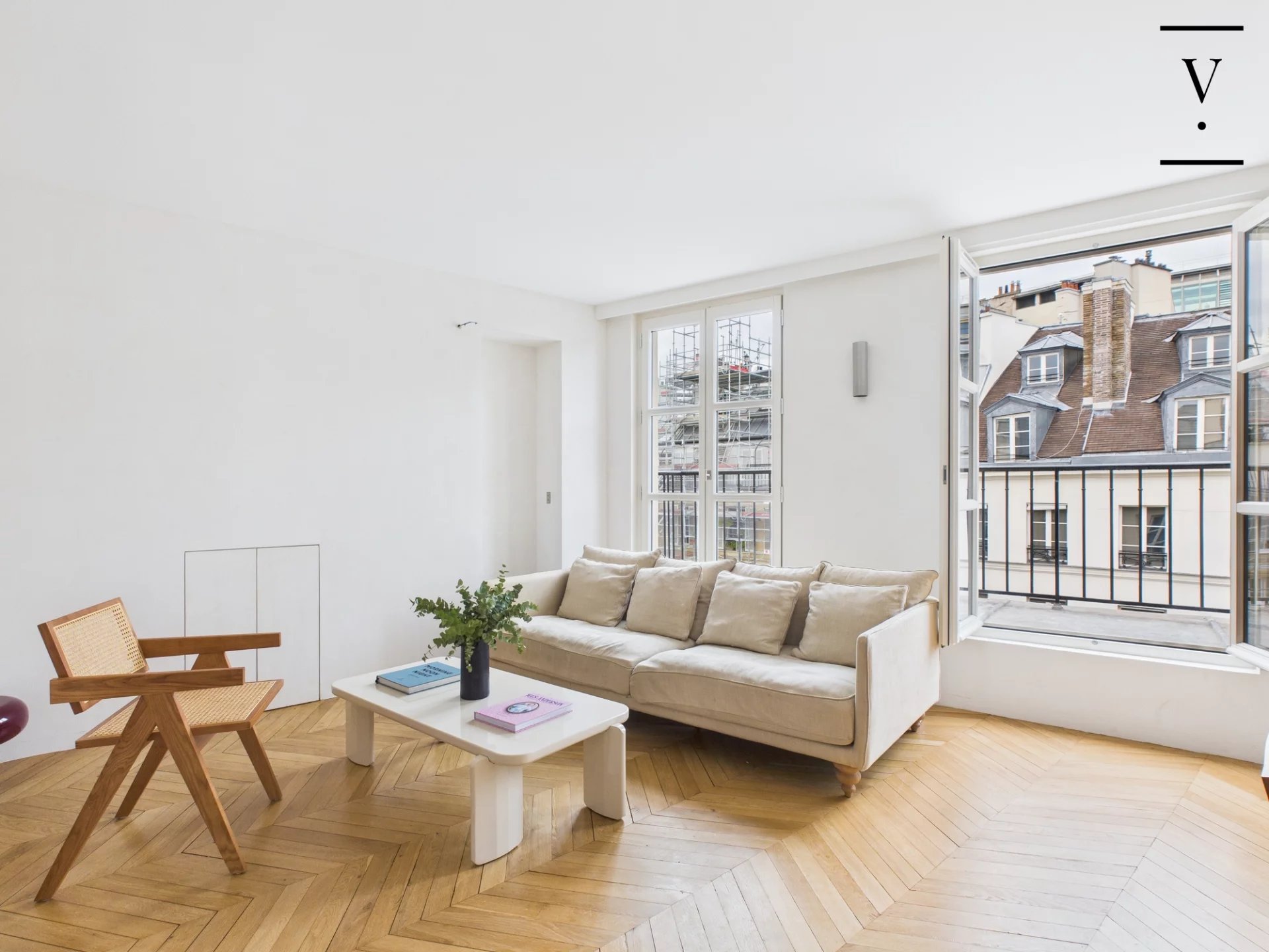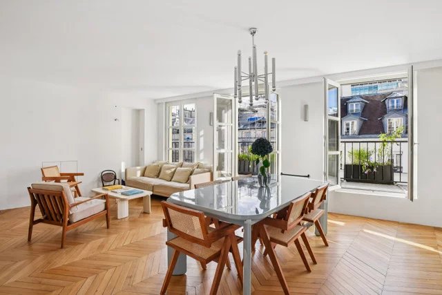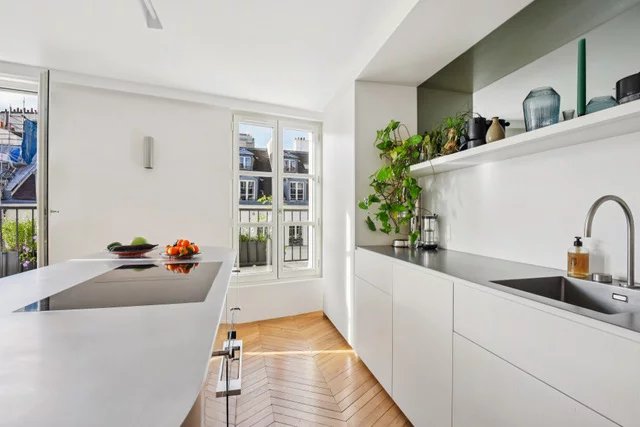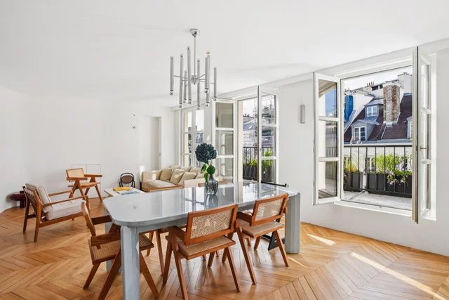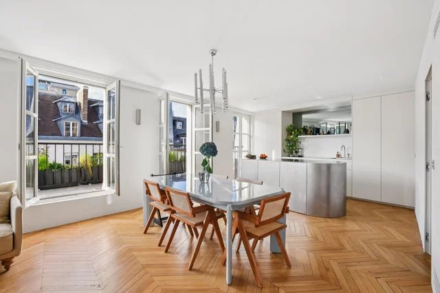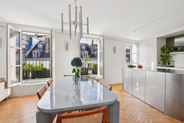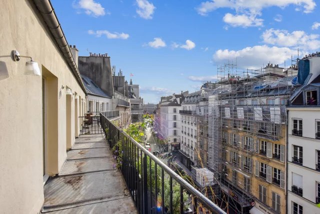 En plein coeur du Marais, dans un bel immeuble ancien récemment ravalé et parties communes en cours de rénovation, appartement climatisé de 3 pièces au 5ème étage par ascenseur. Il se compose d'une entrée avec placards, un grand salon avec cuisine ouverte donnant sur un large balcon terrasse, une chambre avec salle d'eau, une chambre d'enfant avec salle de bains, un grand dressing / buanderie et des toilettes séparées. Appartement entièrement rénové, climatisation, ascenseur neuf, parties communes refaites.