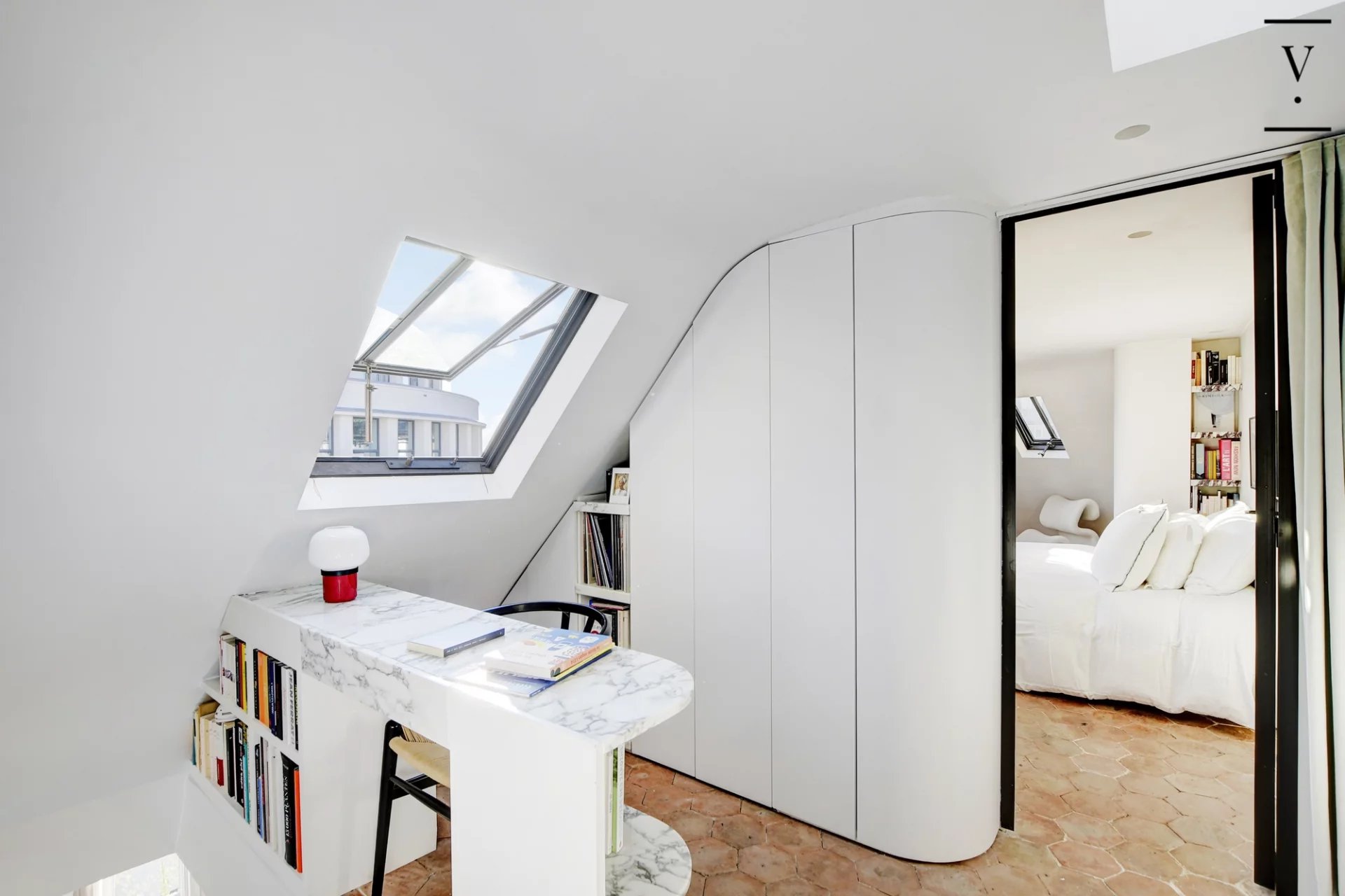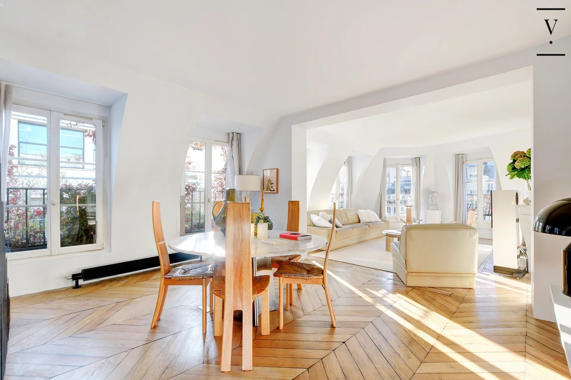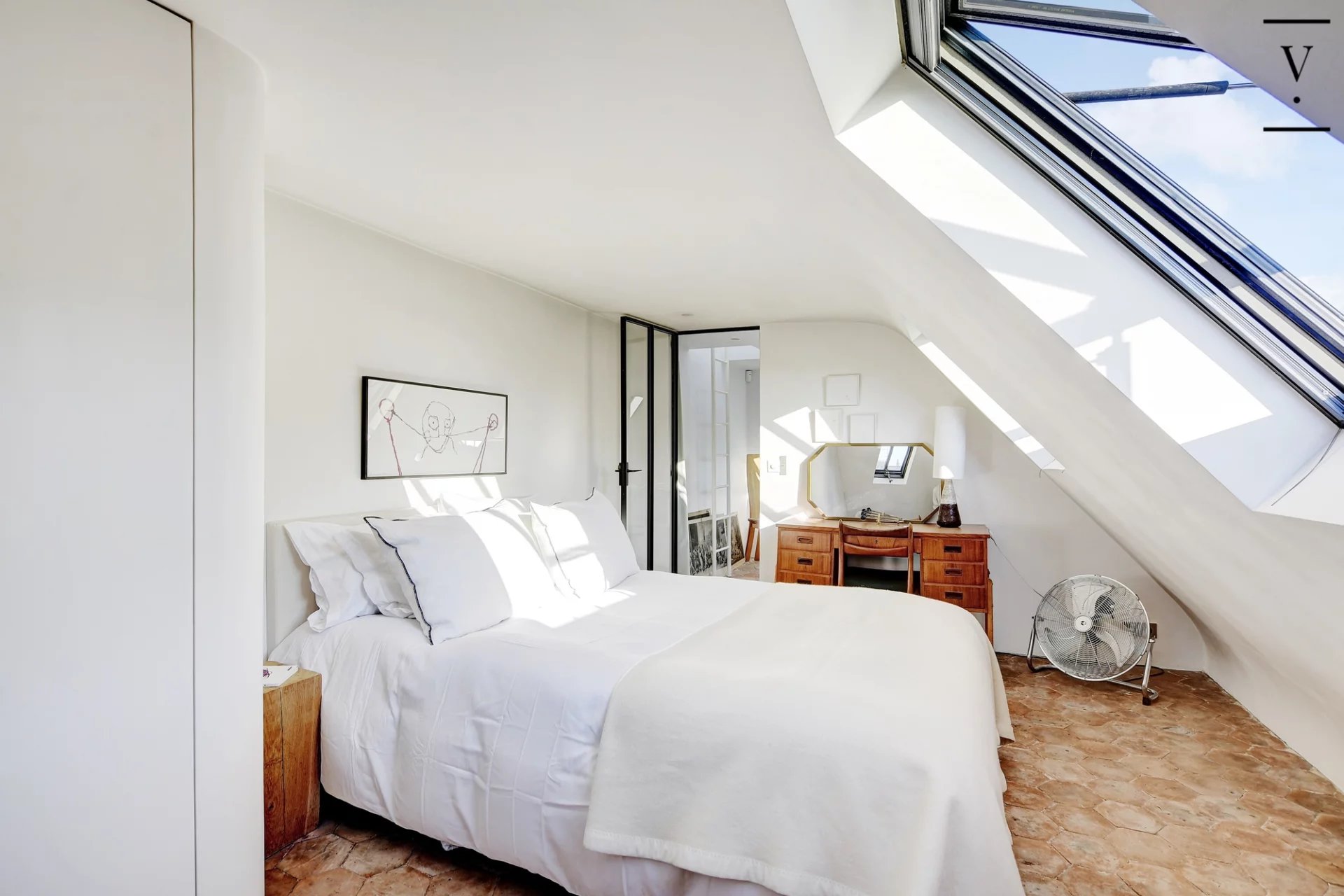 Entre la porte Saint Denis et le quartier des Petites Ecuries. Villaret Immobilier vous propose ce magnifique duplex entièrement rénové par architecte, situé aux derniers étages d'un bel immeuble ancien. D'une surface de 94m2, ce lieu unique se compose d'une entrée, d'un séjour avec cheminée et vues dégagée, profitant d'un agréable balcon, d'une cuisine indépendante, d'une chambre avec des rangements, d'une salle de bains avec toilette et d'une buanderie. A l'étage, un bureau et une chambre. Sublime appartement d'angle, avec vue dégagée, balcon et des prestations de grande qualité. Une chambre de bonne complète ce bien.
