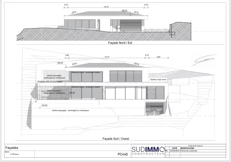 Un devis estimatif établi par un architecte, est disponible pour finaliser la construction de la villa.