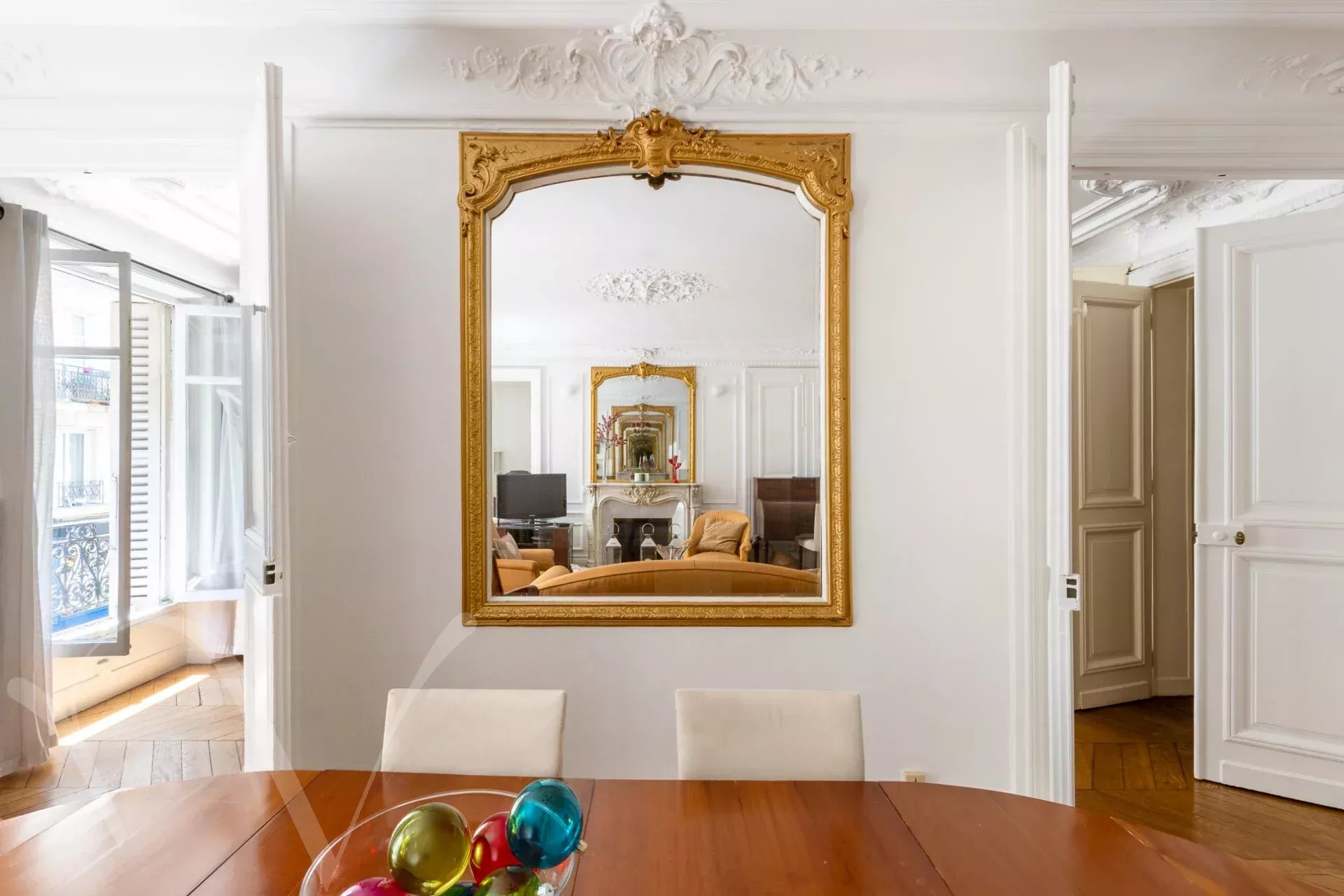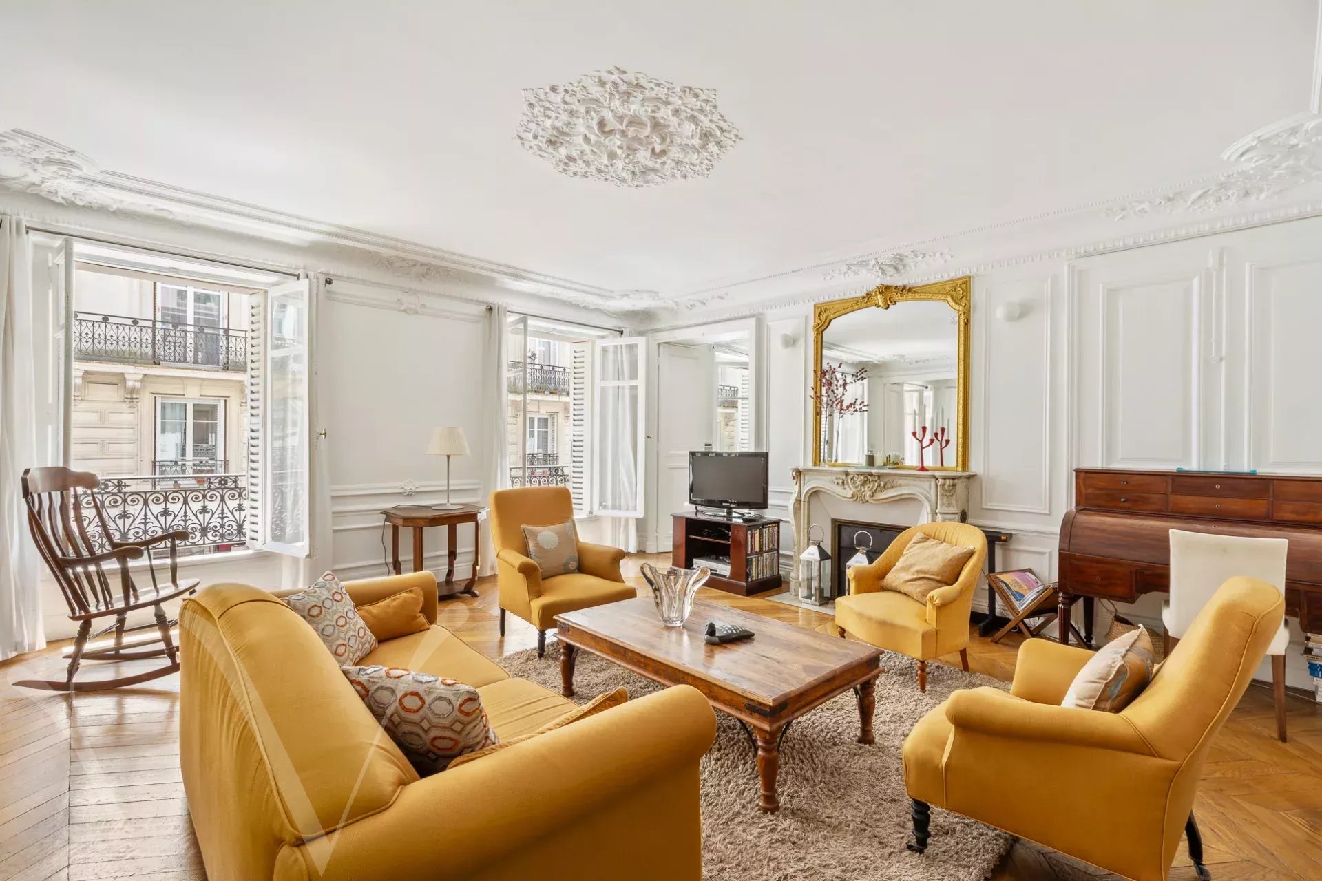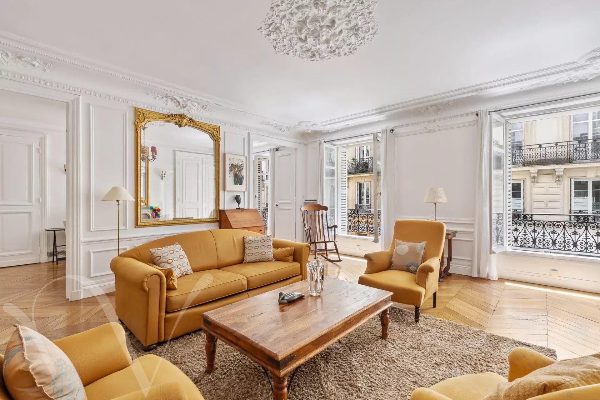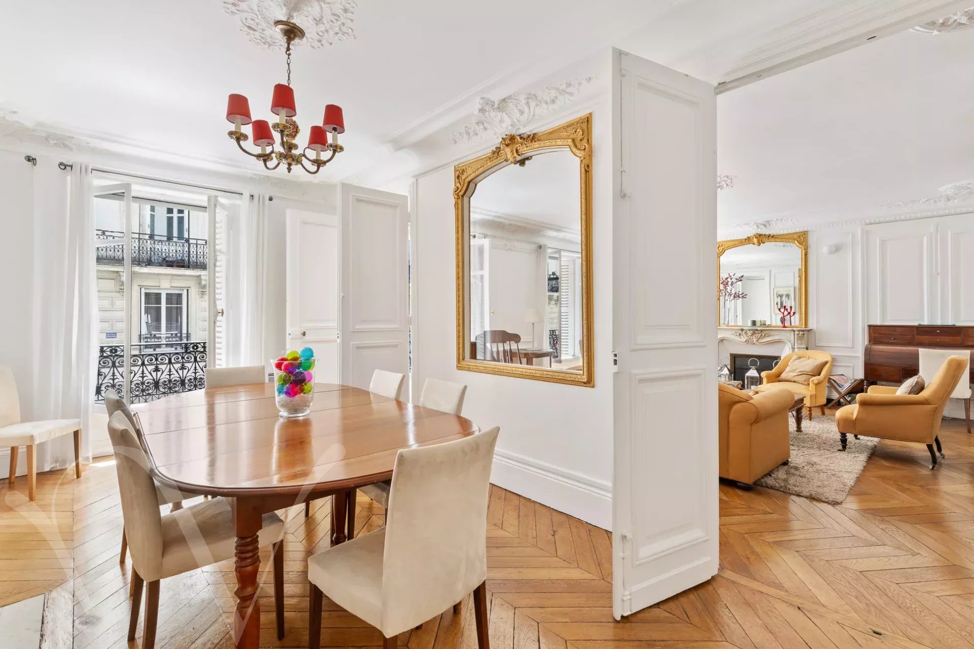 A deux pas de l'avenue Trudaine et de la rue des Martyrs, proche du métro Saint Georges, dans un immeuble haussmannien, un appartement au premier étage accessible par ascenseur de 161,71 m² loi Carrez, il se compose d'une entrée qui dessert en étoile, un salon, une salle à manger, une cuisine avec office, quatre chambres dont deux sur cour, une salle de bains avec toilette, un salle de douche, nombreux placards. Possibilité de créer une autre salle de douche. Appartement en état d'usage, éléments d'origine conservés (parquets, moulures, cheminées).