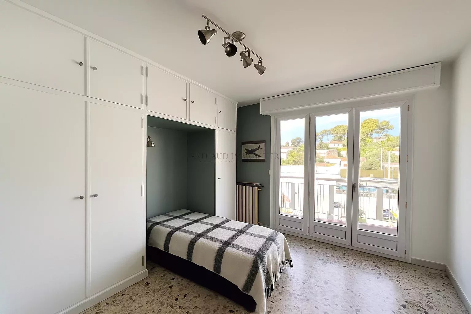 A VENDRE - 4 PIECES AU CANNET SECTEUR COLOMBIER. Appartement traversant situé au 2 ème étage sur 3 avec ascenseur d'un immeuble des années 70. Appartement à rafraichir avec un beau potentiel. Il comprend un Hall d'entrée, 3 chambres avec placard, une cuisine indépendante, une salle de bain, un WC indépendant. Il comprend également une terrasse au SUD et un balcon au Nord. Un parking privé et une cave sont compris. Charge de copropriété mensuelles : 276,66 € par mois comprenant EAU FROIDE, EAU CHAUDE, CHAUFFAGE. Honoraires à la charge du vendeur Les informations sur les risques auxquels ce bien est exposé sont disponibles sur le site Géorisques : georisques.gouv.fr