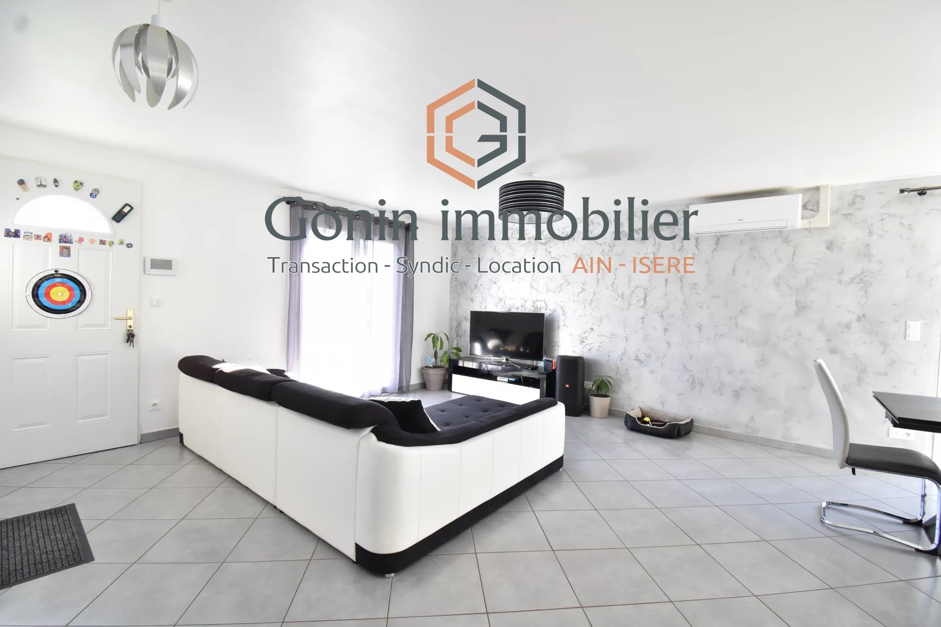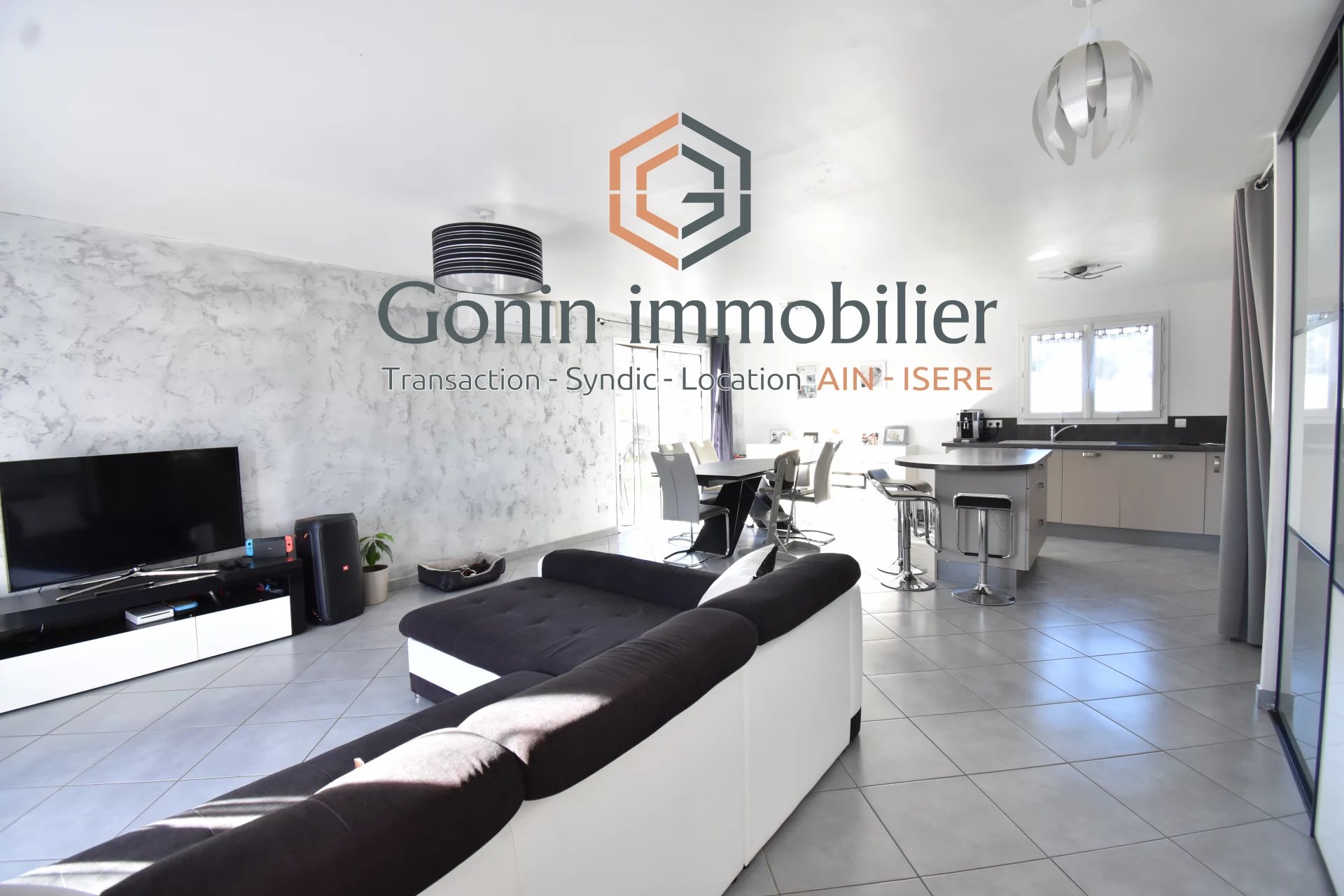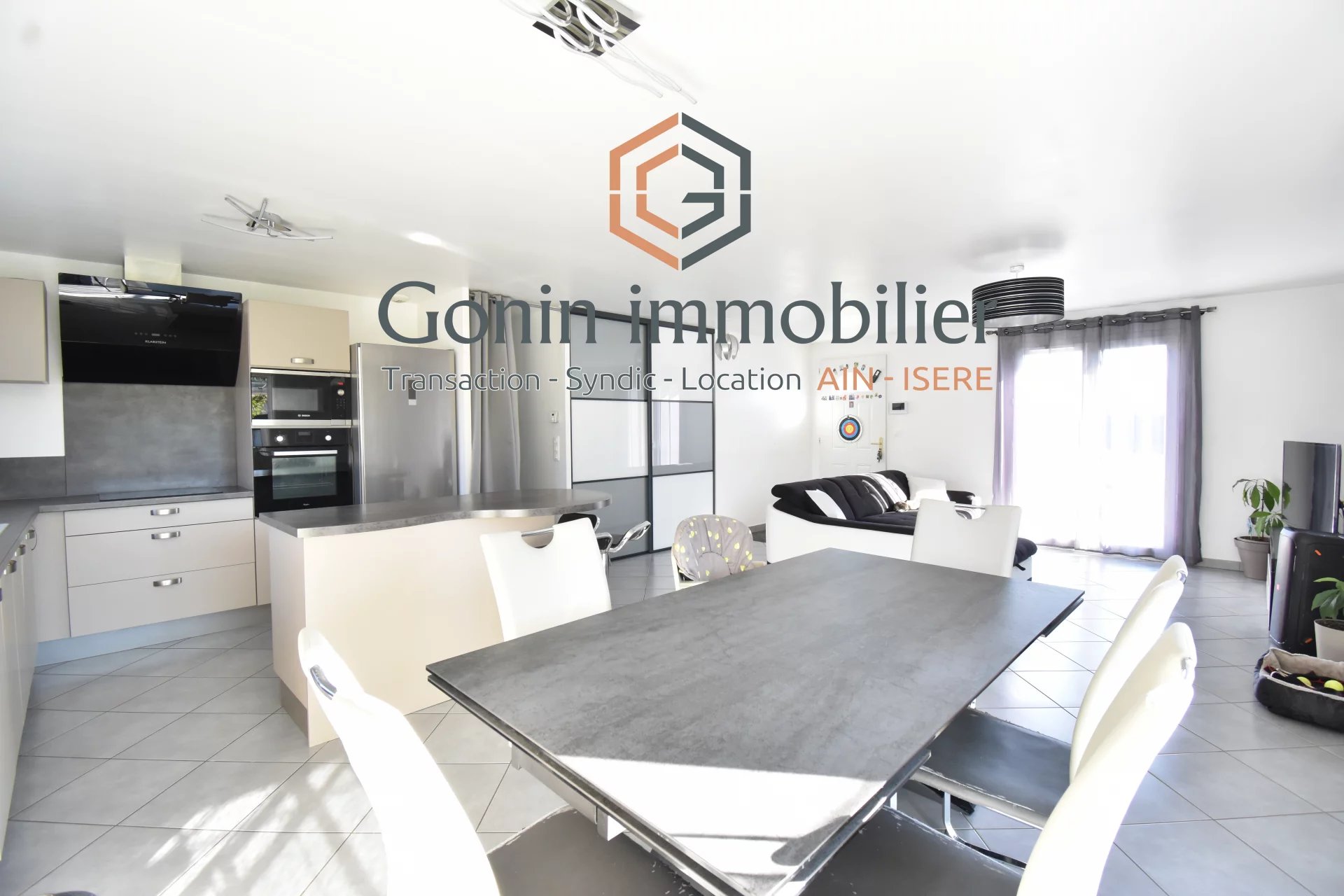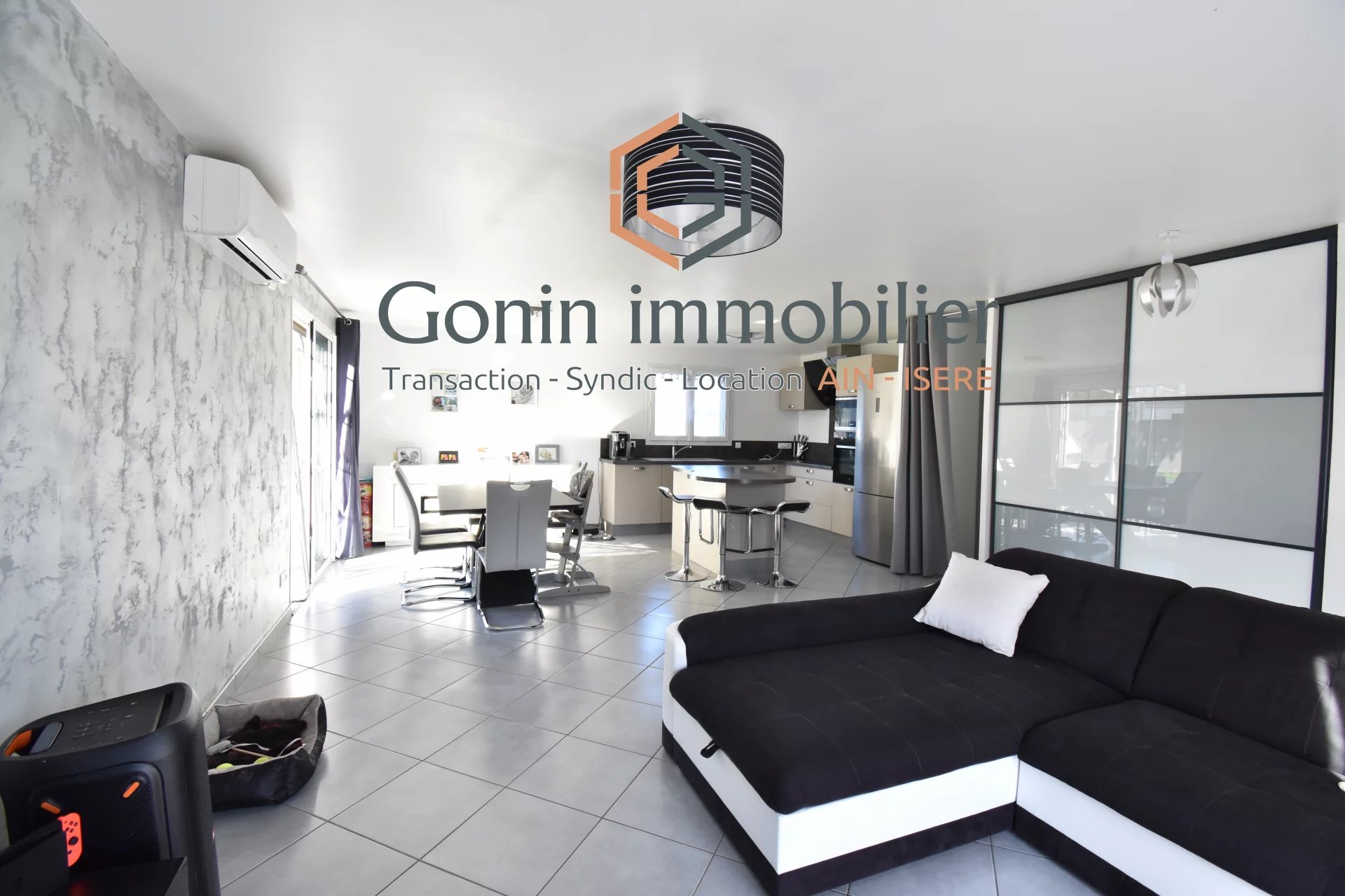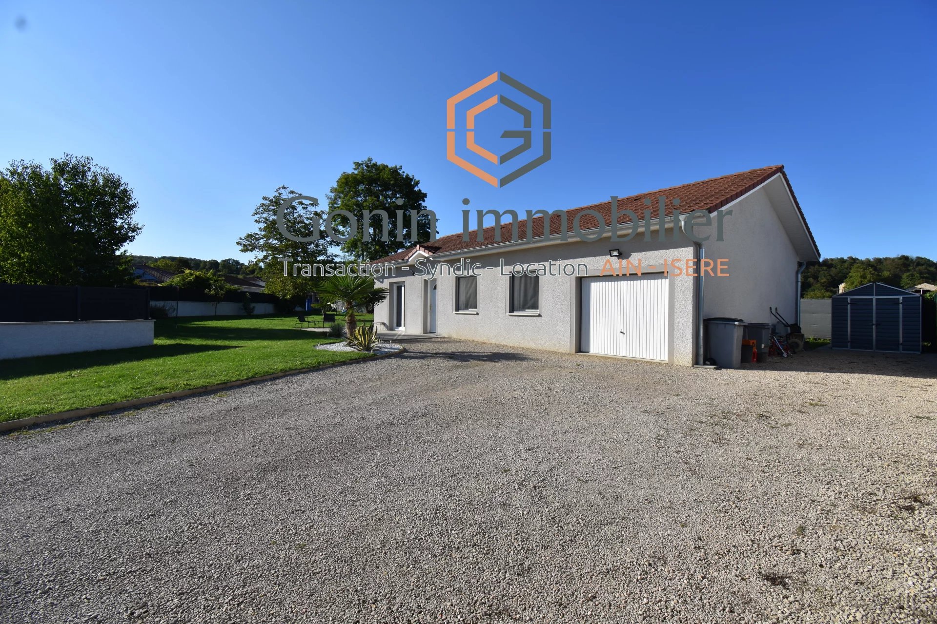 EN EXCLUSIVITE, sur la commmune de Vénerieu: villa de plain-pied de 2016, sur un superbe terrain d'environ 1300 m², entièrement clos et arboré. Cette villa se compose d'une lumineuse pièce de vie de 42 m² avec un grand placard, d'une cuisine équipée, de 3 chambres, d'une salle de bains, d'une buanderie. Garage 1 voiture avec une mezzanine. Le chauffage est assuré par un plancher chauffant (AIR/EAU) avec 2 zones. En complément: climatisation réversible. La grande cour permet de stationner plusieurs véhicules. Les + : l'isolation (DPE en A) et l'état irréprochable de la maison.