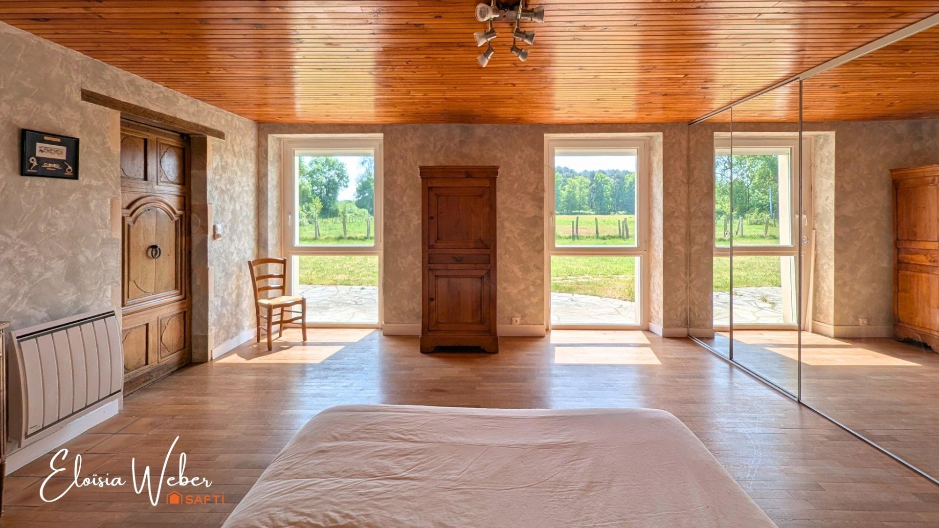 Le rez-de-chaussée, particulièrement lumineux, propose un beau séjour, une grande chambre, une cuisine avec accès à la cave et une salle d'eau avec WC. À l'étage, une mezzanine, trois chambres et une vaste salle d'eau complètent l'ensemble.