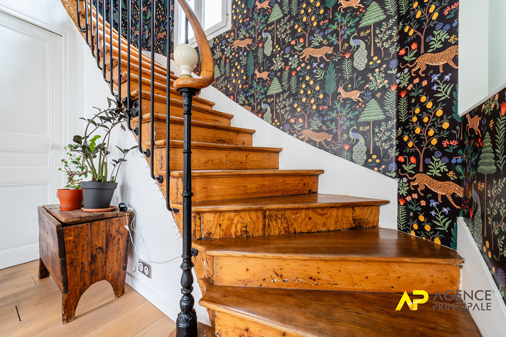 LA GARENNE-COLOMBES : Au fond d'une petite allée verdoyante et discrète, maison 1930 de 118m² habitables (105m² Carrez) hors sous-sol de 30m², édifiée sur une parcelle de 96m² . Jardin avant plein Ouest d'environ 35m². Cette jolie maison entièrement rénovée se situe à proximité des commerces, des transports et des écoles. Elle se compose au rez-de-chaussée d'un double séjour parqueté de 30m² plein ouest, d'une cuisine familiale aménagée, de toilettes séparées; au premier étage : deux chambres et une belle salle de douche avec fenêtre; au deuxième étage : grande chambre en soupente, salle de bains avec toilettes (fenêtre). Un sous-sol total avec chaufferie et espace rangements, salle de jeux/bureau avec un accès direct sur le jardin.