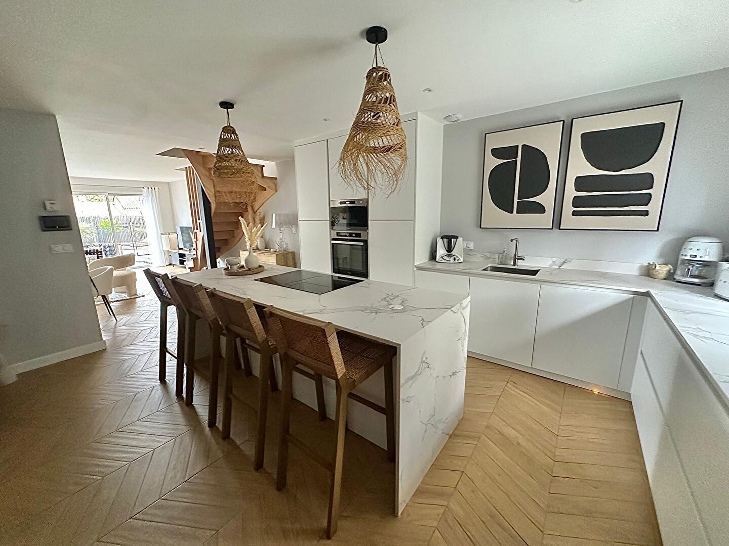 Charmante maison familiale, située à Mérignac Beutre, accès proche rocade, 10 minutes de Mérignac-Soleil, et à 3 min à pied des écoles et commerces. D'une superficie d'environ 125 m², elle offre une pièce de vie lumineuse d'environ 50 m², avec cuisine aménagée et cave à vin. Elle est composée de quatre chambres : deux en rez-de-chaussée avec une salle de bain, et à l'étage, une suite parentale ainsi qu'une chambre supplémentaire. A l'extérieur : jardin paysagé, terrasse ensoleillée, piscine chauffée, et garage isolée et vitre atelier aménageable en bureau indépendant. Possibilité de stationner sur la parcelle. Maison soigneusement entretenue, aucun travaux à prévoir, prête à accueillir votre famille ! DPE : A et GES : A Honoraires à la charge de l'acquéreur à hauteur de 1.05% du prix (soit 474 000 euros hors honoraires). + 1.05 % honoraires de négociation TTC. MAEVA MEDIAVILLA (EI) Agent Commercial - Numéro RSAC : 801063009 - BORDEAUX.