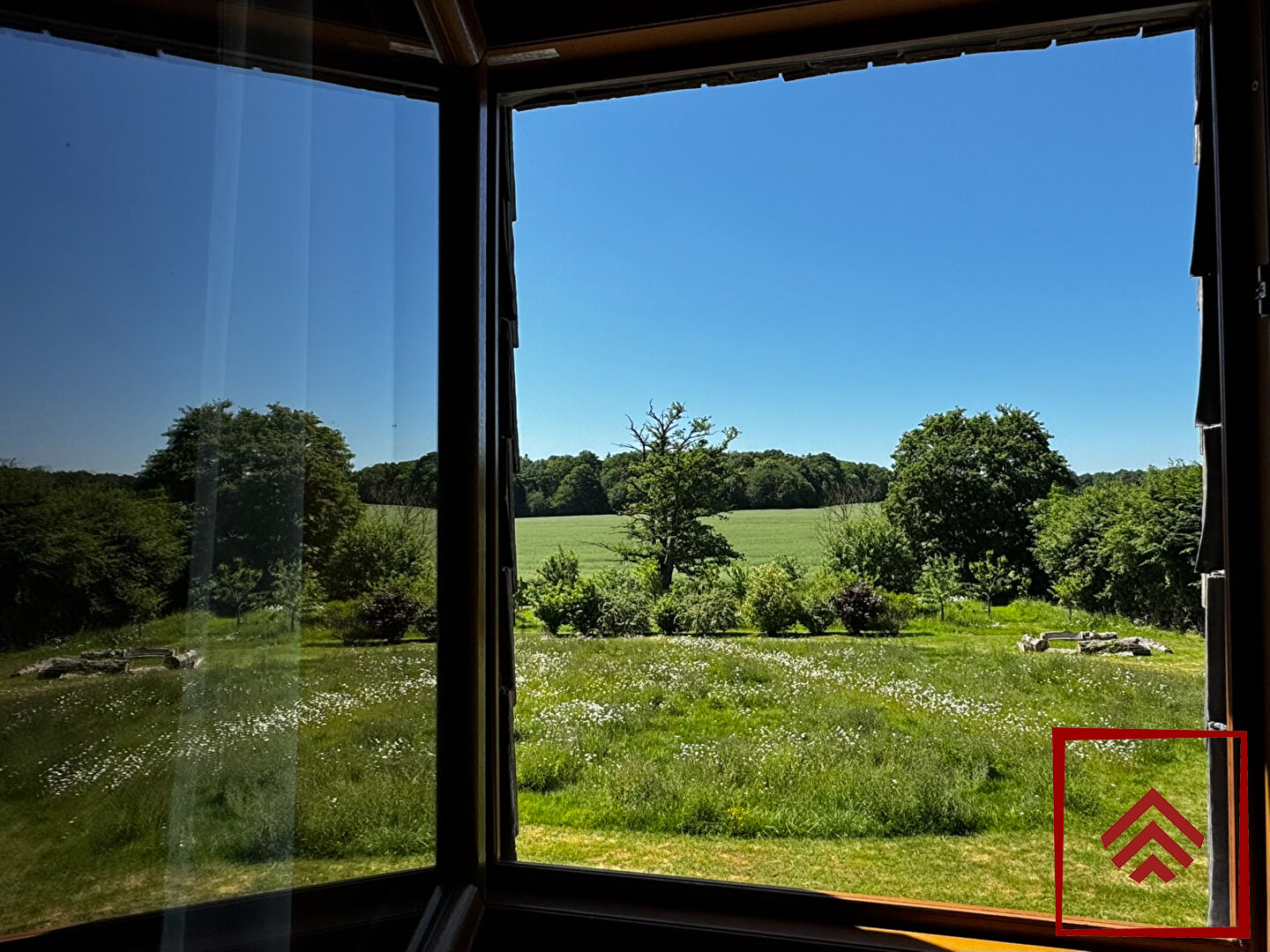 Demeures du Perche et de Normandie vous dévoile « Lueur Verte », une authentique maison normande située à proximité de la forêt domaniale du Perche. Cette maison pleine de charme incarne l'art de vivre normand, mêlant caractère, confort et un panorama exceptionnel sur la campagne verdoyante. Le rez-de-chaussée offre un premier espace de vie organisé autour d'une cuisine aménagée/équipée et d'un petit salon. A la suite, un salon/salle à manger baigné de lumière, dialogue avec la nature avec sa grande baie vitrée qui se prolonge d'une terrasse orientée sud-ouest, idéale pour profiter pleinement du soleil couchant sur la campagne environnante. Une chambre, une salle d'eau et une buanderie avec toilettes offrent à cette demeure le confort d'une vie de plain-pied. L'étage propose deux grandes chambres et un petit dressing. Positionné en équerre et détaché de la maison d'habitation, un grand garage de 30 m² facilement aménageable. L'ensemble s'ouvre sur un grand jardin où trône un chêne séculaire et offre de magnifiques vues sur une campagne généreuse et apaisante. LES ESSENTIELS Terrain clos et paysager de 7 200 m² avec prairie et arbres fruitiers. Garage 145 m² (118 au DPE) , 3 chambres, vie de plain-pied Chauffage gaz Taxe foncière : 1 230 euros 10 minutes en voiture de la gare (Gare de l'Aigle, ligne Paris Montparnasse - Granville) 10 minutes des écoles, services et commerces 22 minutes de Mortagne-au-Perche Paris est à 2 heures, Deauville, Trouville et Caen sont à 1 h 30. Vous souhaitez obtenir plus d'informations pour cette ensemble de charme, contactez nous au 02.33.25.25.44 « Les informations sur les risques auxquels ce bien est exposé sont disponibles sur le site : www.georisques.gouv.fr » (6.00 % honoraires TTC à la charge de l'acquéreur.)