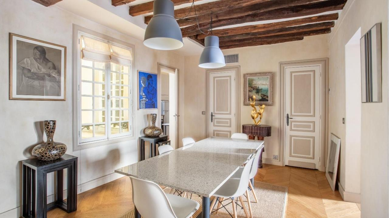 Marais Au troisieme étage avec ascenseur d'un immeuble ancien du XVIIIe siècle , charmant appartement d'une superficie de 70 m². Il se compose d'une entrée donnant sur une salle à manger attenante à une cuisine séparée, un salon lumineux sur rue d'une superficie de 24m² avec poutres apparentes, une chambre avec de nombreux rangements et placards, une salle d'eau et un toilette séparé. Appartement avec beaucoup de charme en très bon état général, travaux de qualités, plan optimisé (pas de perte d'espace), beaux volumes, climatisation, parquets, cheminées, vue dégagée et lumineux. Copropriété bien entretenu et sécurisé. Une cave complète ce bien. Copropriété de 15 lots d'habitations Charges : 316 Euros/Mois Honoraires charge acquéreur Les informations sur les risques auxquels ce bien est exposé sont disponibles sur le site Géorisques : www.georisques.gouv.fr (4.55 % honoraires TTC à la charge de l'acquéreur.) Copropriété de 10 lots (Pas de procédure en cours). Charges annuelles : 10 euros.