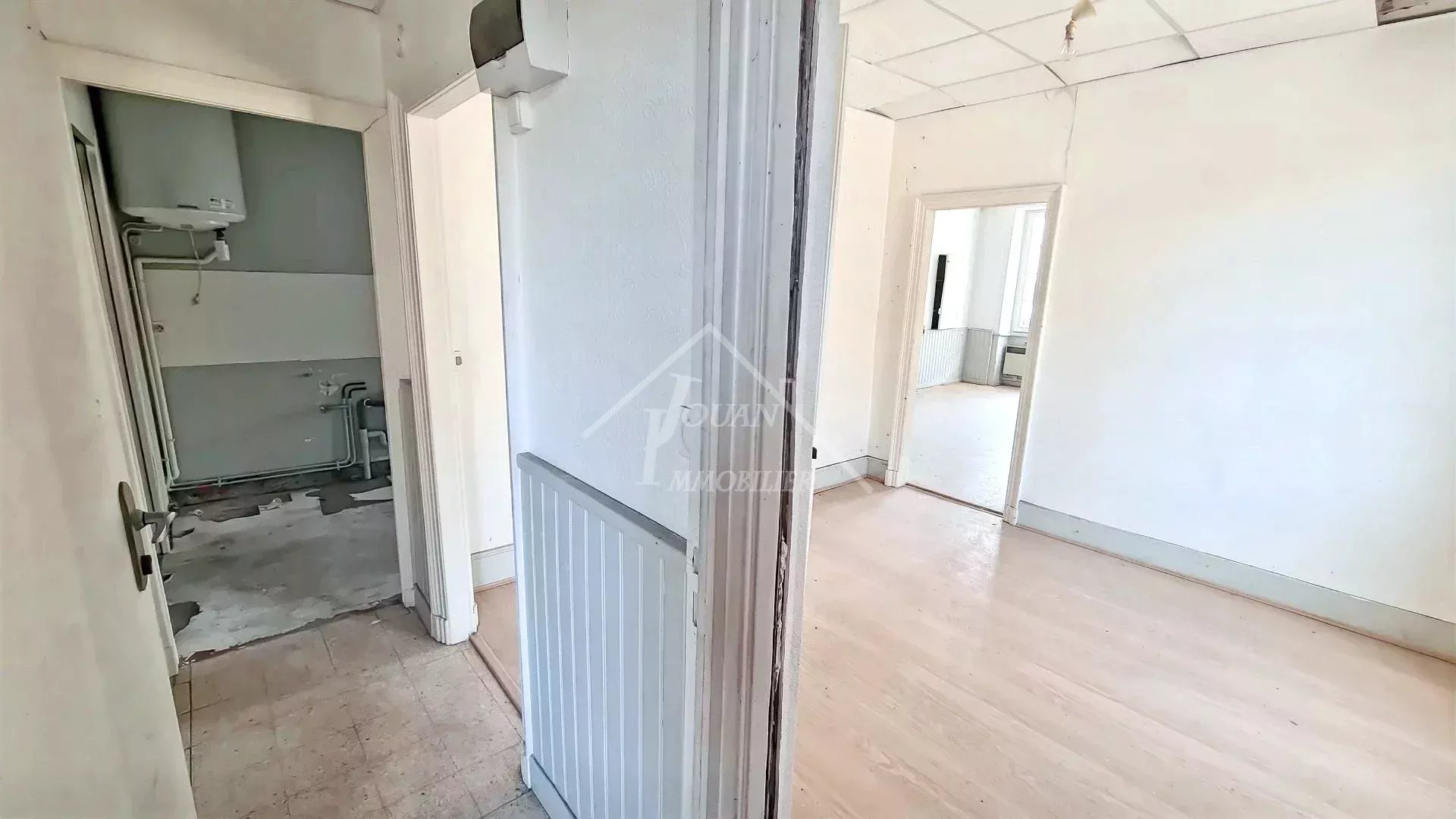 À Bourbon-l’Archambault, ville thermale, se situe cet immeuble au cœur du centre-ville, à seulement 650 mètres des Thermes. L’immeuble est entièrement à rénover à l’intérieur. Son potentiel est le suivant : 1 appartement de plain-pied d’environ 50 m², avec salle d’eau et toilettes. 2 appartements au 1er étage d’environ 50 à 55 m² chacun (selon l’aménagement), disposant chacun de leur salle d’eau et toilettes. Un grenier non aménagé, couvrant toute la surface de la maison. Un garage pouvant accueillir 1 à 2 voitures, ainsi qu’un atelier ou un local pour les poubelles. DPE: E Nous sommes à votre disposition, n'hésitez pas à nous contacter pour plus de renseignements et ou planifier une visite! Les informations sur les risques auxquels ce bien est exposé sont disponibles sur le site Géorisques: www.georisques.gouv.fr