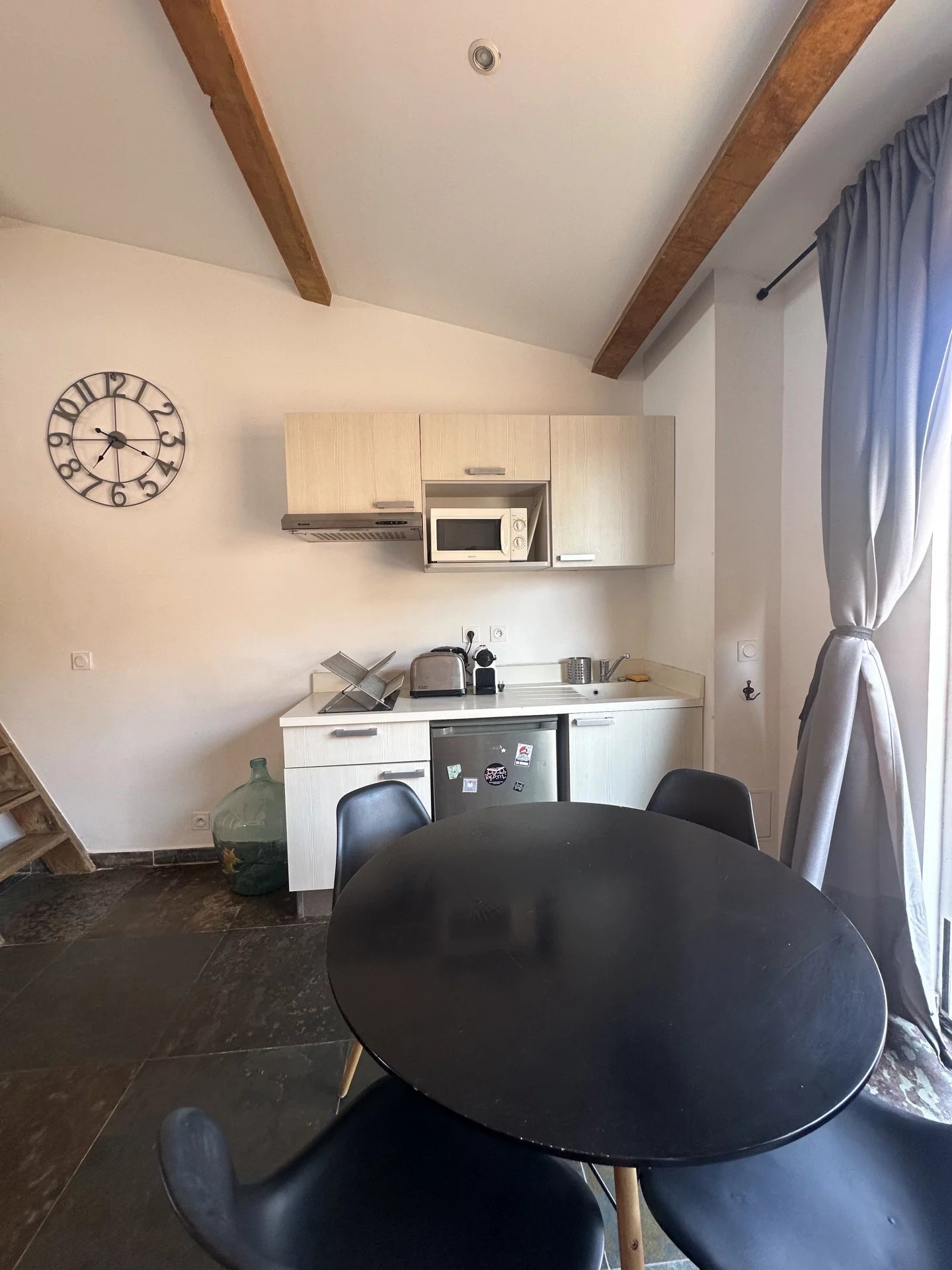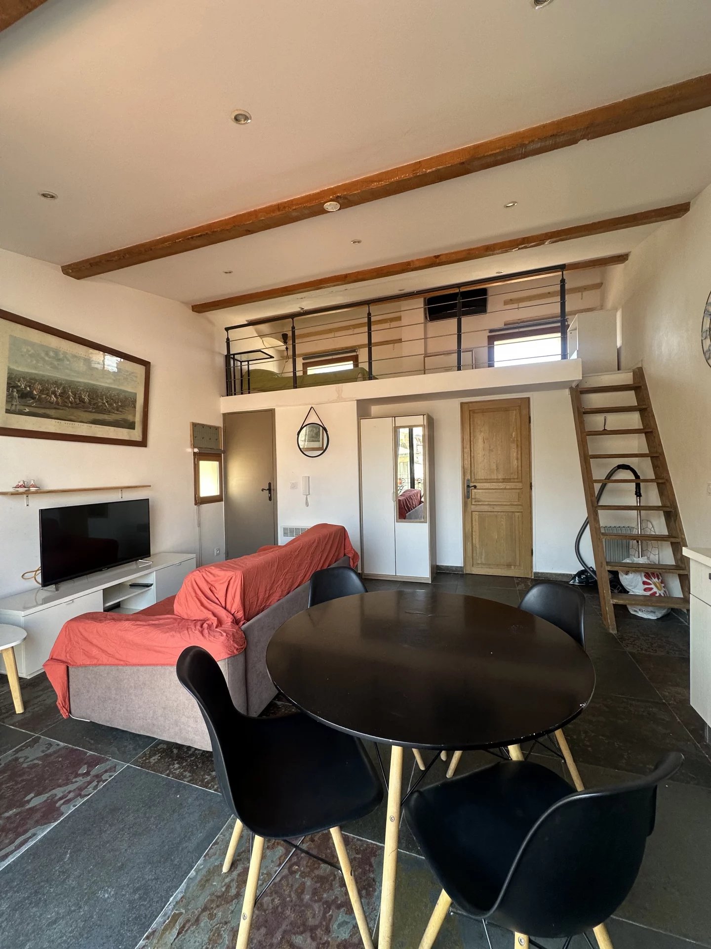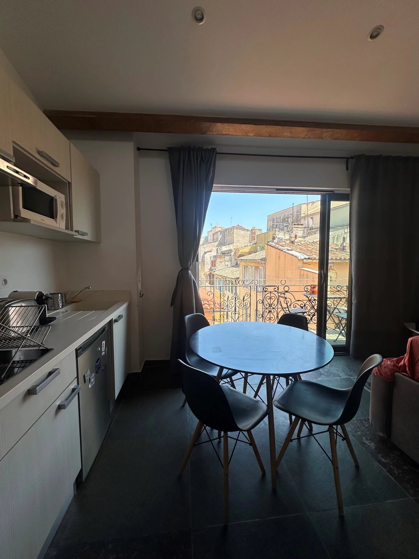 Au cœur du PANIER, dans un immeuble marseillais bien entretenu se trouve au 4 ème et dernier étage un joli T2 en duplex avec balcon, entièrement meublé et équipé. Il se compose d'une cuisine ouverte sur une pièce à vivre, une chambre en duplex, une salle d'eau (douche italienne), d'un WC séparé et d'un balcon. A proximité immédiates des commerces et des transports en communs (Métro et tramway à moins de 10 minutes à pied).