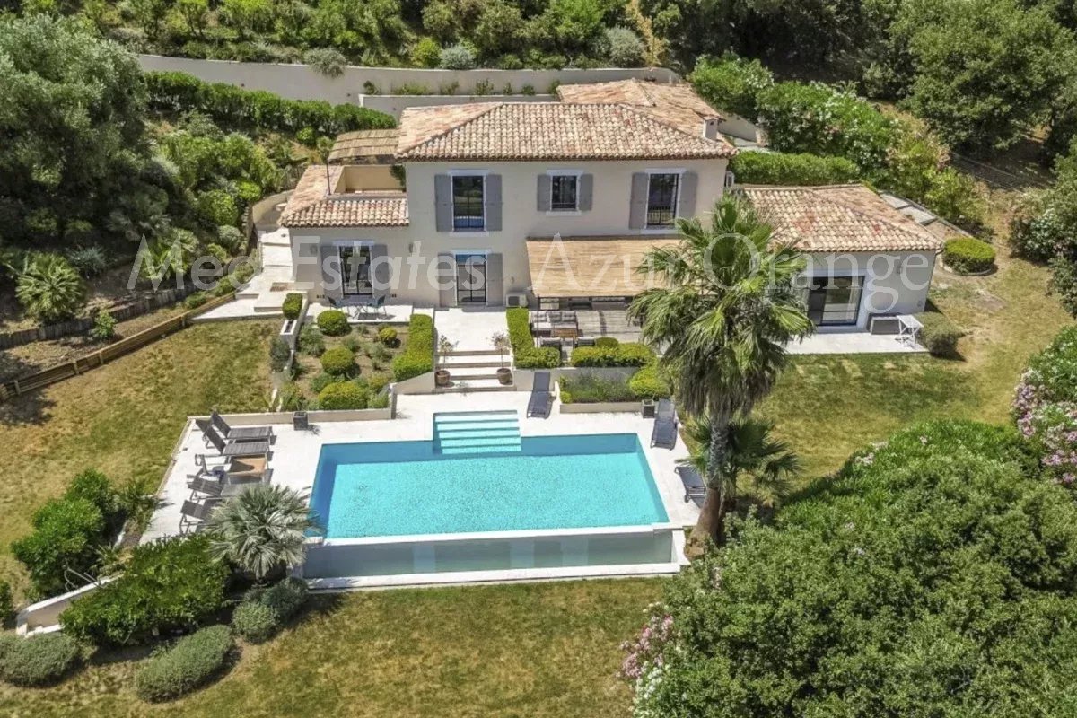 Cette propriété bénéficie d'un emplacement idéal : dans un domaine sécurisé et recherché avec des courts de tennis, dans un environnement absolument calme, à proximité du village (accessible à pied) et des plages / du port de plaisance de Grimaud (7 minutes) ; Saint-Tropez et les plages de sable blanc de Pampelonne sont facilement accessibles (+/- 20-25 minutes).