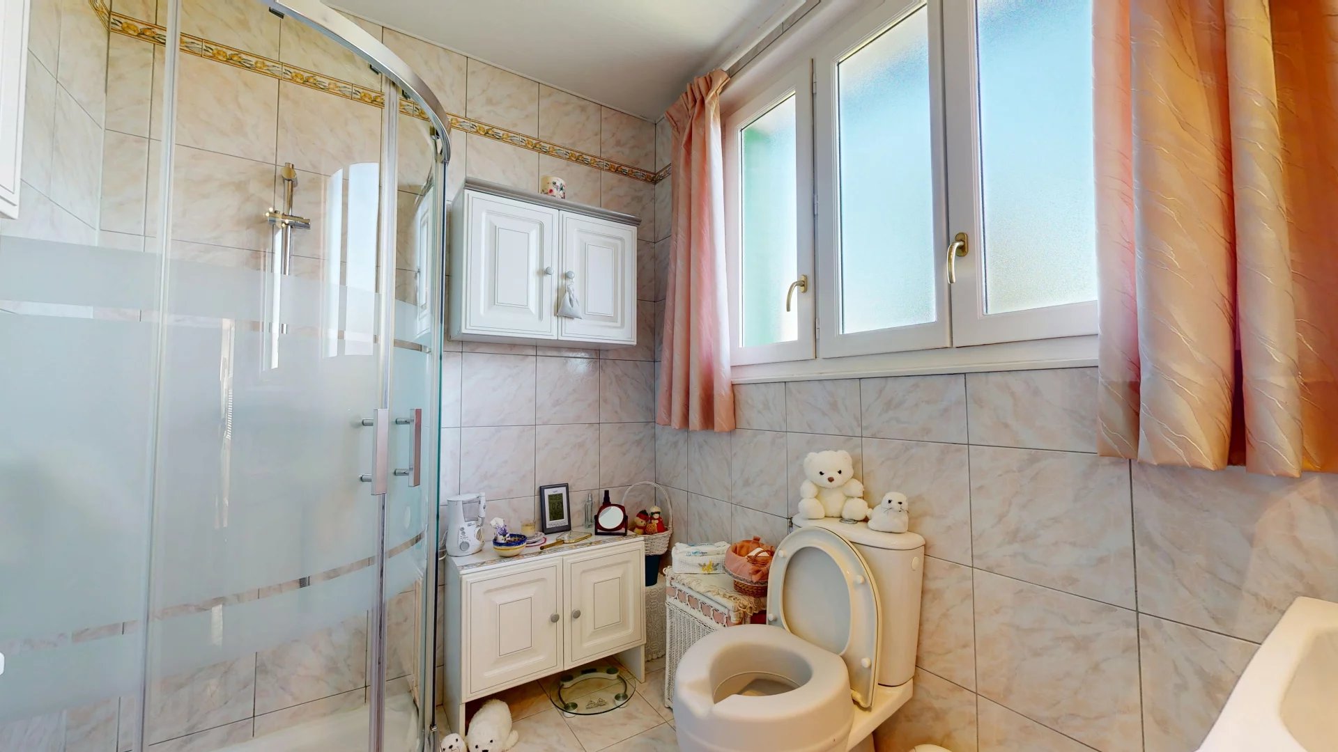À l’étage : deux chambres, salle de douche, ainsi qu’une seconde salle de bains spacieuse avec WC.