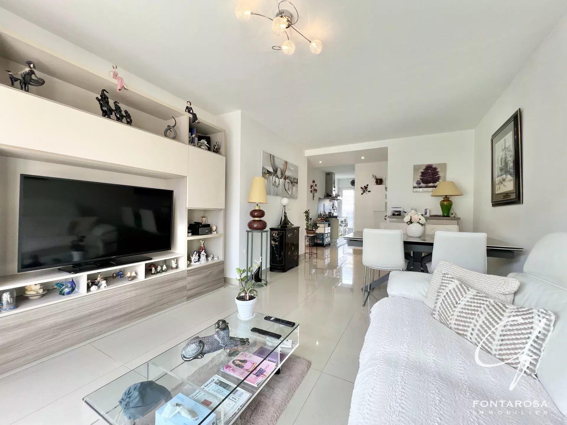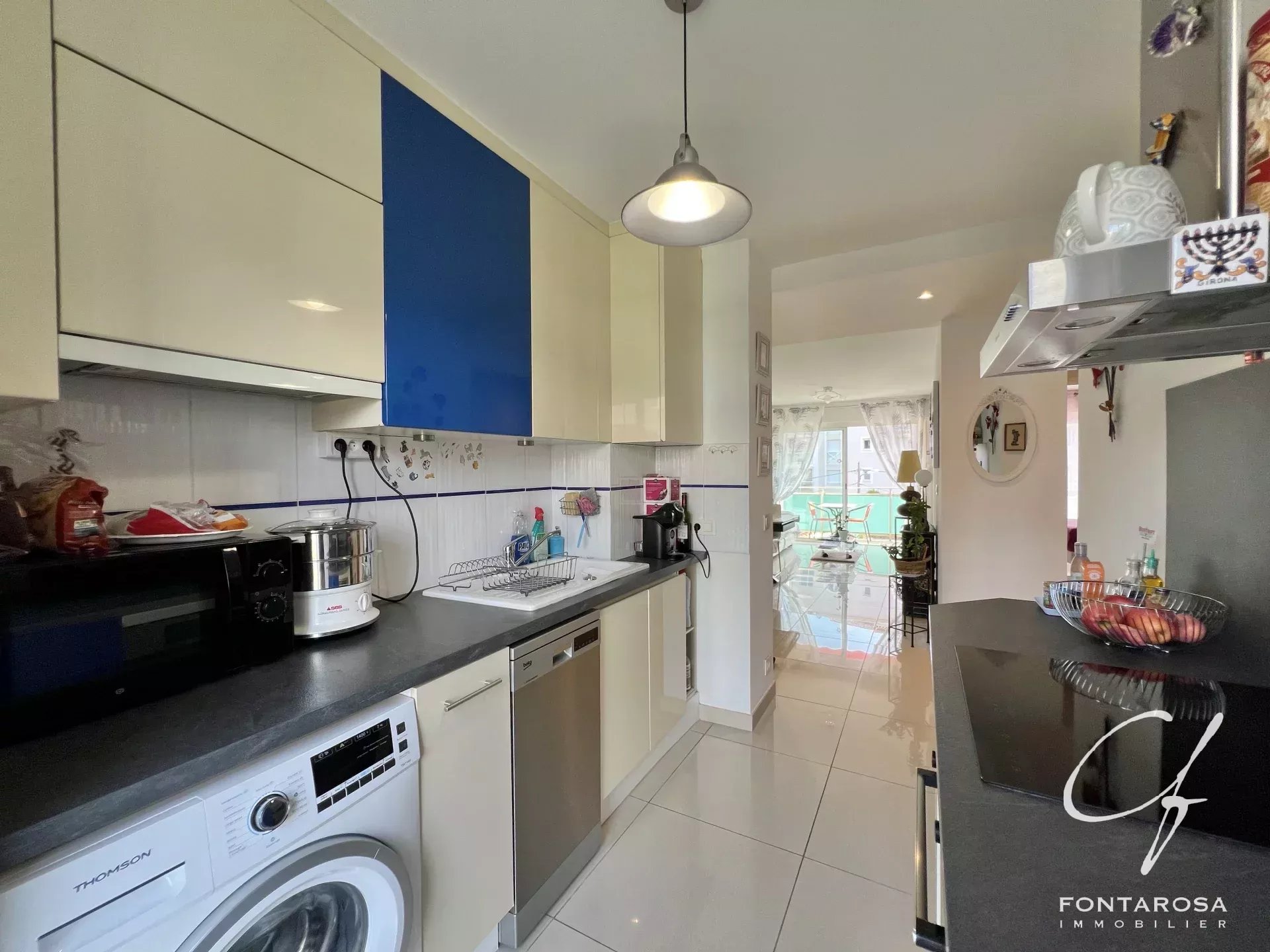 A soli 5 minuti a piedi dal centro città e vicino al mare, questo trilocale con vista passante gode di una posizione privilegiata e tranquilla in un residence sicuro.