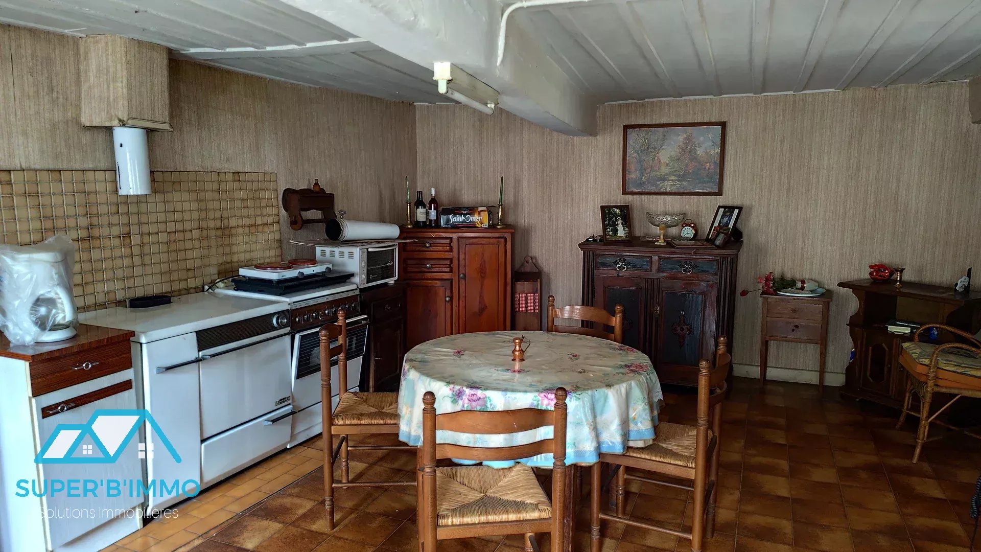 Un conduit de cheminée dans la cuisine peut accueillir un poêle.