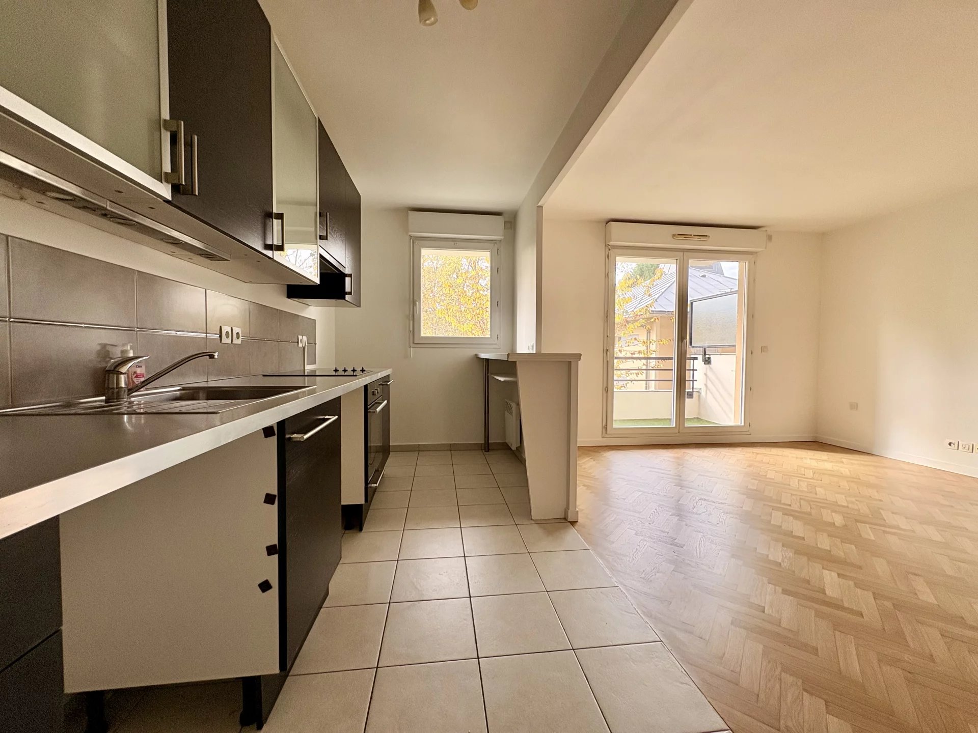 Il se compose d’une entrée, d’un séjour lumineux avec accès à une cuisine ouverte aménagée et équipée, ainsi qu’à un balcon exposé Sud-Ouest offrant une agréable vue sur le jardin.
