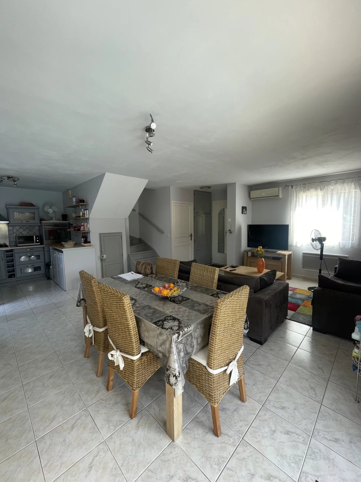 -Au rez-de-chaussée, vous trouverez un espace salon/séjour ouvert sur la terrasse ainsi qu'une cuisine ouverte aménagée et équipée et un WC indépendant.