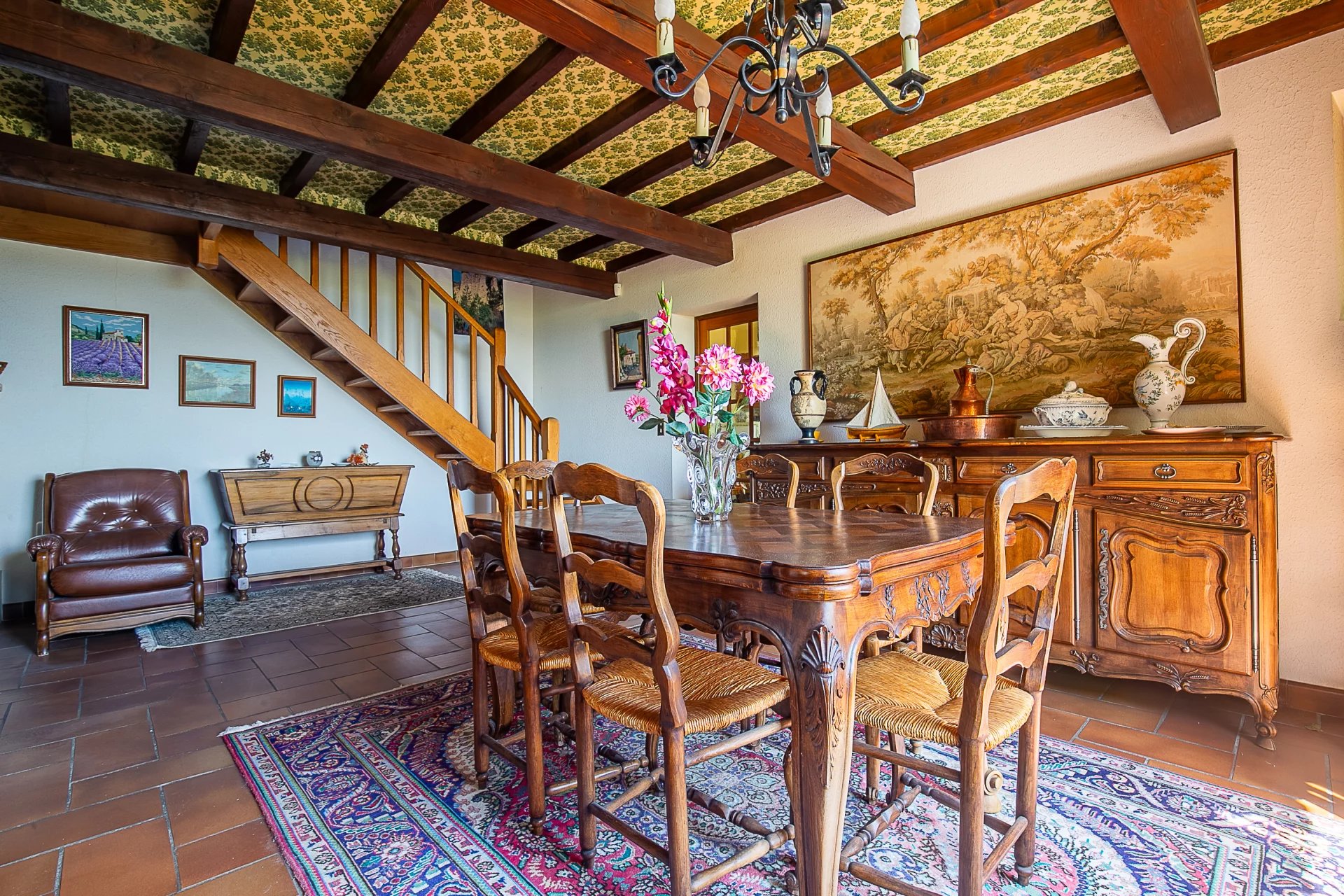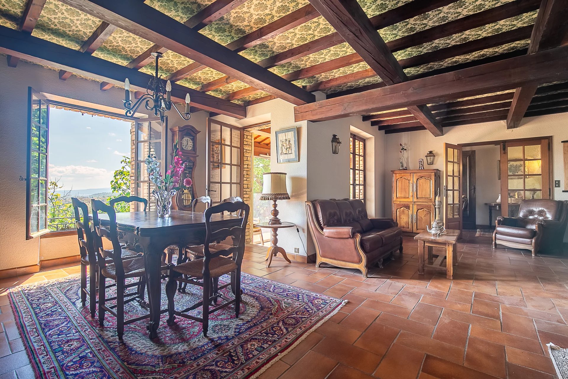 Teramata vous propose à la vente cette bastide provençale de charme d’environ 200 m², nichée sur les hauteurs de Manosque, dans un environnement calme et verdoyant, avec une vue imprenable sur la ville et les collines environnantes. La maison se compose en rez-de-chaussée d’un vaste salon lumineux de 40 m² exposé plein sud avec cheminée à insert, d’une cuisine indépendante à moderniser, ouverte sur une buanderie/arrière-cuisine, ainsi que de deux grandes chambres et une salle de bains. À l’étage, vous trouverez une belle suite parentale avec salle d’eau, dressings et rangements, profitant d’une vue dégagée sur le mont d’Or. Une quatrième chambre peut facilement être aménagée à ce niveau. Le terrain arboré de plus de 4 000 m² est agrémenté d’oliviers, d’un grand pool house, d’une piscine 8x4 m exposée plein sud sans vis-à-vis, ainsi que d’un garage attenant, d’un abri voiture, de plusieurs stationnements, de l’eau du canal et d’un système d’arrosage automatique. Située dans le secteur recherché du Pain de Sucre, à proximité du centre-ville. Cette propriété bénéficie d’un terrain en zone constructible avec possibilité de division parcellaire. Des travaux de rénovation sont à prévoir, mais l’ensemble offre un cadre de vie exceptionnel et un fort potentiel d’évolution.