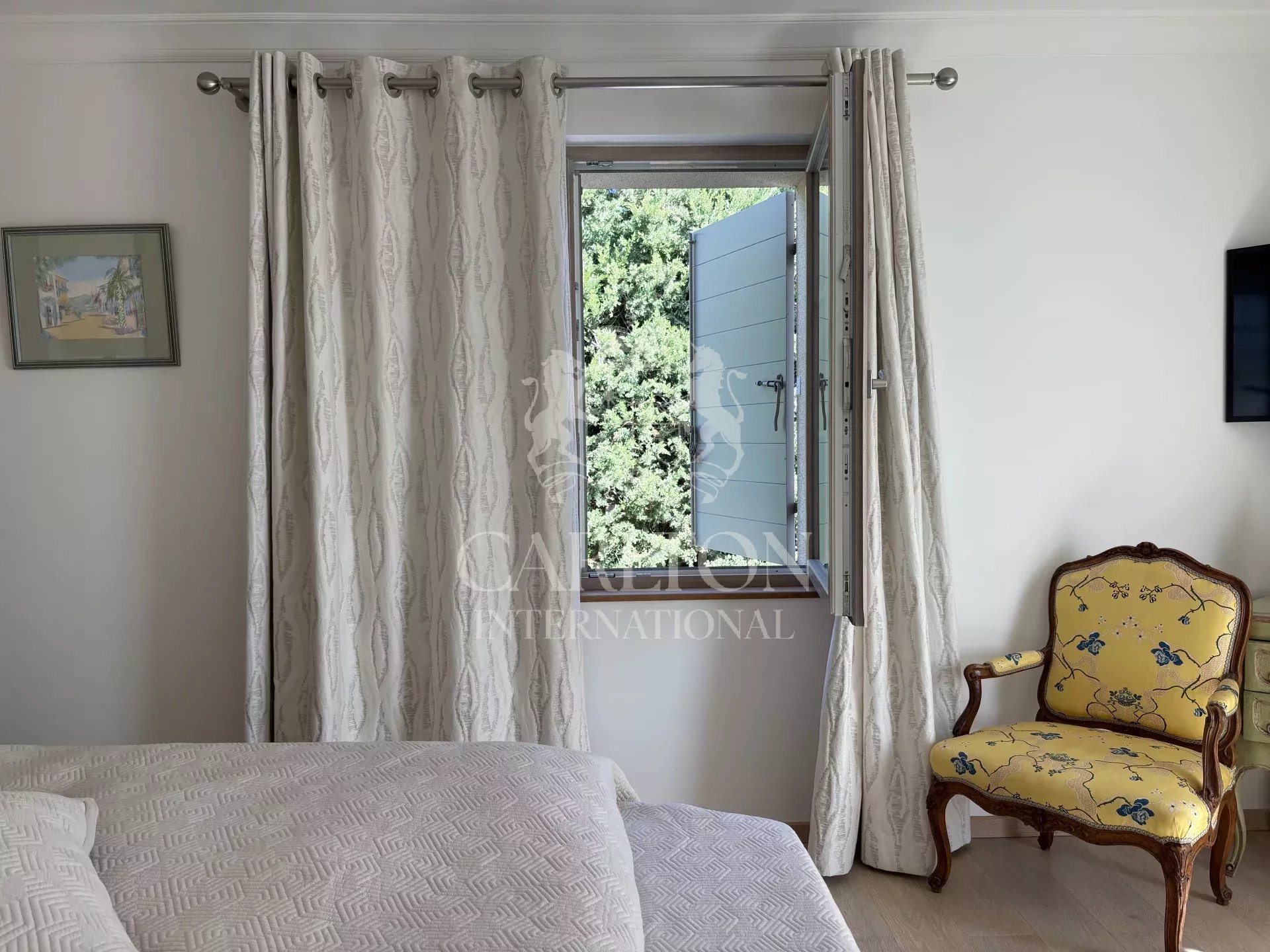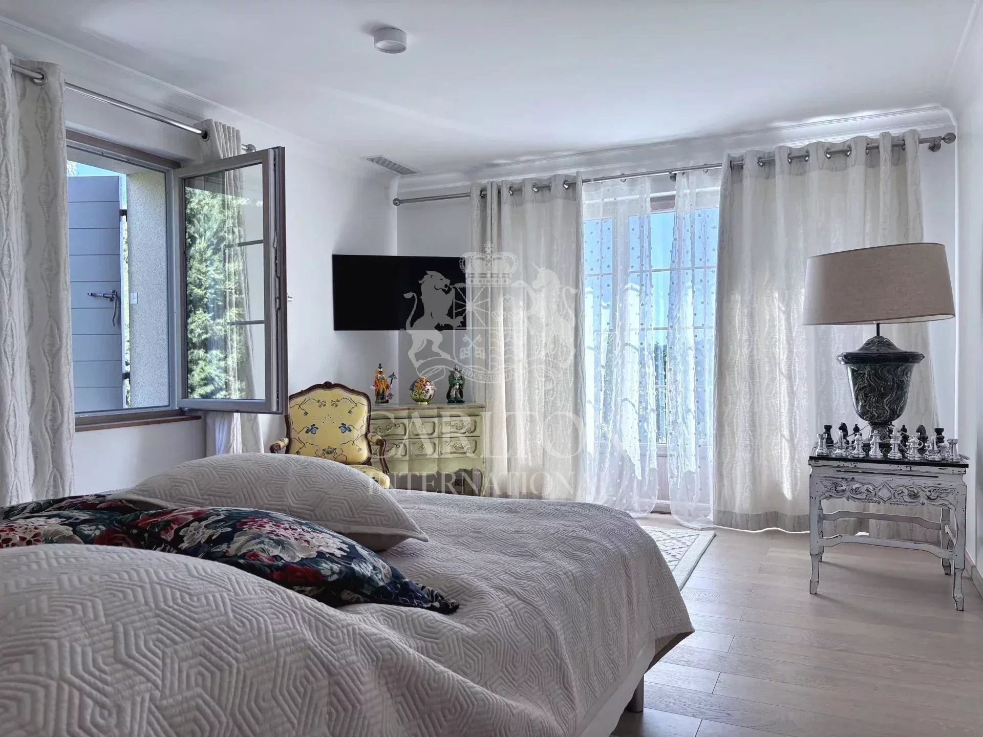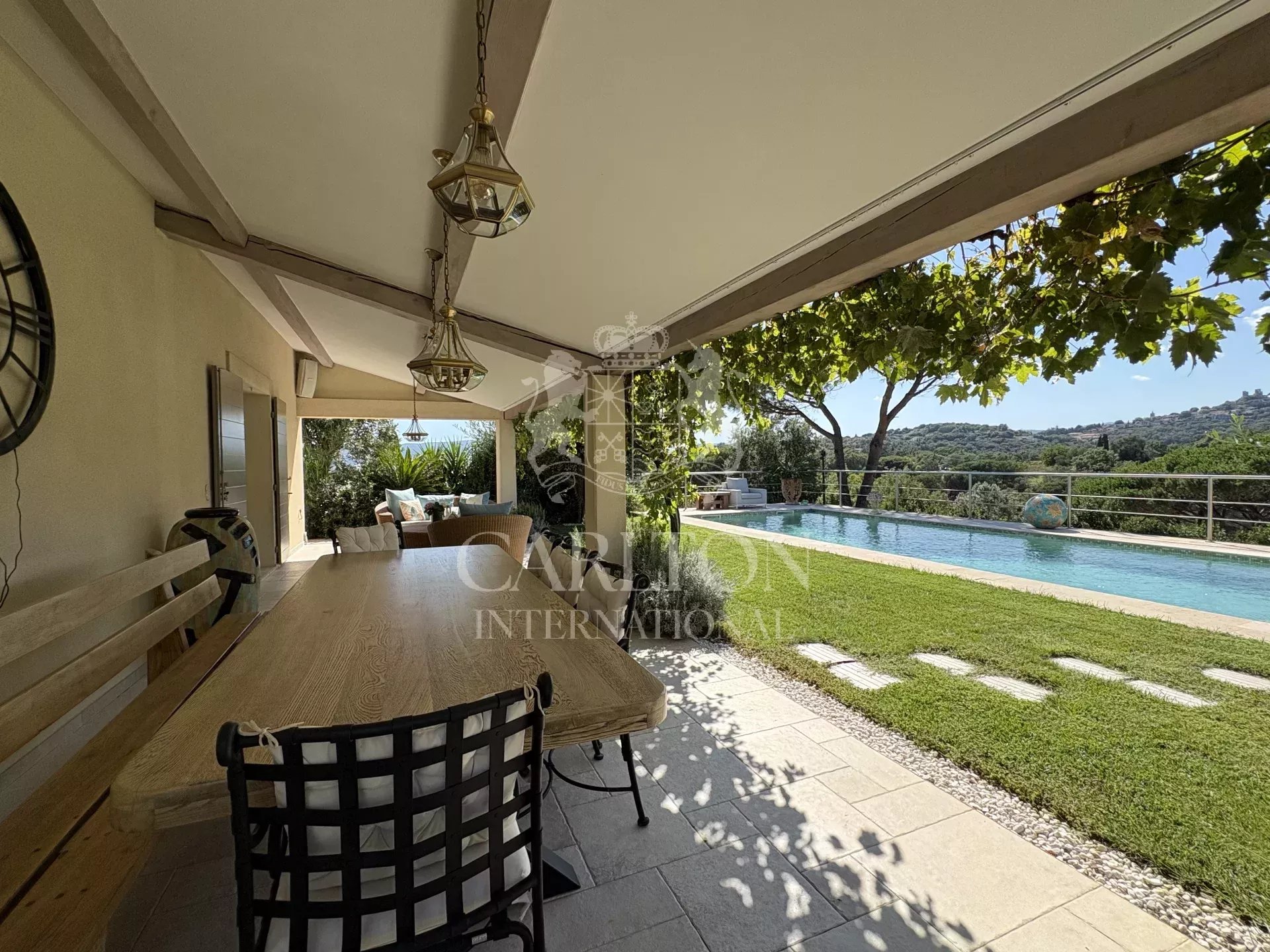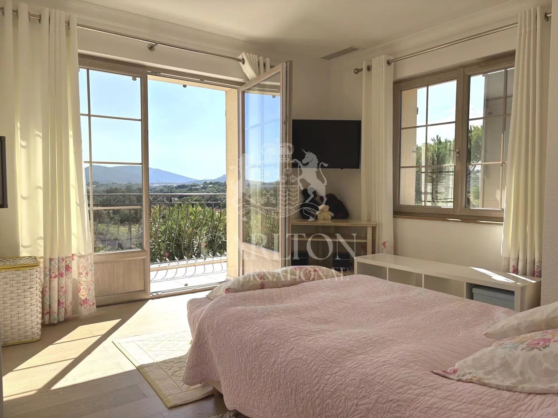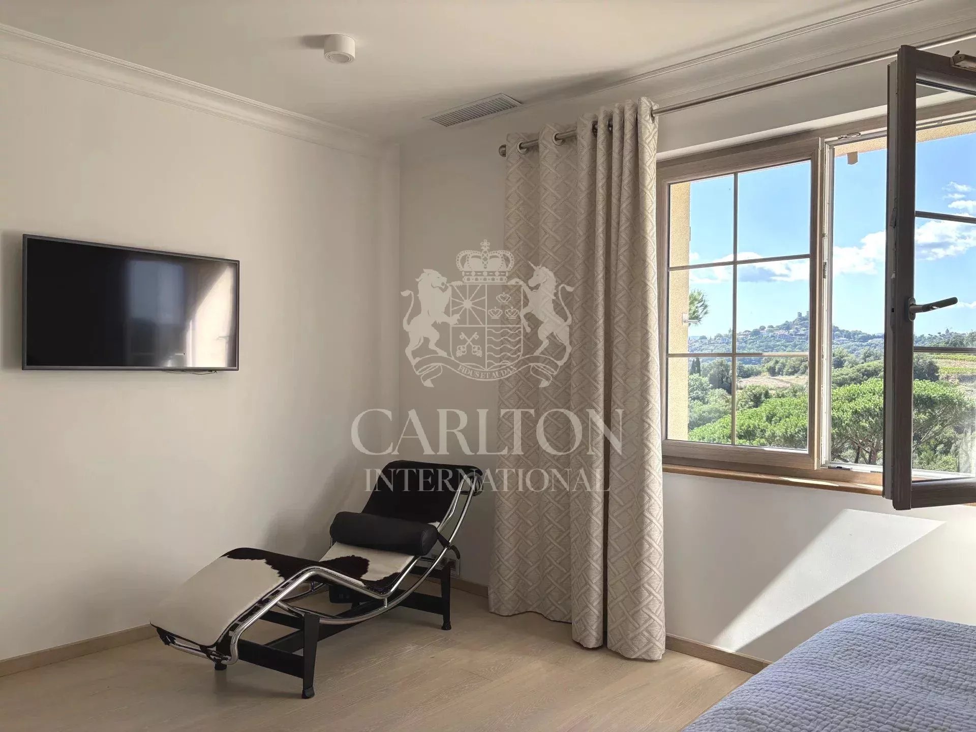 Dans un quartier résidentiel prisé de Grimaud, cette superbe villa néo-provençale près de 180 m² allie à la perfection le charme intemporel de la Méditerranée à un design moderne raffiné. Son portail automatique s’ouvre sur une allée pavée en pierre menant à un abri couvert et à un garage. Dès l’entrée, l’élégance de la propriété s’impose : le vaste séjour communique harmonieusement avec une cuisine américaine entièrement équipée. De larges baies vitrées baignent l’intérieur de lumière et s’ouvrent sur une vaste terrasse dominant la piscine, offrant une vue panoramique époustouflante sur le château emblématique de Grimaud. L’exposition ouest idéale de la villa permet de profiter chaque soir des sublimes couchers de soleil. À l’étage, l’espace nuit propose quatre chambres élégamment décorées et trois salles de bains, chacune pensée pour le confort et l’intimité. Pour accueillir vos invités, un charmant studio indépendant offre praticité et discrétion. Les prestations incluent également un grand garage avec buanderie et cave. Le jardin paysager abrite un agréable verger de fruitiers et des oliviers. Les vues sont remarquablement dégagées, embrassant la campagne et le village médiéval de Grimaud, dans un cadre serein et préservé. Malgré son atmosphère paisible, la propriété se situe à seulement dix minutes des plages de sable et de l’effervescence de Saint-Tropez. Rénovée en 2014, la villa se présente en excellent état, à l’intérieur comme à l’extérieur, et associe une construction semi-traditionnelle provençale aux meilleurs conforts contemporains : climatisation intégrée, double vitrage, arrosage automatique, façade soigneusement enduite et toiture en tuiles classiques. Cette opportunité offre non seulement une demeure d’une qualité exceptionnelle, mais aussi un art de vivre unique au cœur du Golfe de Saint-Tropez.